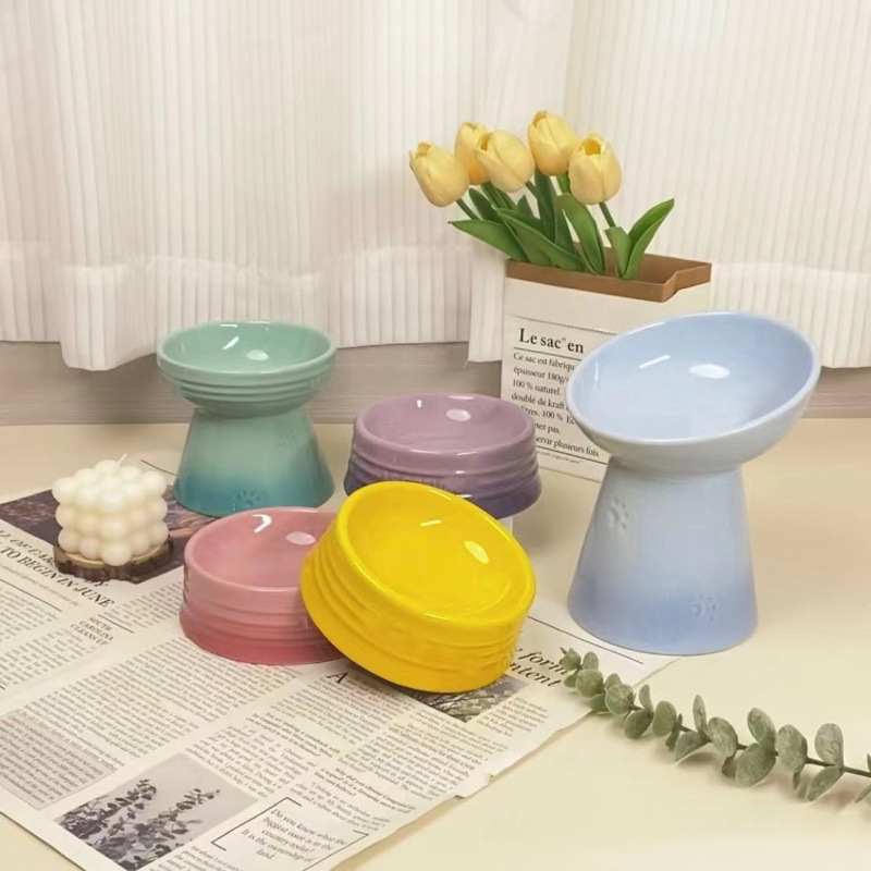 프랑스 세라믹 애완 동물 그릇 짧은 그릇 개 키 큰 그릇 사발 평평한 그릇 목 보호 고양이 대용량 물 그릇