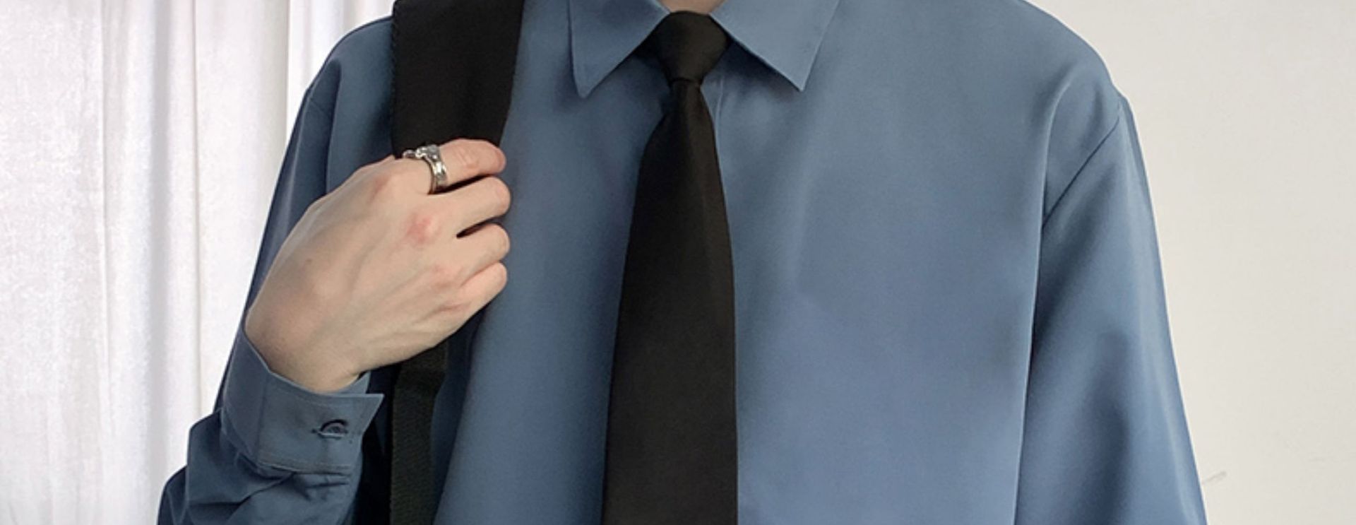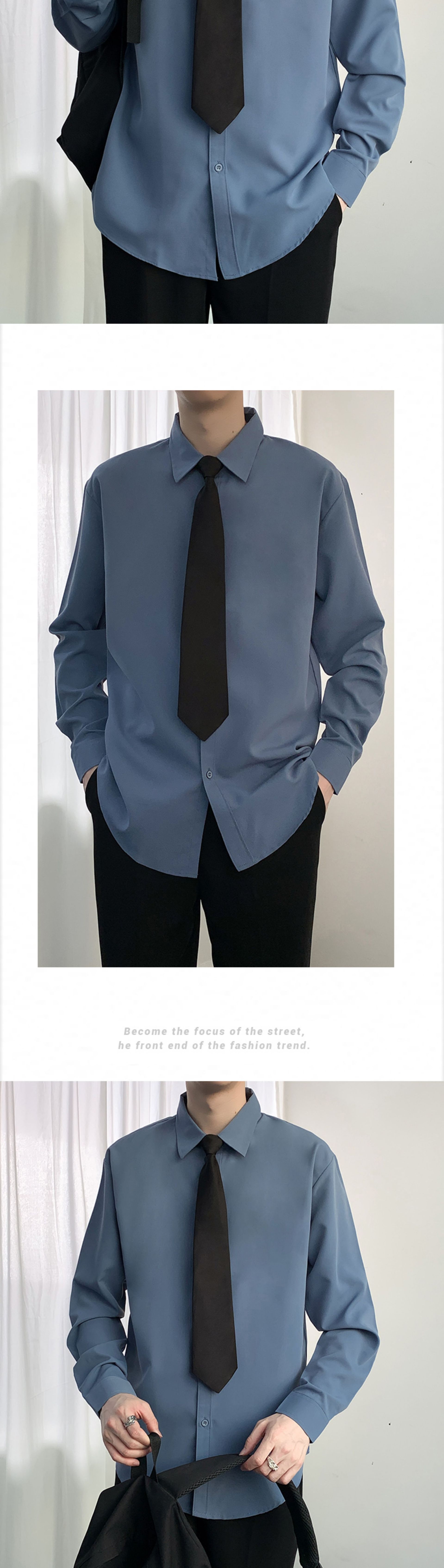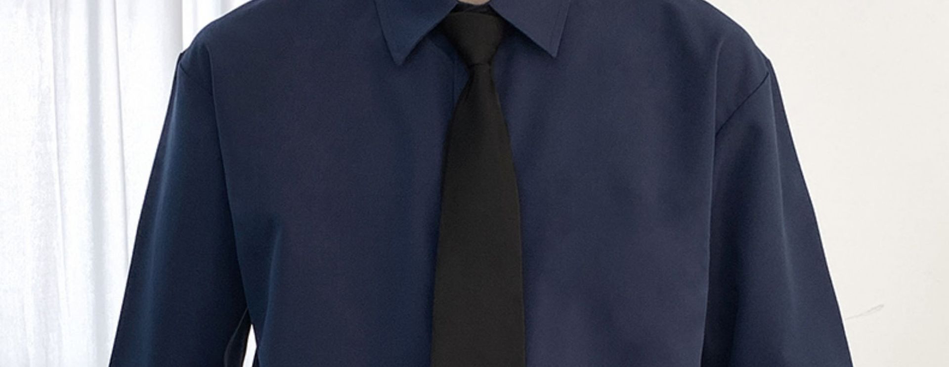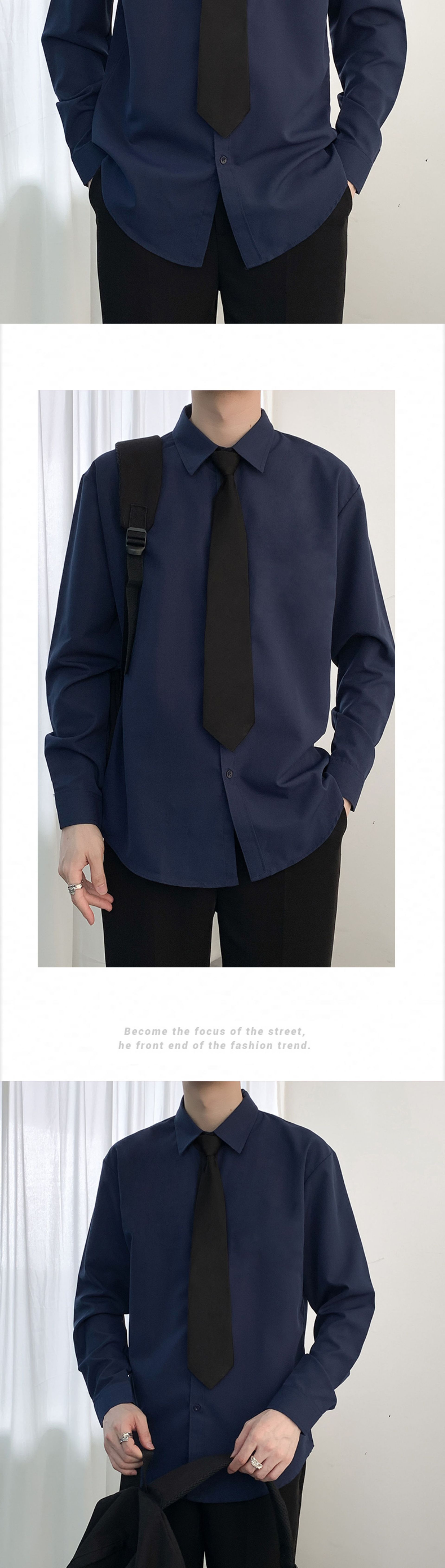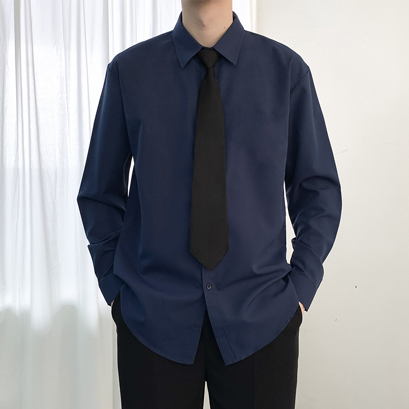 • 긴 소매 셔츠#네이비 블루 [프리 타이]