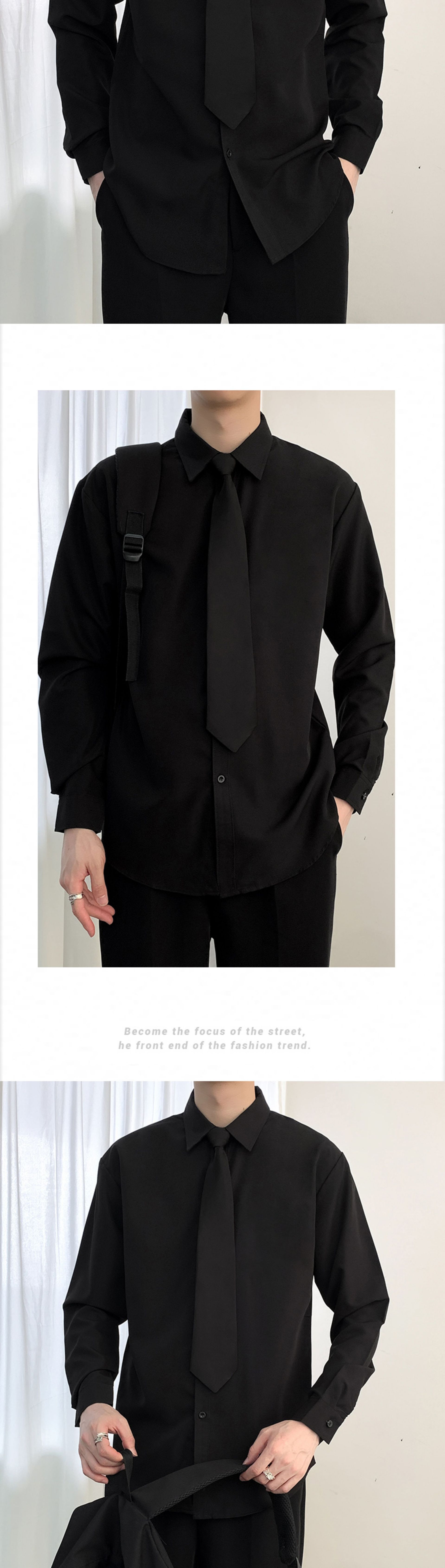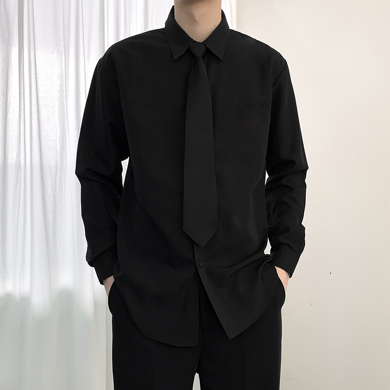 • 긴 소매 셔츠#블랙 [프리 타이]