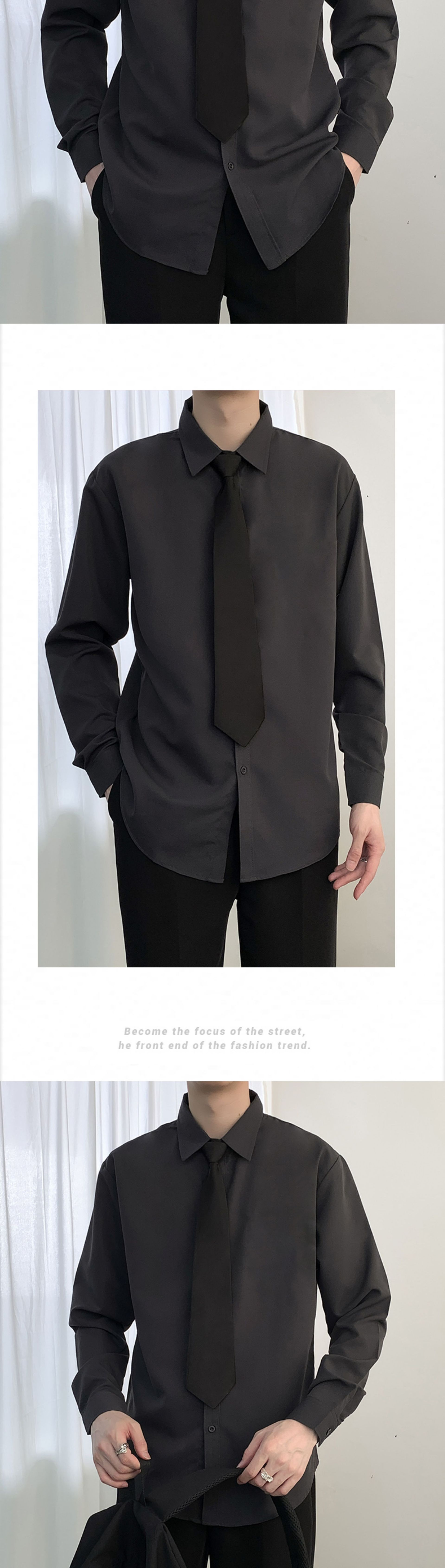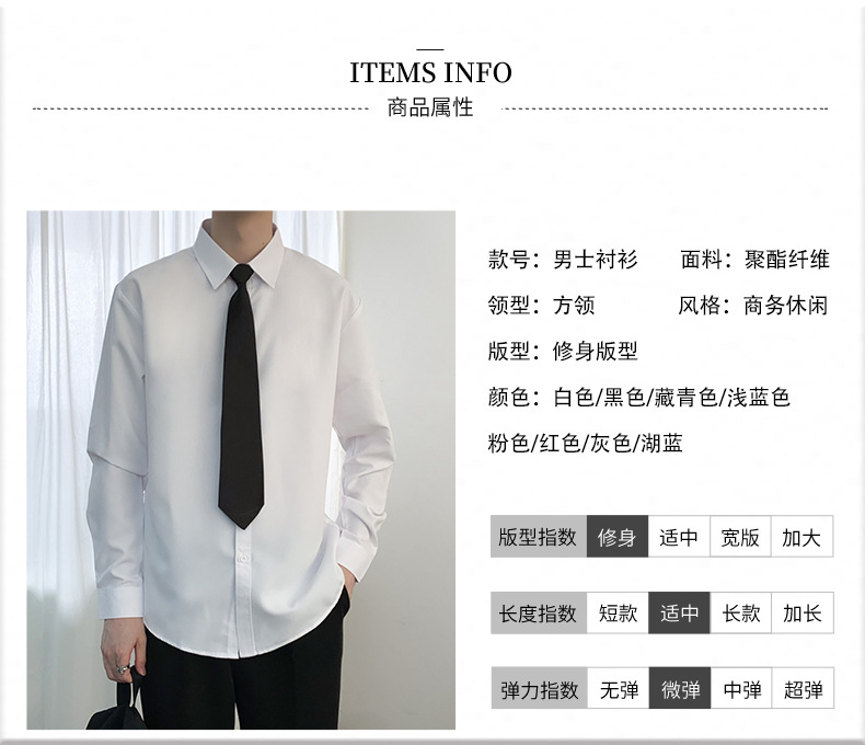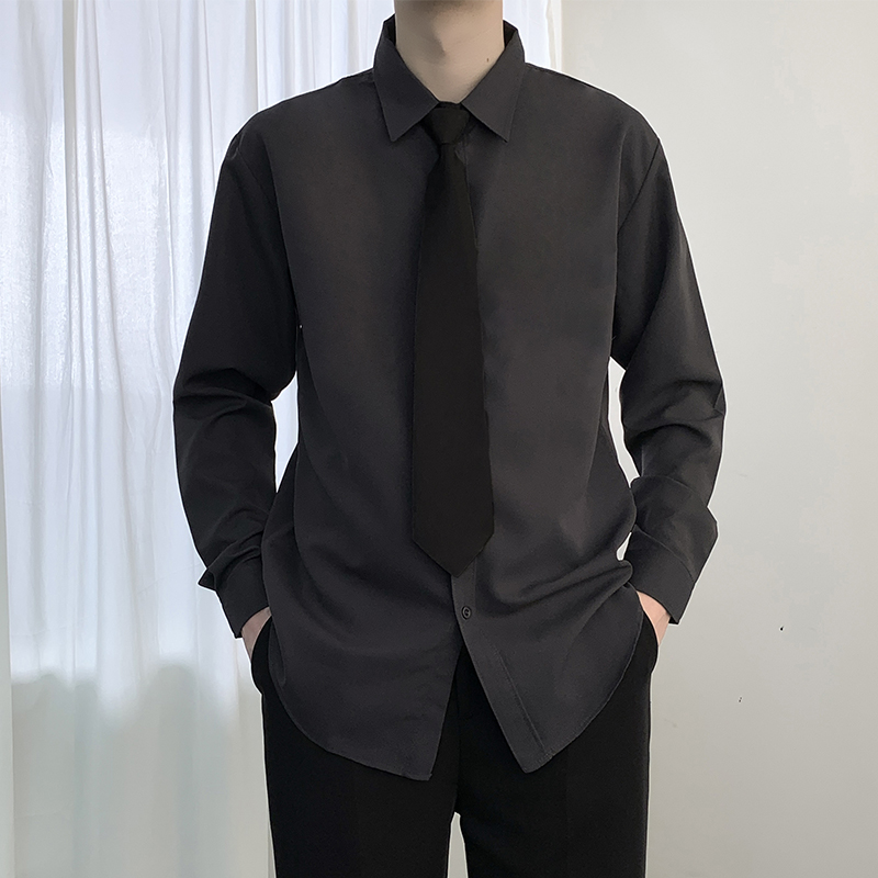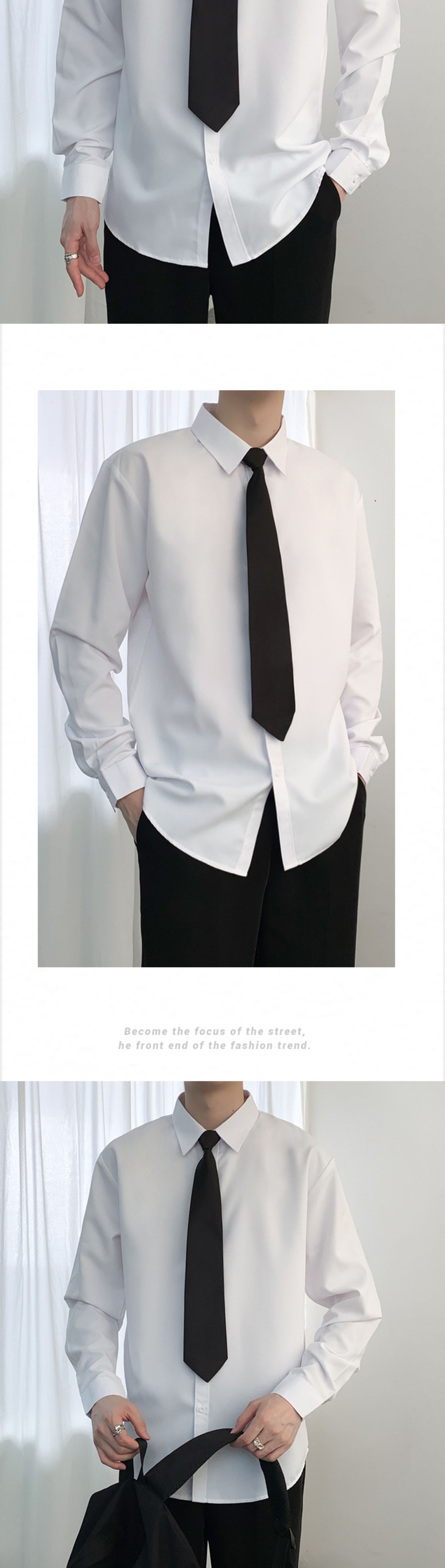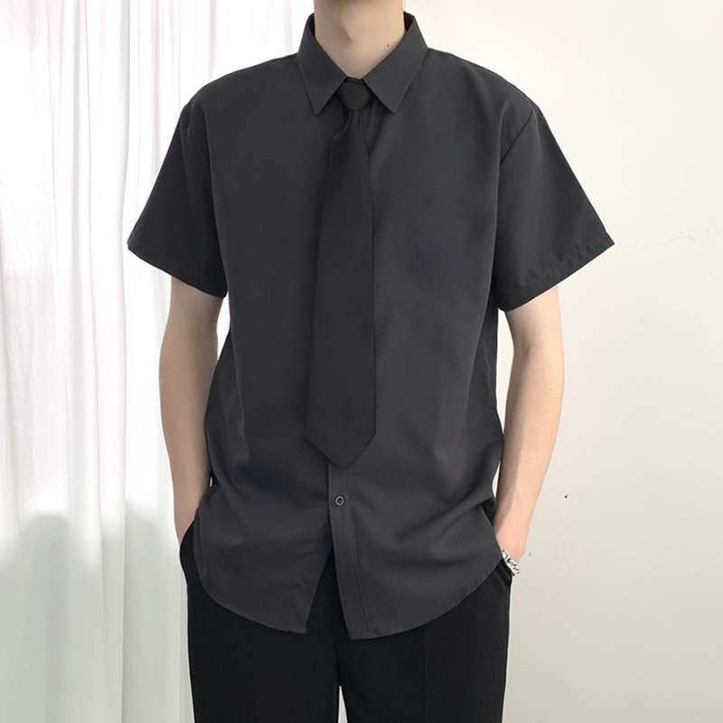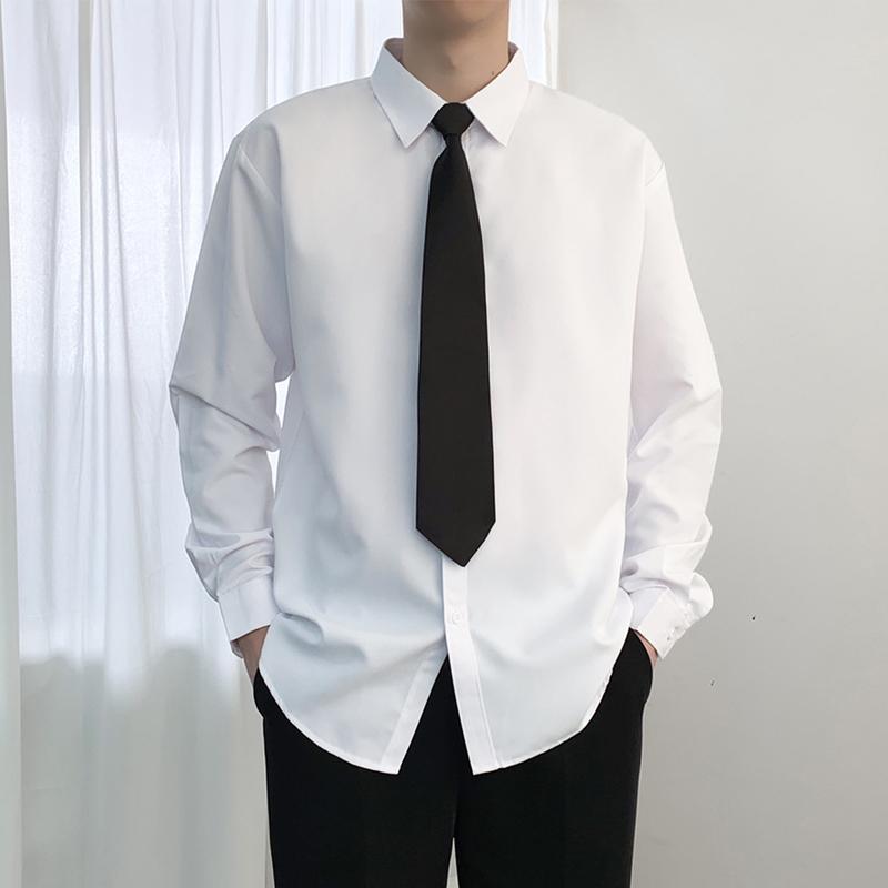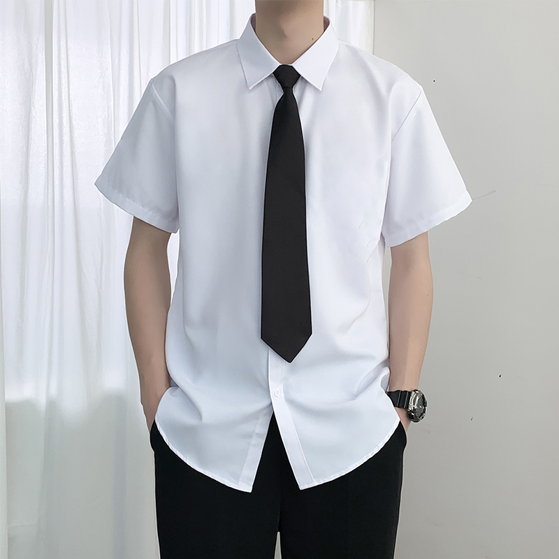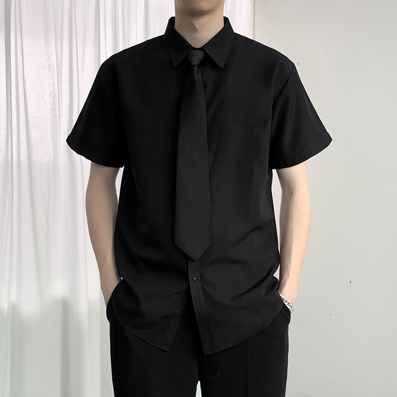 [넥타이 보내기] 셔츠 남성 긴팔 봄 사업 캐주얼 비 다림질 주름 방지 흑백 셔츠 반소매 툴링