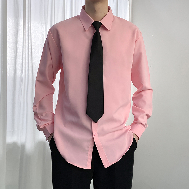 • 긴 소매 셔츠#핑크 [프리 타이]