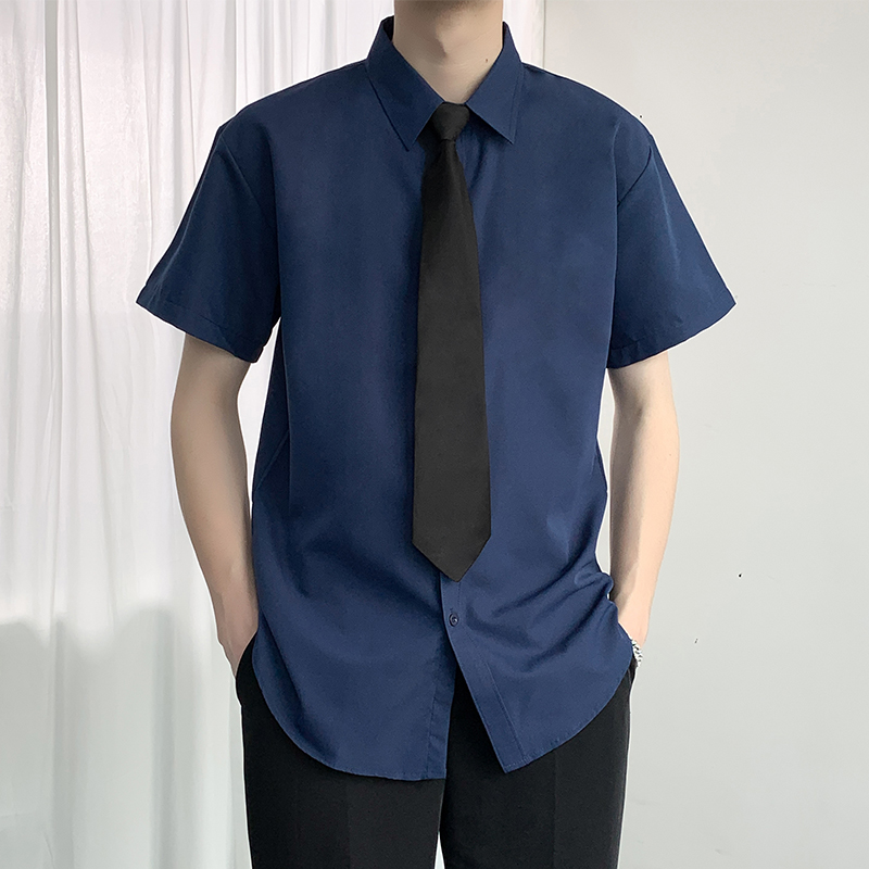 • 반소매 셔츠#네이비 블루 [프리 타이]