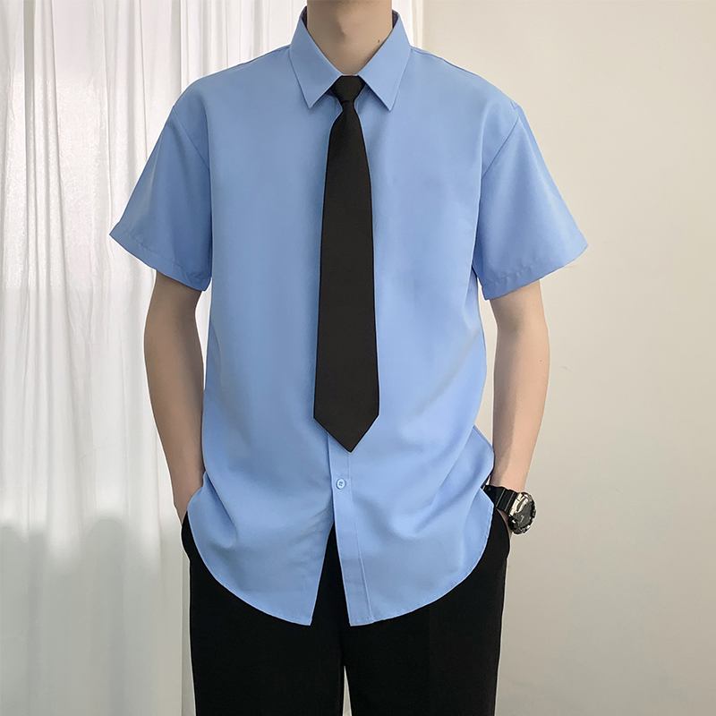 • 반소매 셔츠 # 하늘색 [프리넥타이]