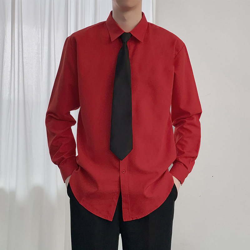 • 긴 소매 셔츠#부르고뉴 [프리 타이]