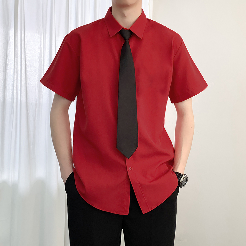 • 반소매 셔츠#부르고뉴 [프리 타이]