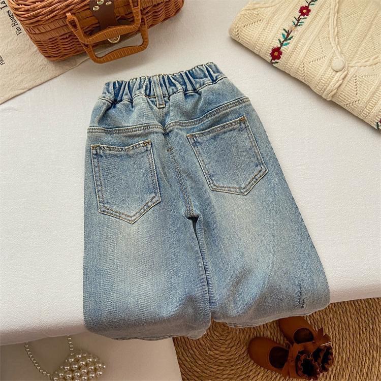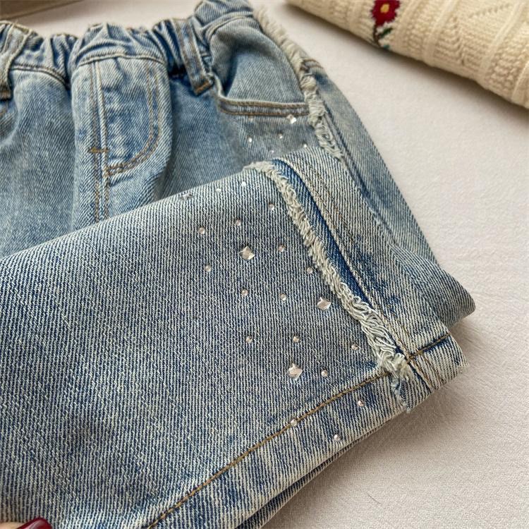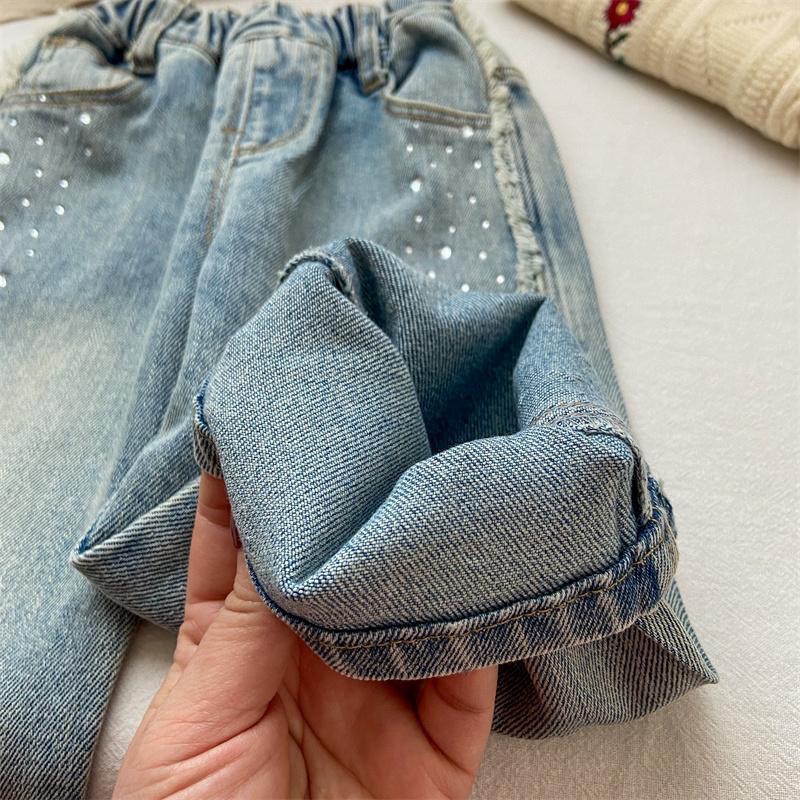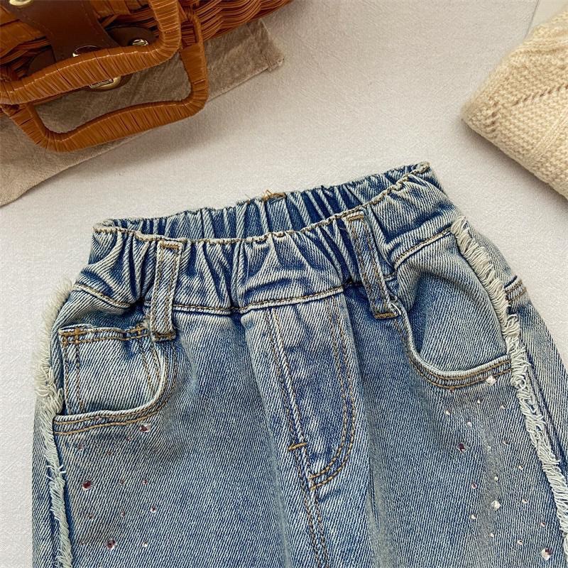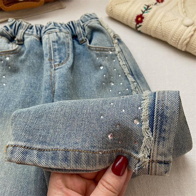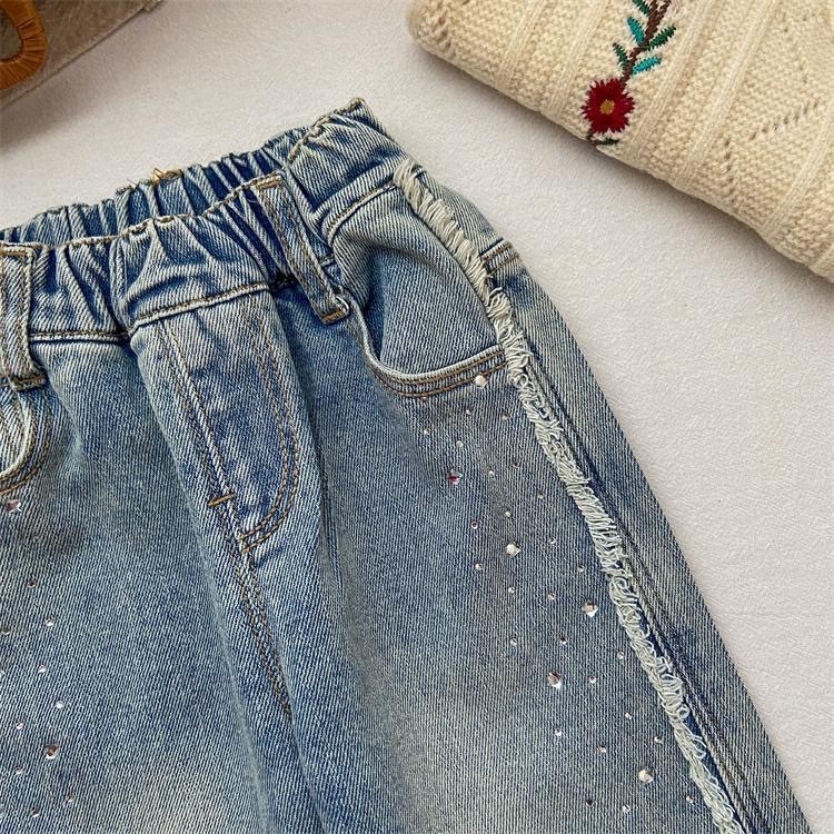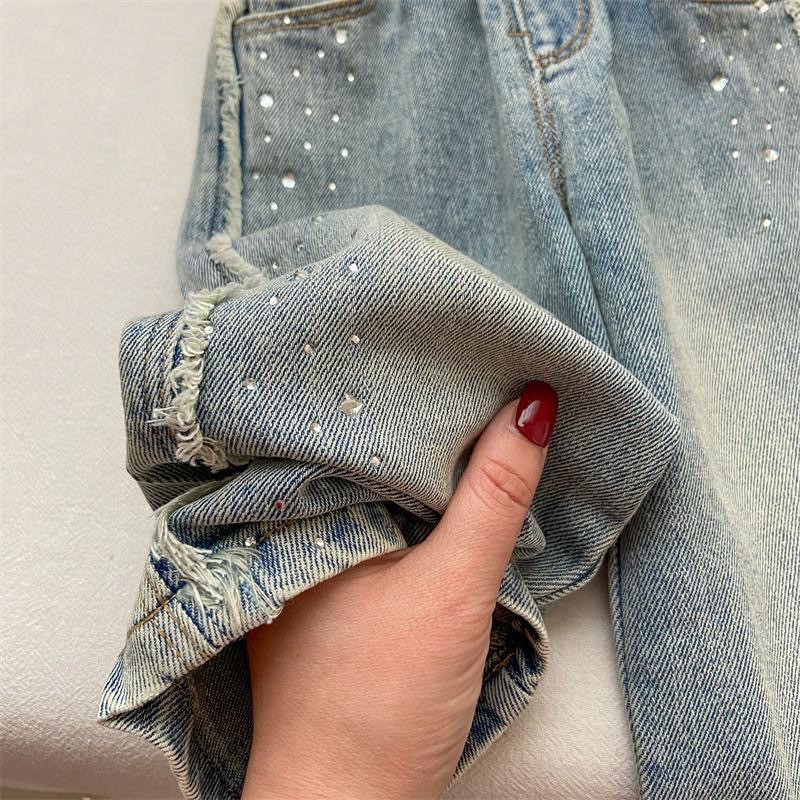 소녀 청바지 봄 세련된 새 스타일 뜨거운 드릴링 밝은 빛나는 긴 바지 유행 스트레이트 바지 한국 스타일스토어 가기
