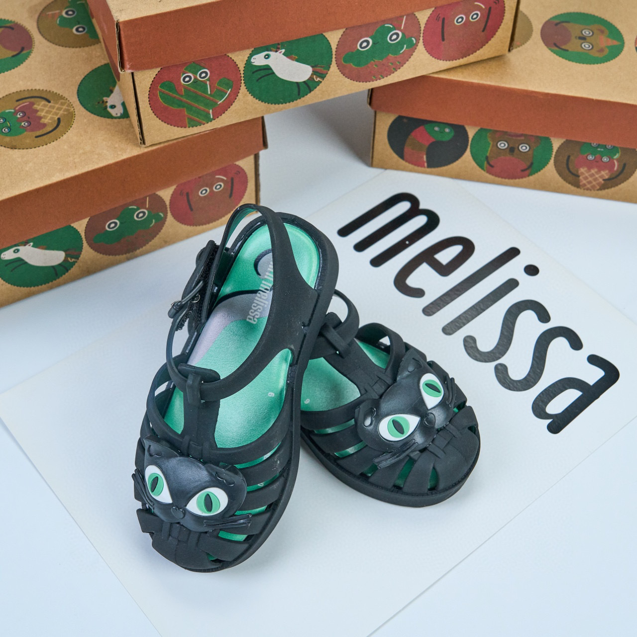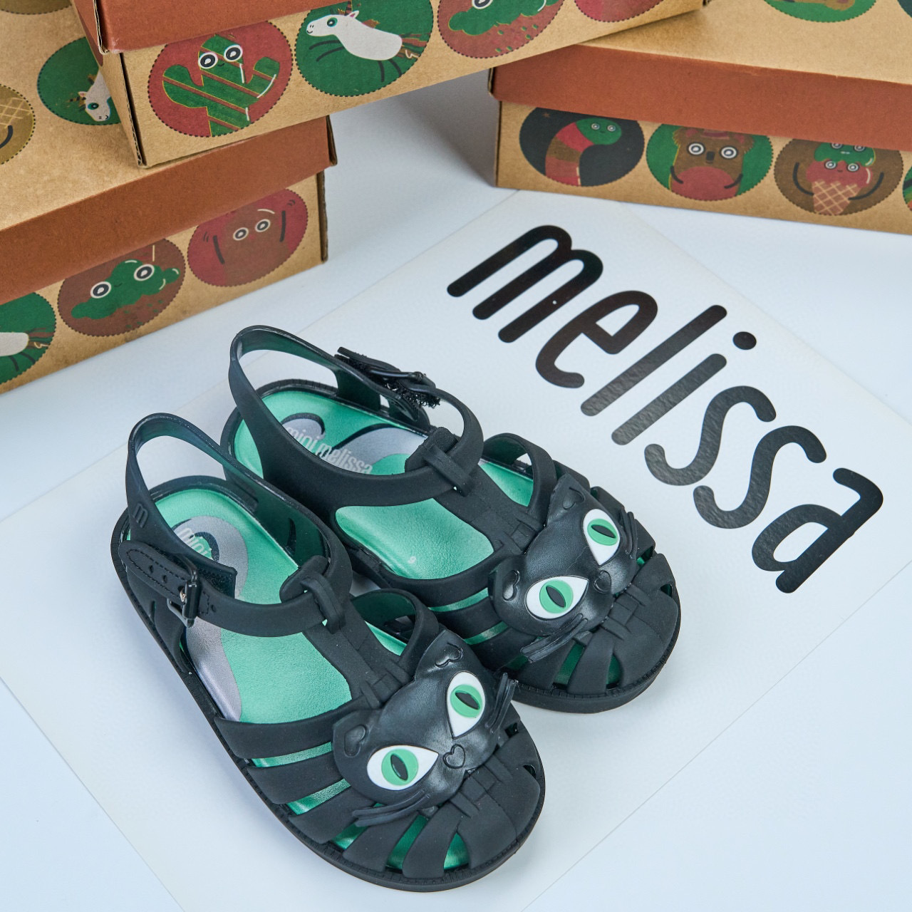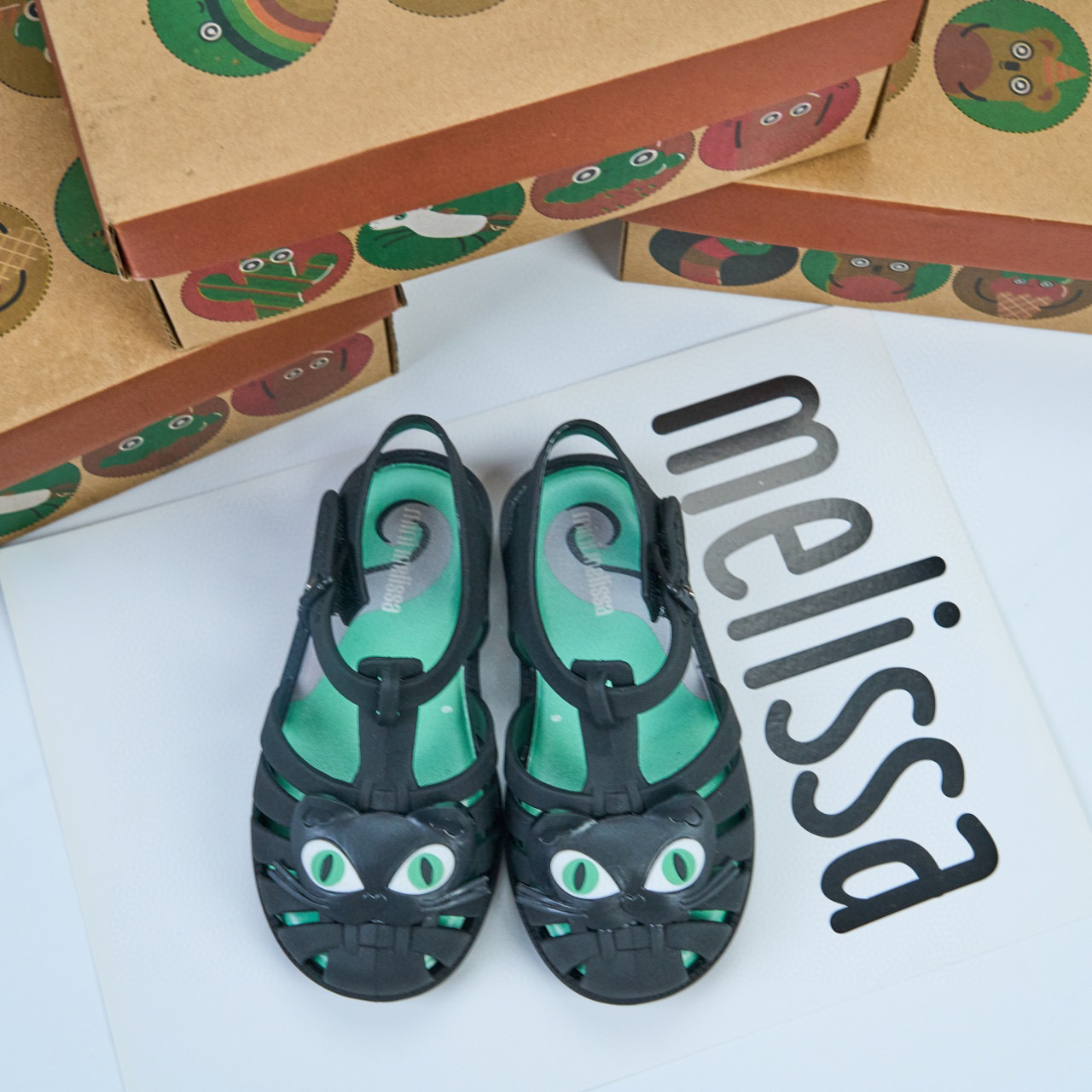 2025 새로운 Mei*Sameli*sa 어린이 신발 젤리 신발 Baotou 중공 만화 샌들 비치 신발 새끼 고양이 머리