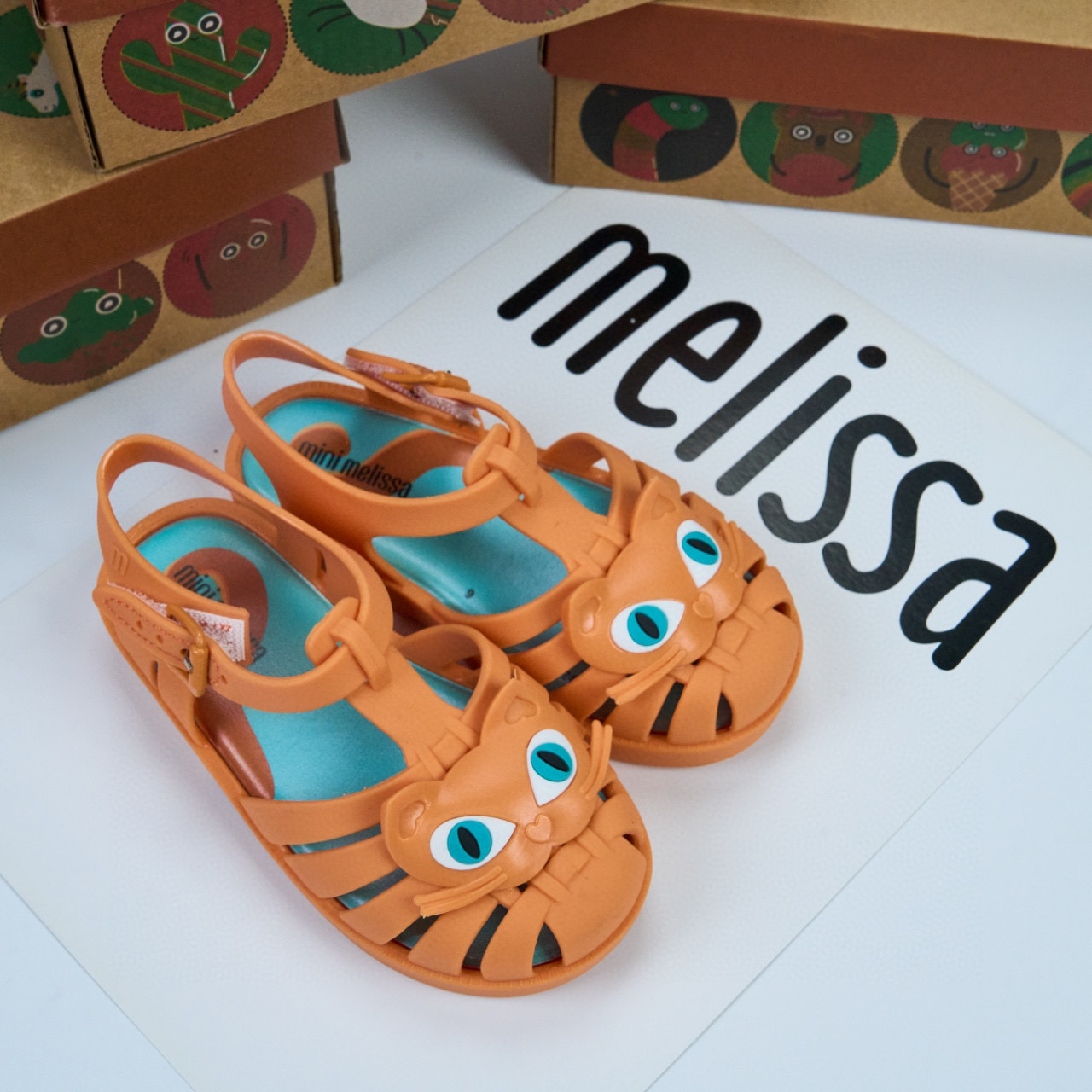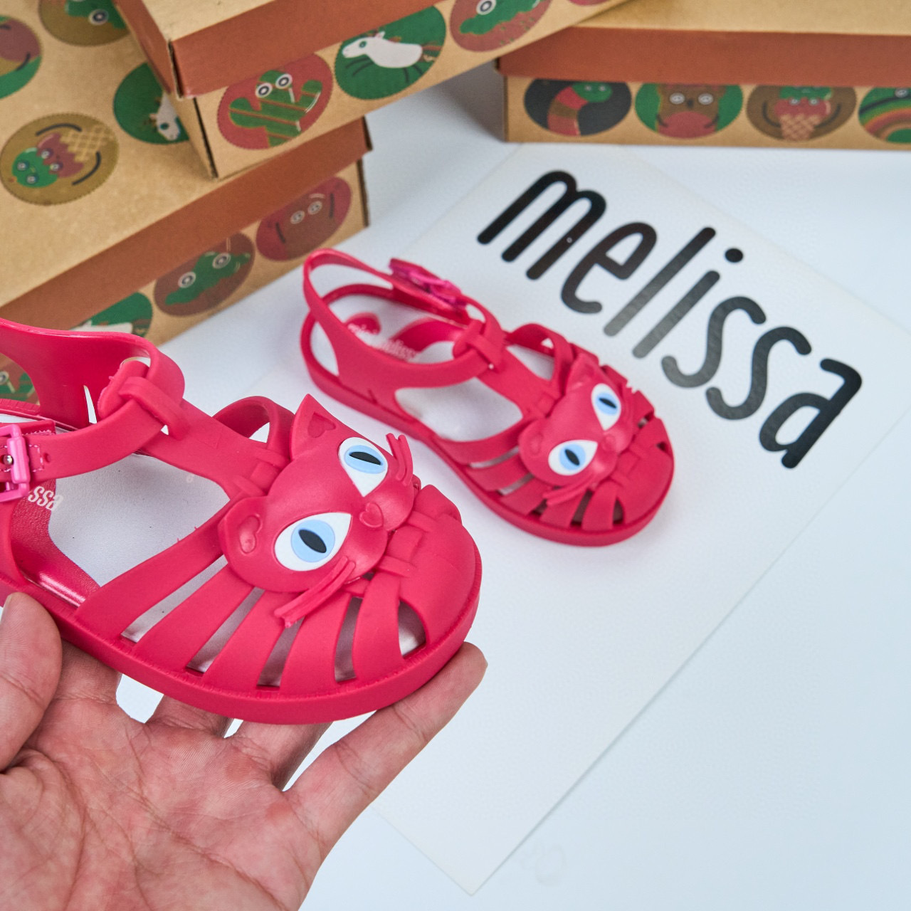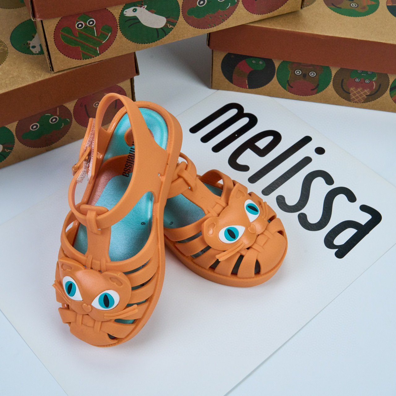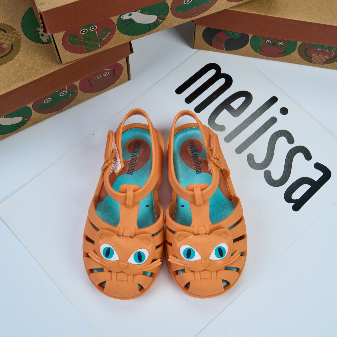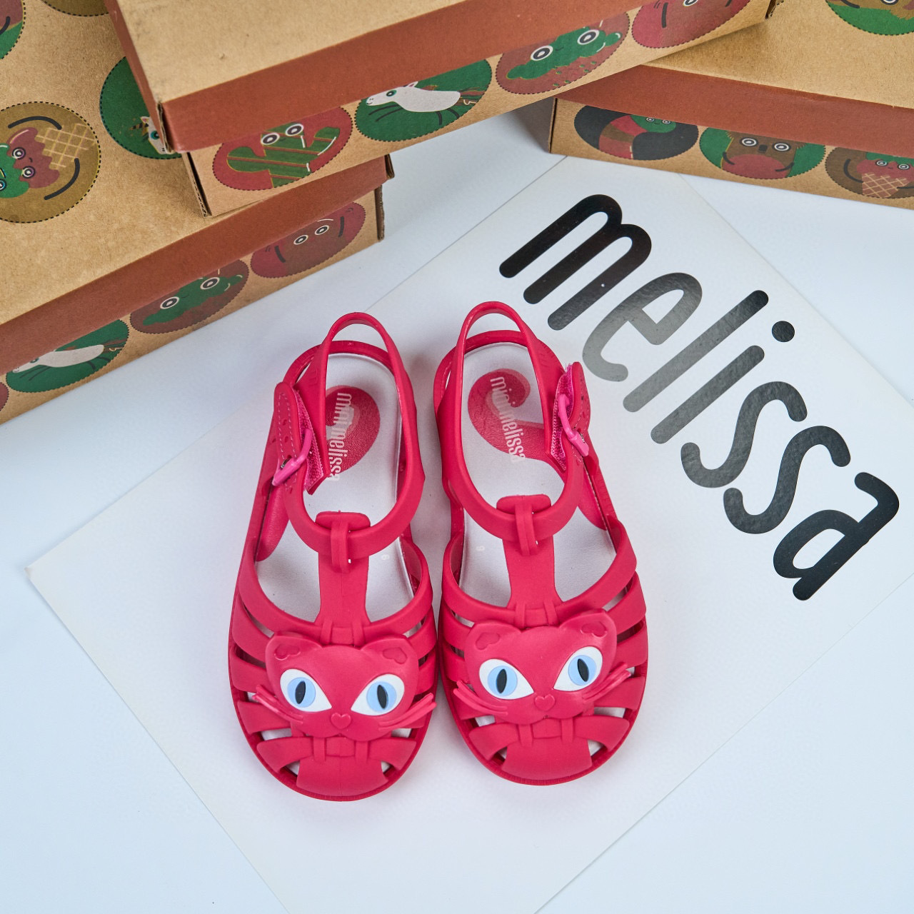 2025 새로운 Mei*Sameli*sa 어린이 신발 젤리 신발 Baotou 중공 만화 샌들 비치 신발 새끼 고양이 머리스토어 가기