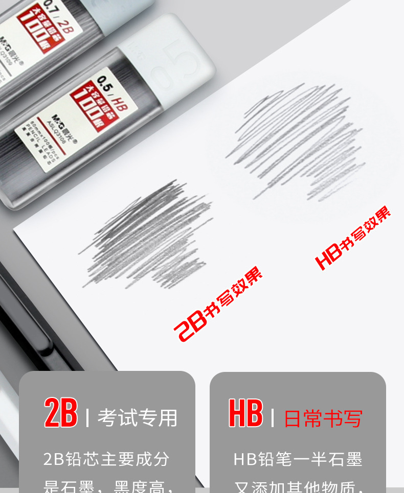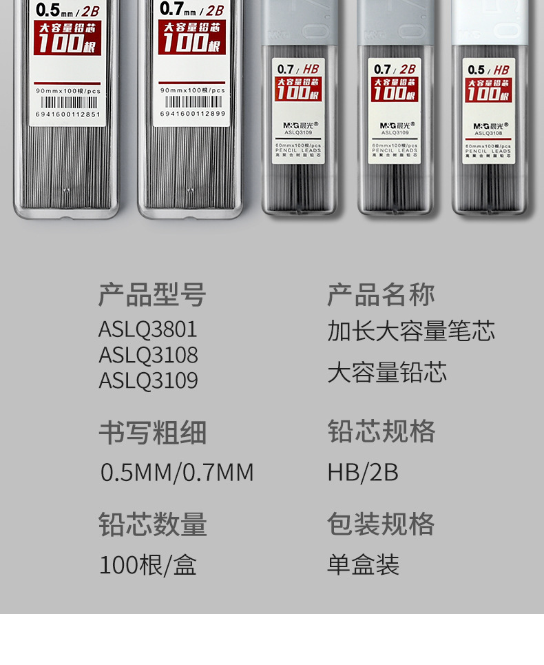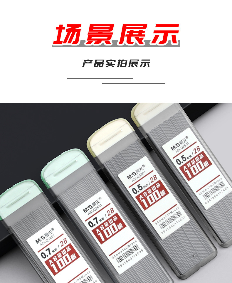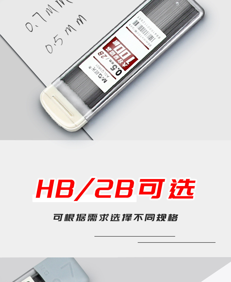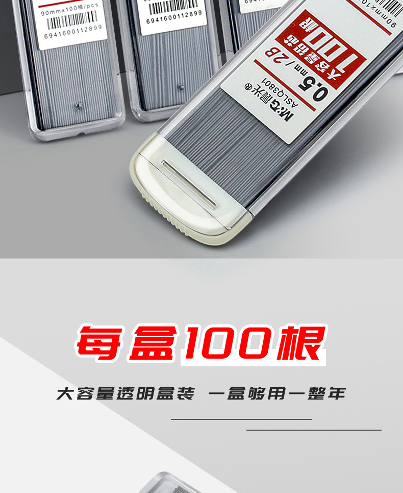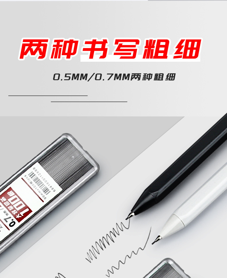 아침 빛 대용량 0.5/0.7mm 학생 자동 연필 심 100 개 이동식 펜 심 Q3108스토어 가기