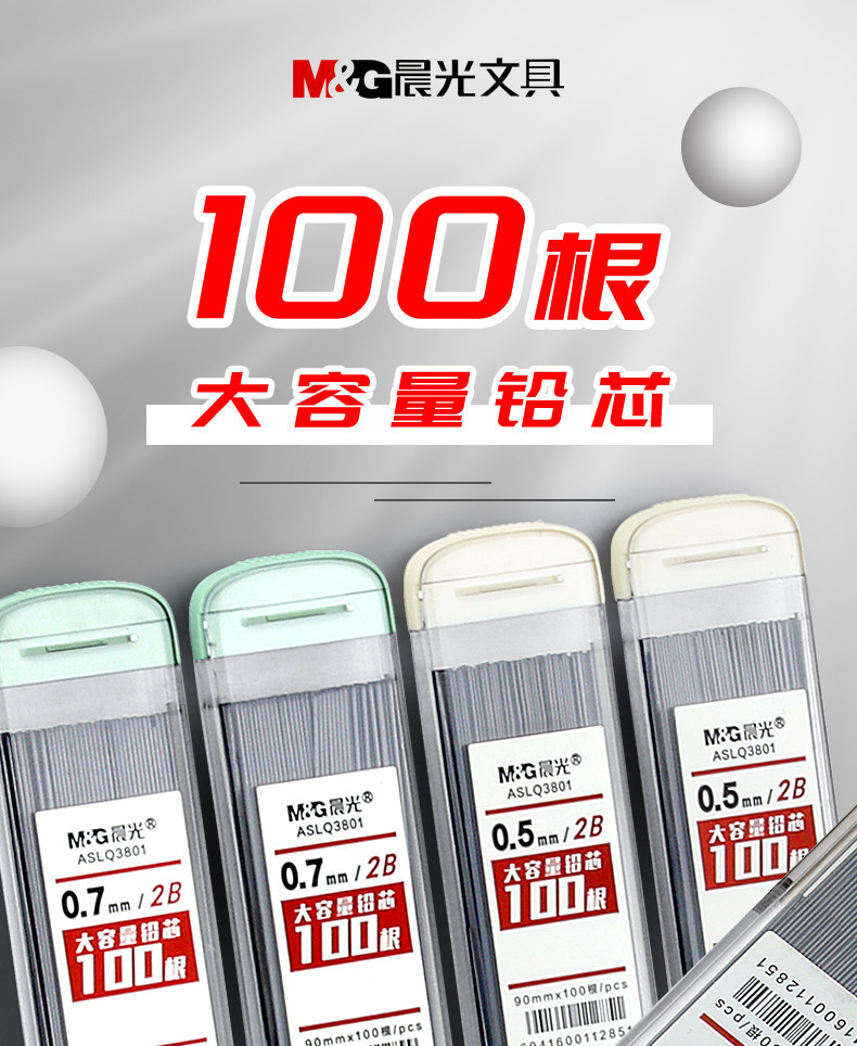 아침 빛 대용량 0.5/0.7mm 학생 자동 연필 심 100 개 이동식 펜 심 Q3108
