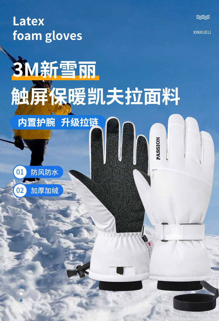 케블라 스키 장갑 남녀 터치 스크린 겨울 방수 따뜻한 전문 야외 등산 싱글 및 더블 보드 내장 손목 가드