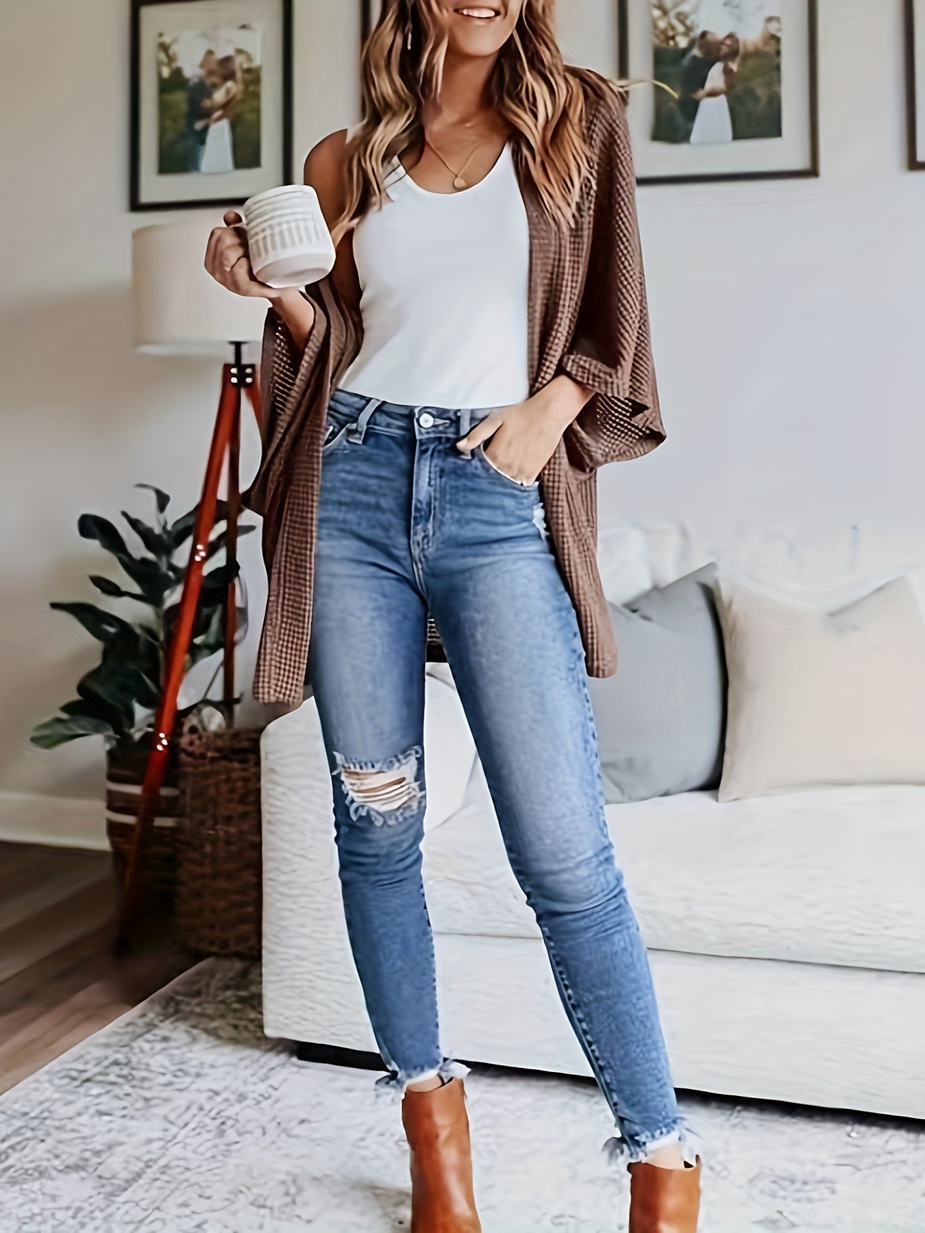 2024 아마존 독립 역 유럽과 미국의 가을 및 겨울 폭발 느슨한 카디건 세븐 슬리브 스웨터 니트 스웨터 톱 여성용 의류스토어 가기