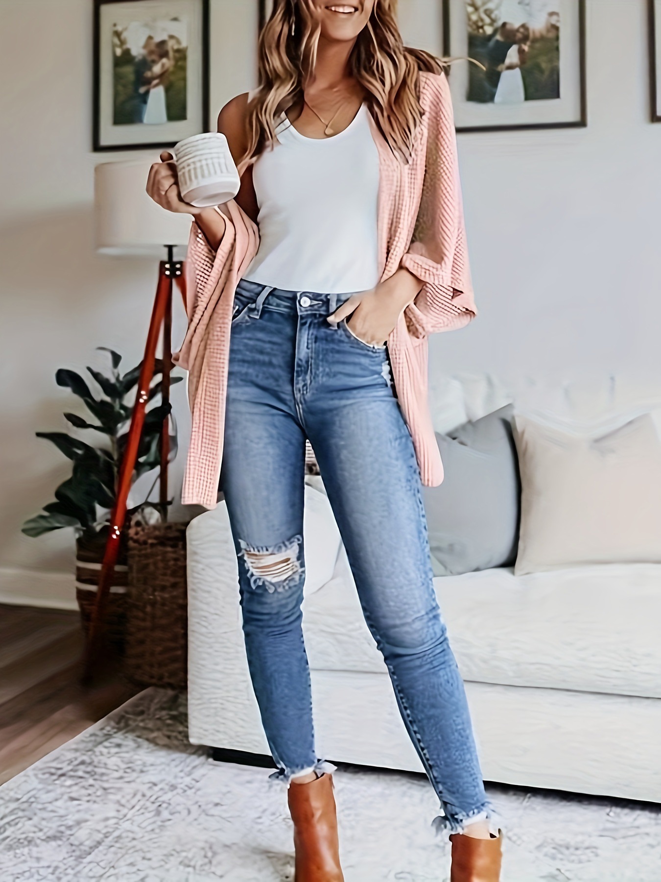 2024 아마존 독립 역 유럽과 미국의 가을 및 겨울 폭발 느슨한 카디건 세븐 슬리브 스웨터 니트 스웨터 톱 여성용 의류