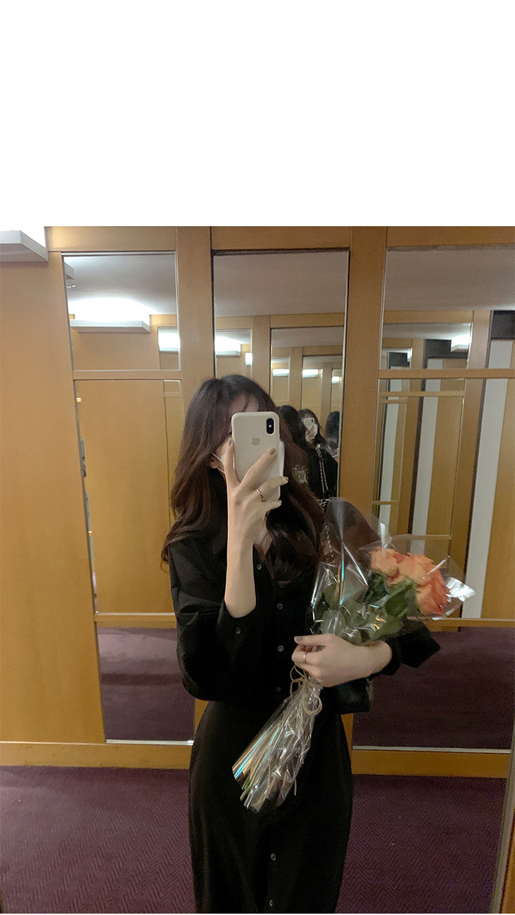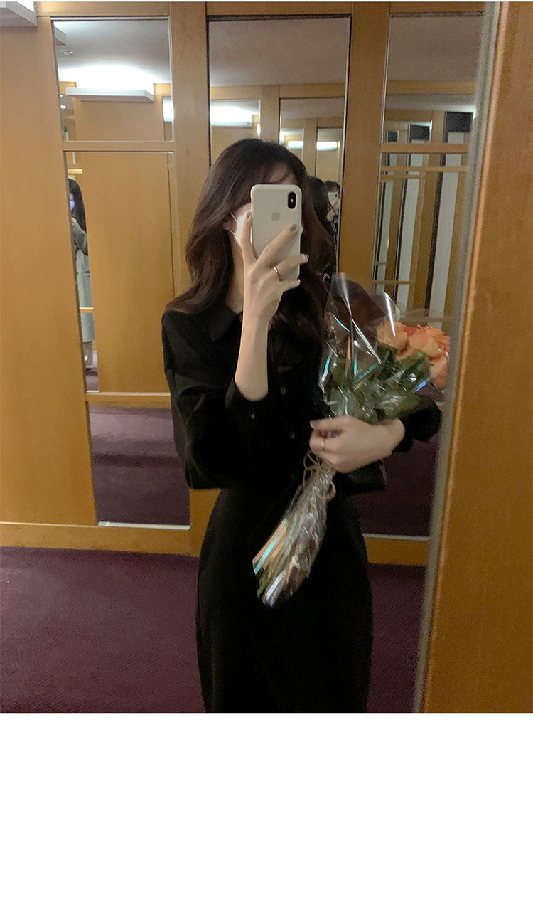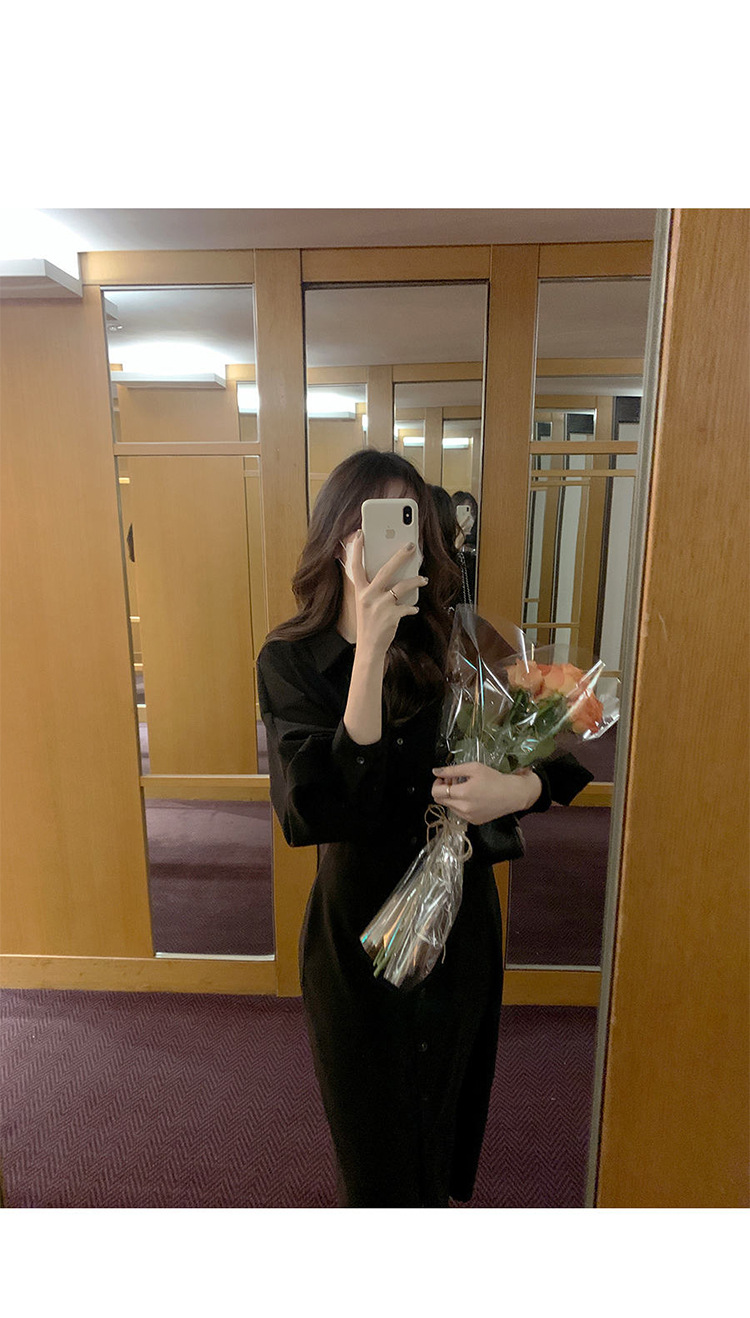 2023 봄과 가을 새로운 프랑스 스타일 레트로 원피스 우아한 작은 검은 원피스 헵번 스타일 긴 원피스 타이트 허리 슬리밍 셔츠 원피스스토어 가기