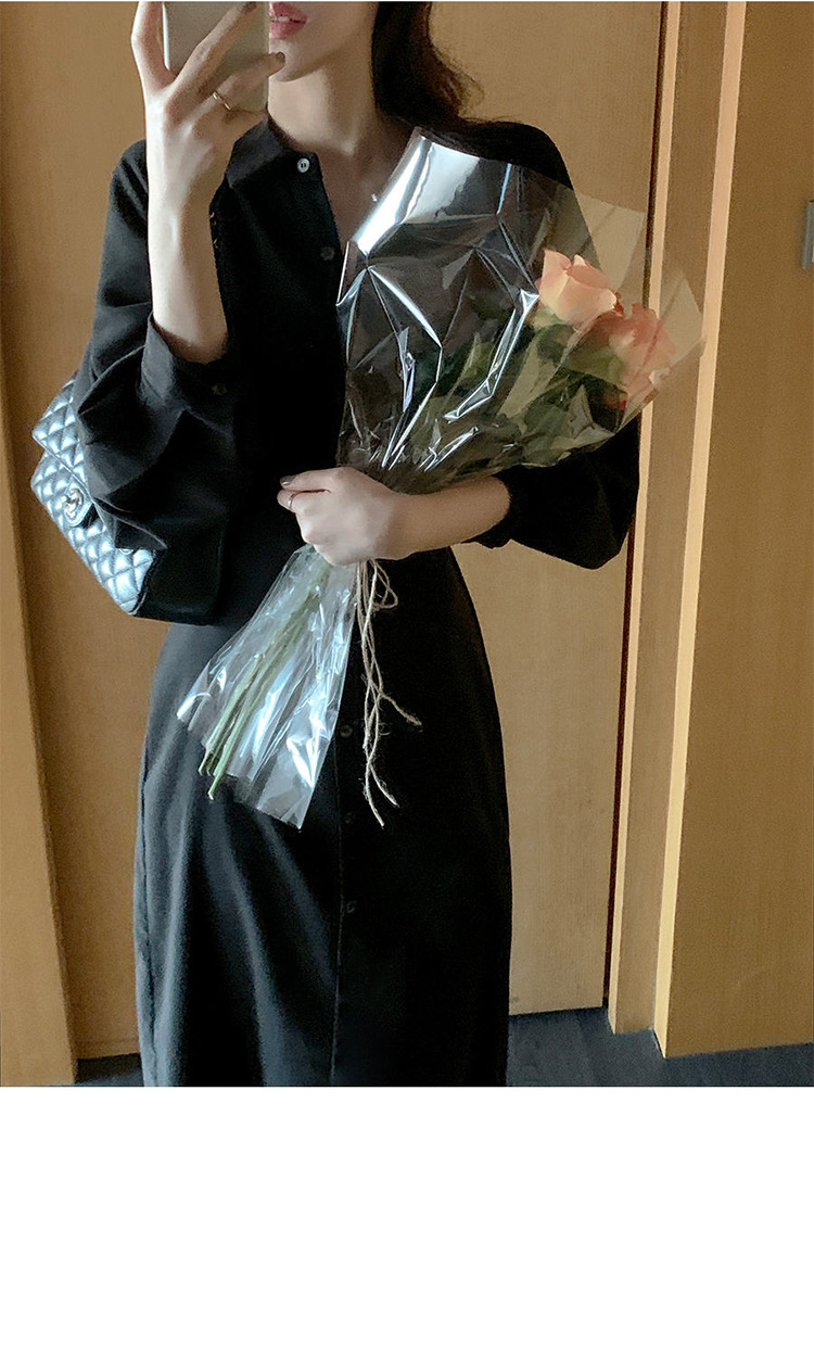 2023 봄과 가을 새로운 프랑스 스타일 레트로 원피스 우아한 작은 검은 원피스 헵번 스타일 긴 원피스 타이트 허리 슬리밍 셔츠 원피스