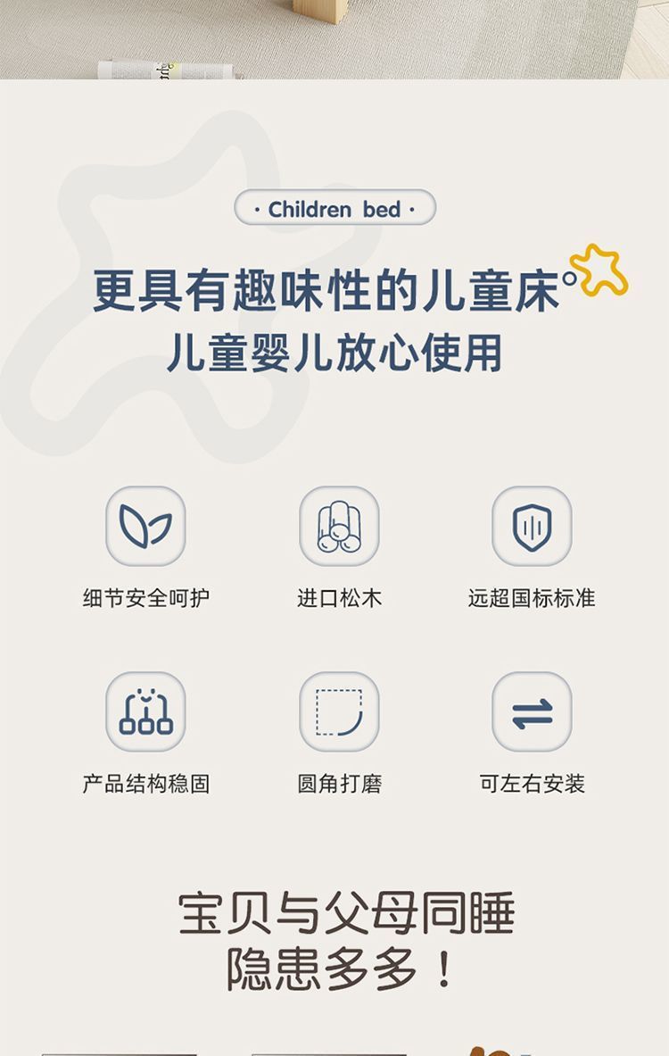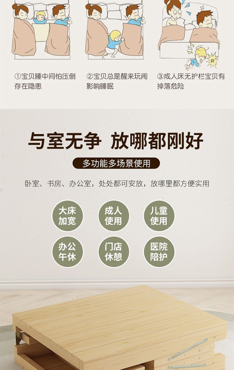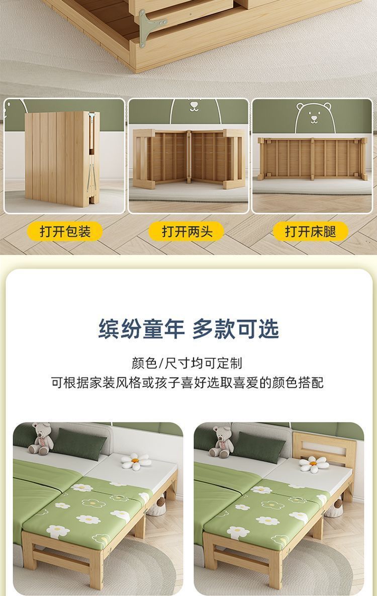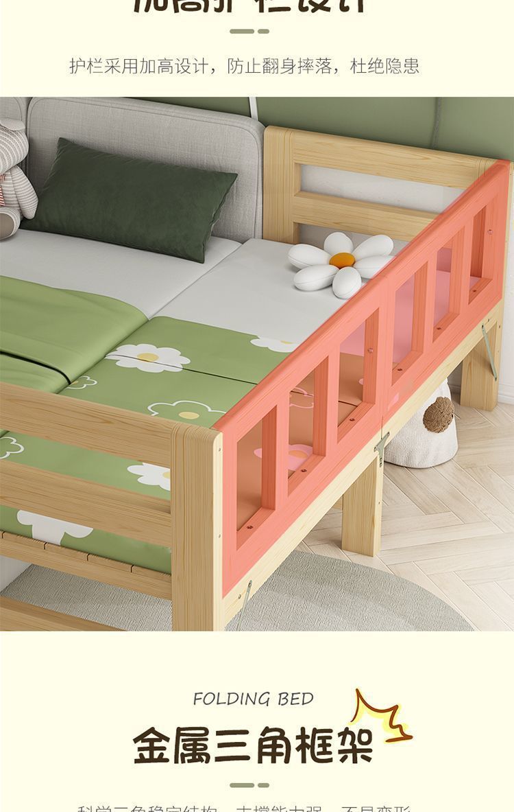 솔리드 우드 유아 접합 침대 접이식 침대 설치-소년 소녀를위한 가드 레일이있는 어린이 침대 큰 침대 침대스토어 가기