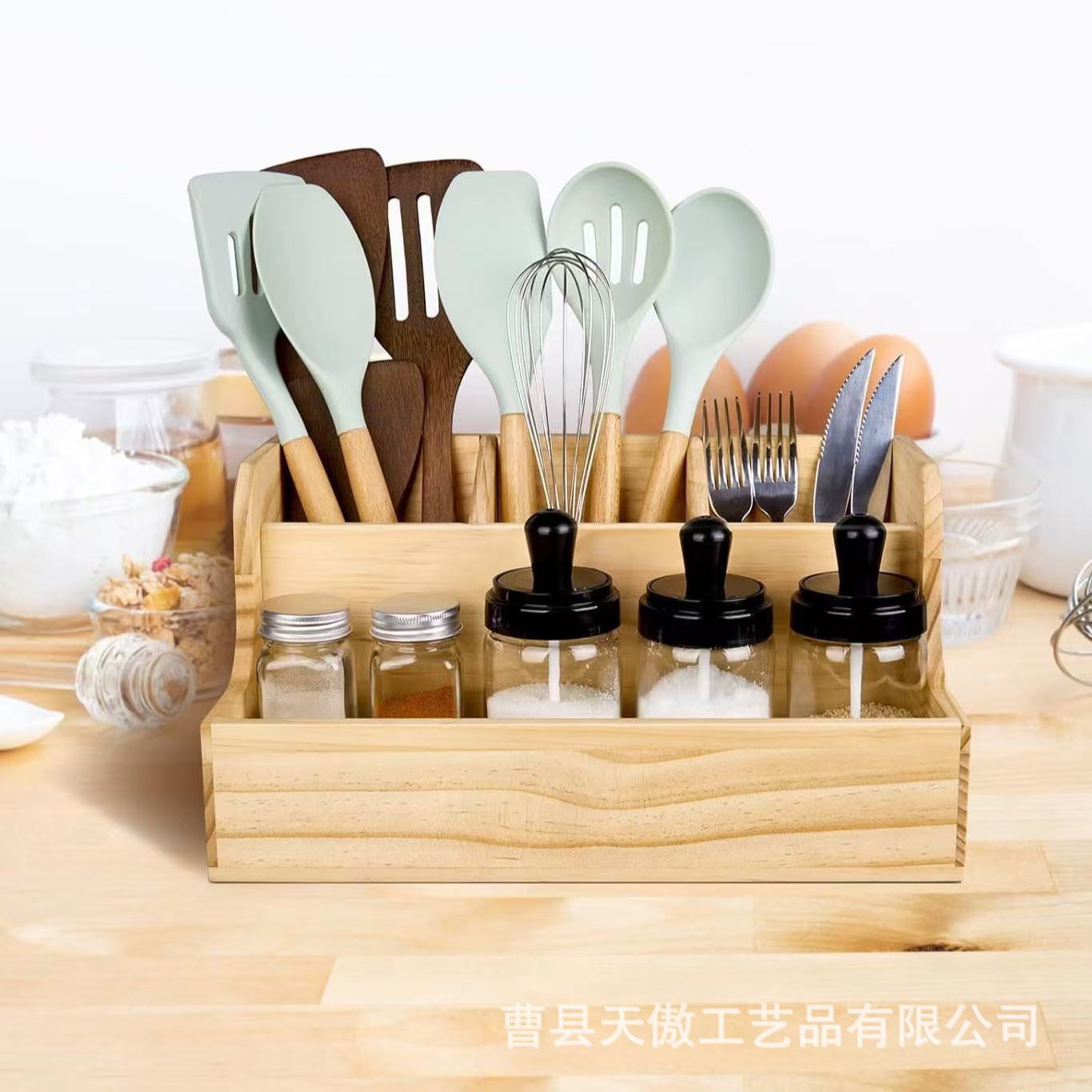 나무 주방 식기 저장 상자 멀티 구획 데스크탑 향신료 저장 상자 단단한 나무 다목적 네일 도구 마감 상자