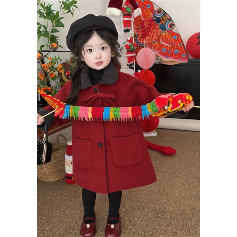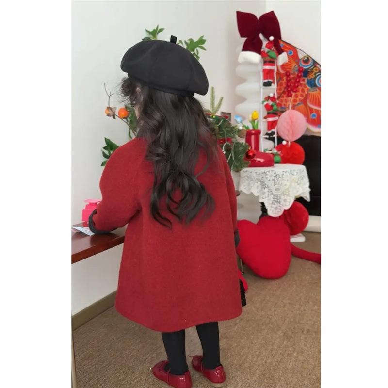 【Sweet Little Sister】여아용 코트 가을 겨울 25 신상품 어린이 양면 착용 모직 코트 중간 길이 의류 한국 스타일스토어 가기