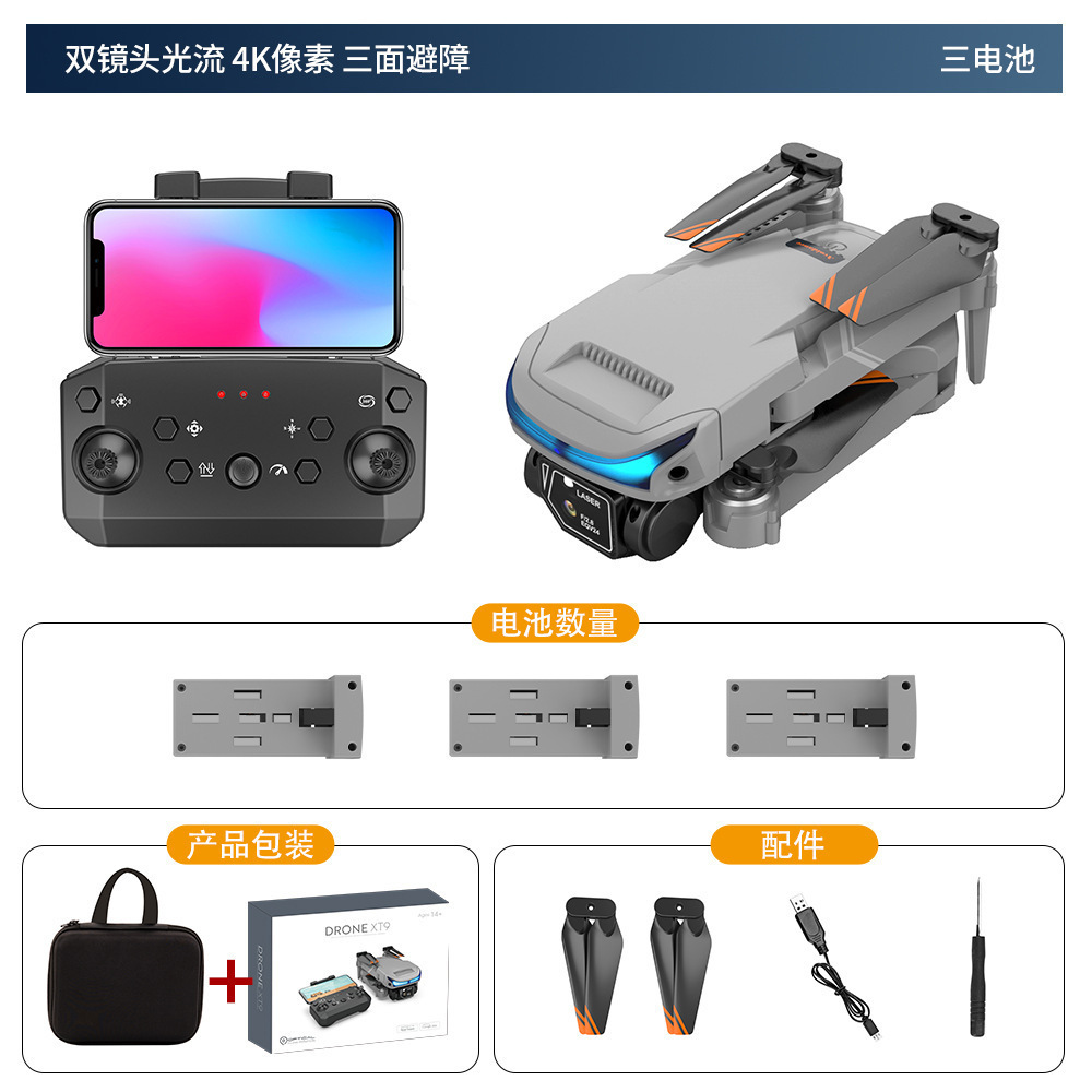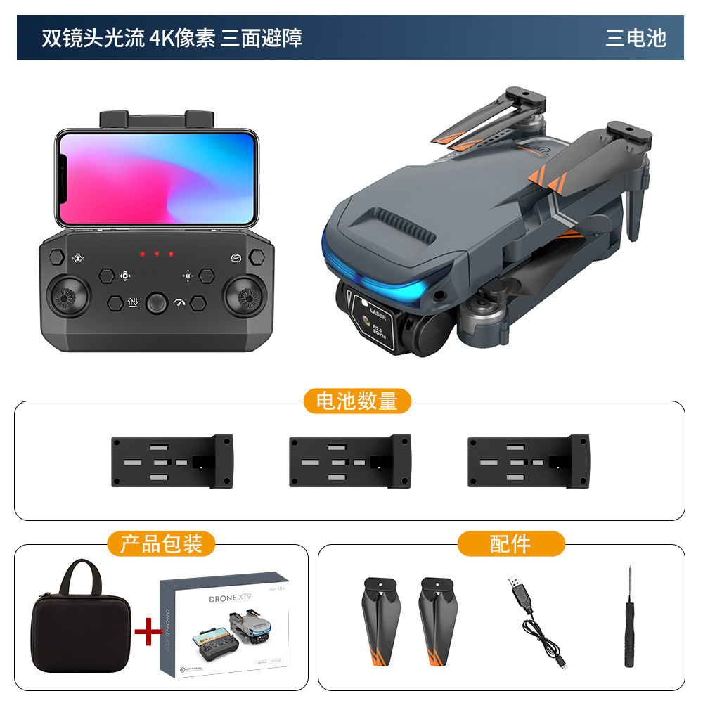 XT9 항공 사진 드론 HD 듀얼 렌즈 픽셀 멀티 로터 드론 광학 흐름 고정 높이 포지셔닝 원격 제어 드론스토어 가기