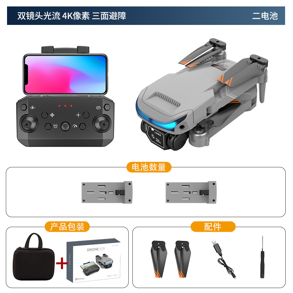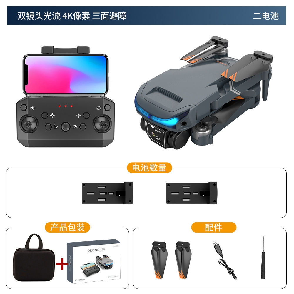 XT9 항공 사진 드론 HD 듀얼 렌즈 픽셀 멀티 로터 드론 광학 흐름 고정 높이 포지셔닝 원격 제어 드론