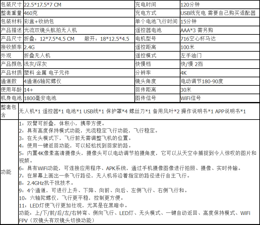 • 밝은 회색 4K 항공 사진 2 배터리 옵션