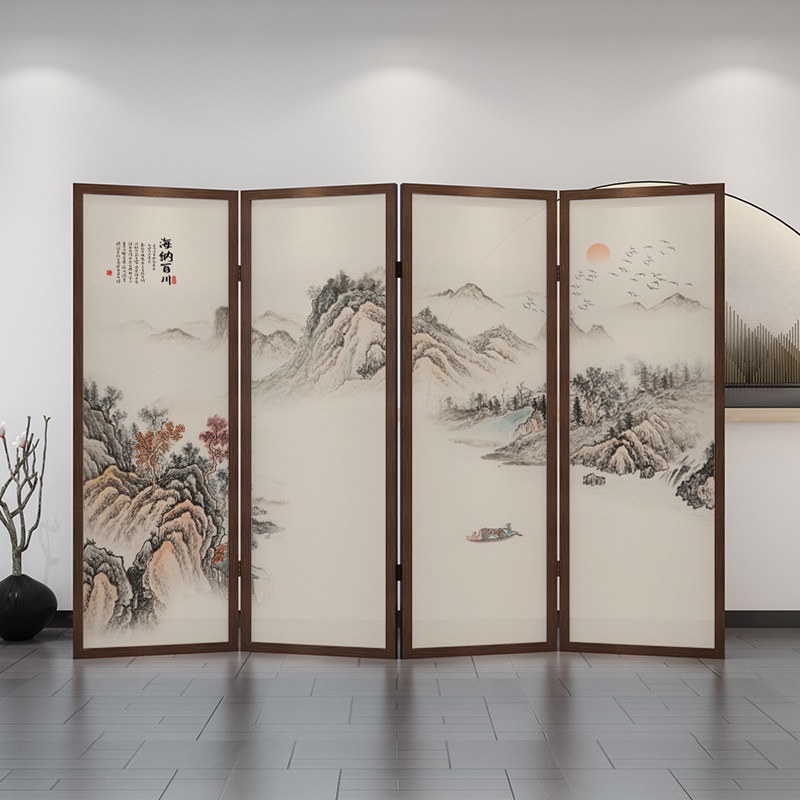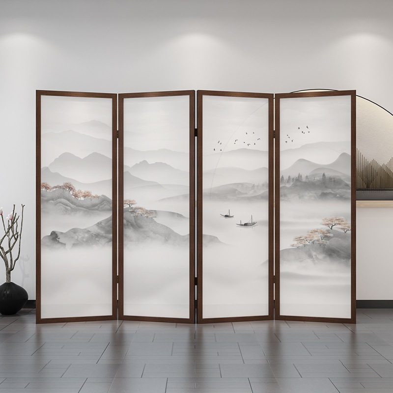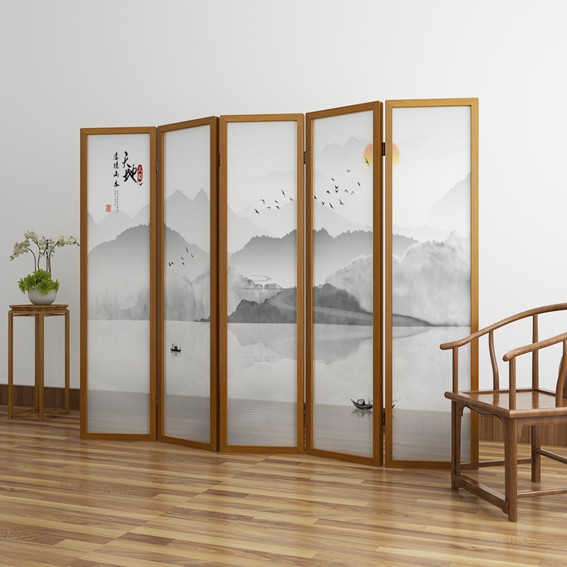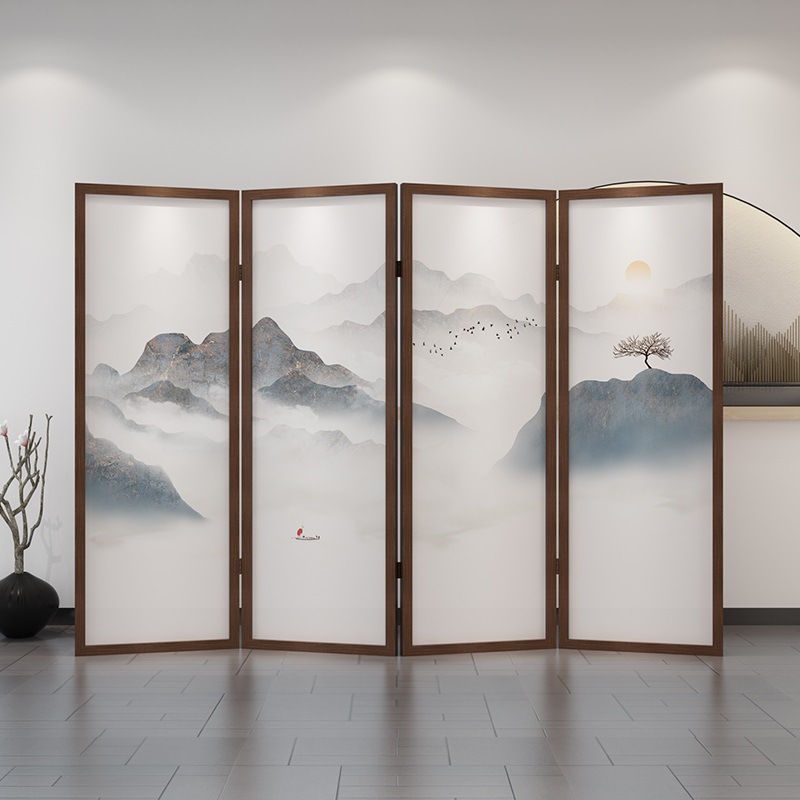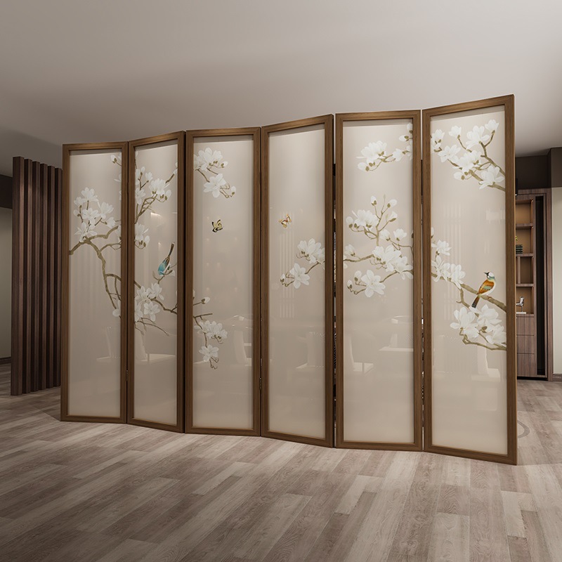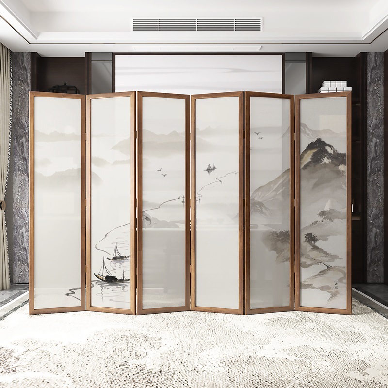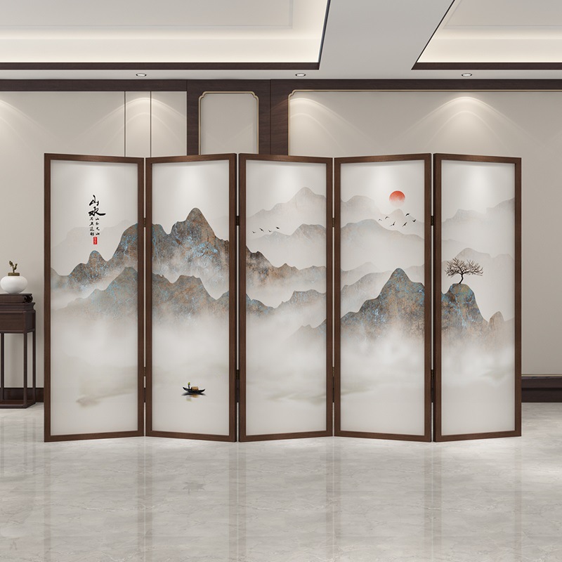 새로운 중국 스타일 솔리드 우드 폴딩 스크린 파티션 복도 호텔 사무실 입구 차실 현대 간단한 접이식 화면
