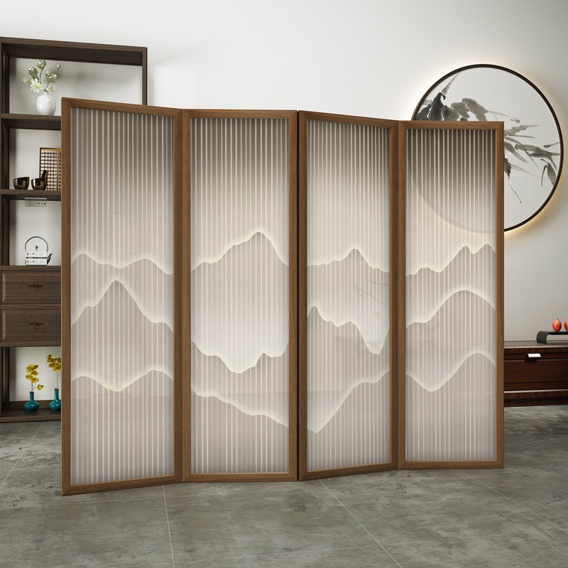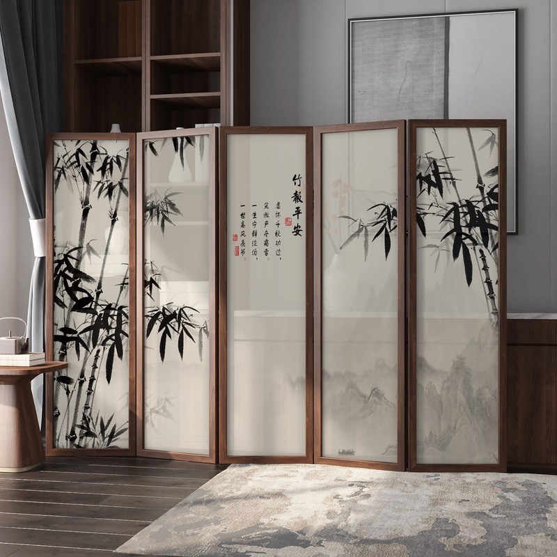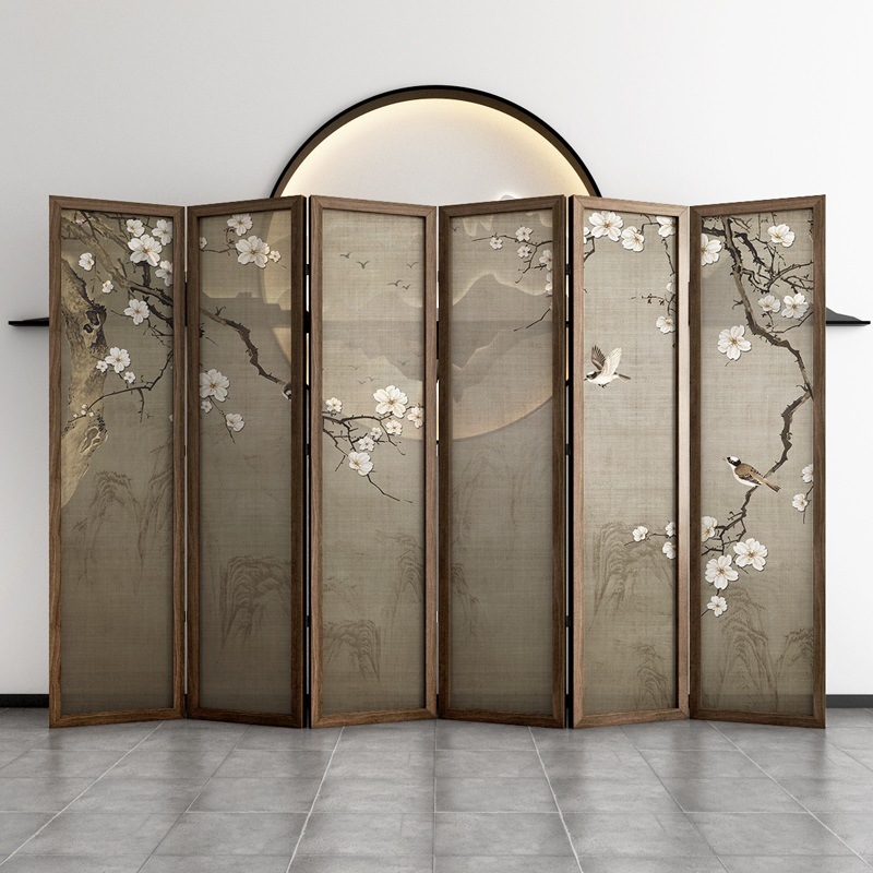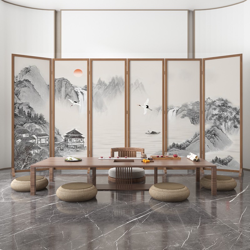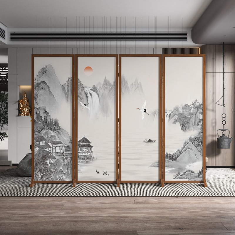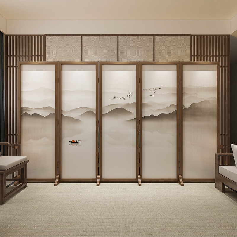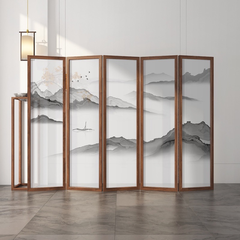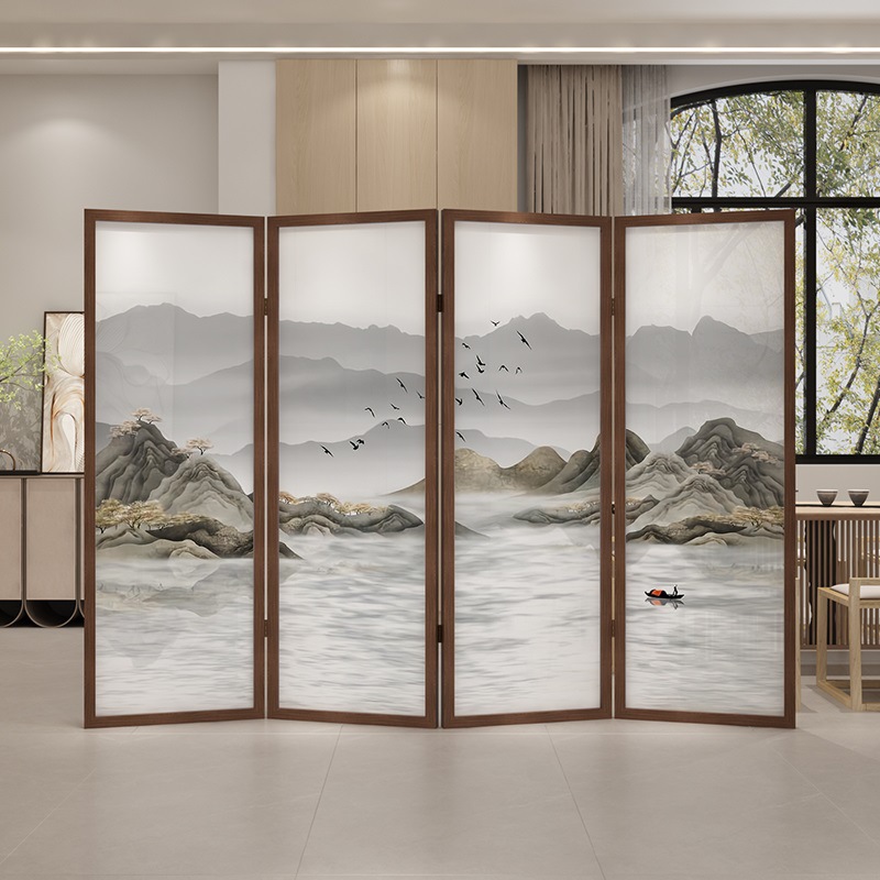 새로운 중국 스타일 솔리드 우드 폴딩 스크린 파티션 복도 호텔 사무실 입구 차실 현대 간단한 접이식 화면