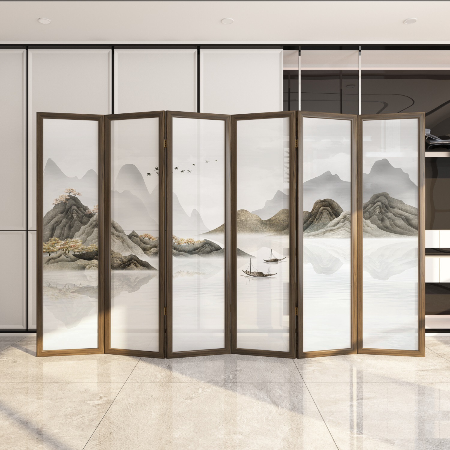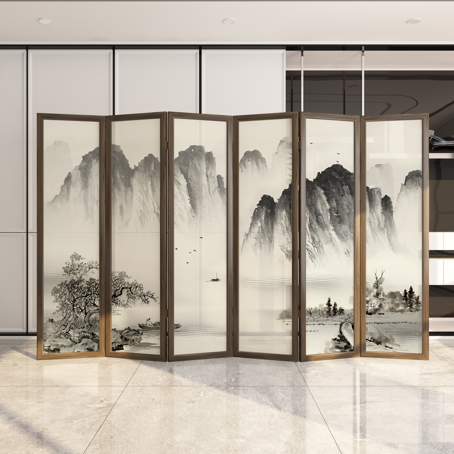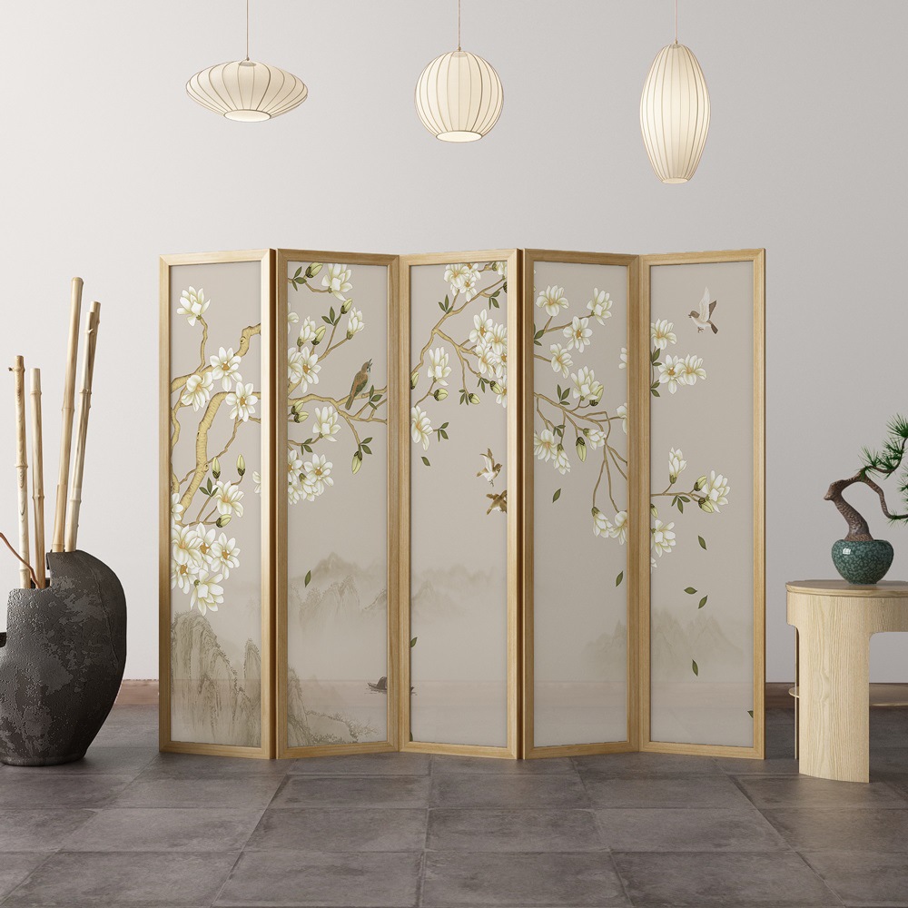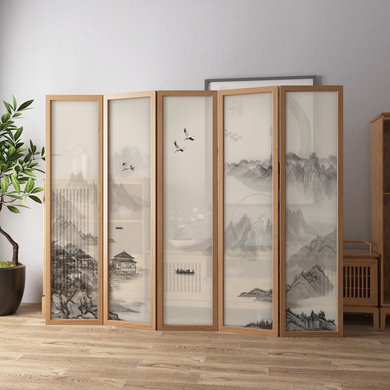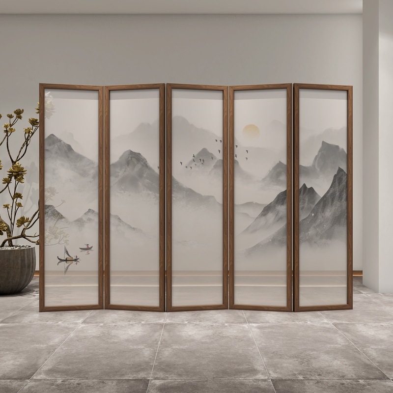 새로운 중국 스타일 솔리드 우드 폴딩 스크린 파티션 복도 호텔 사무실 입구 차실 현대 간단한 접이식 화면