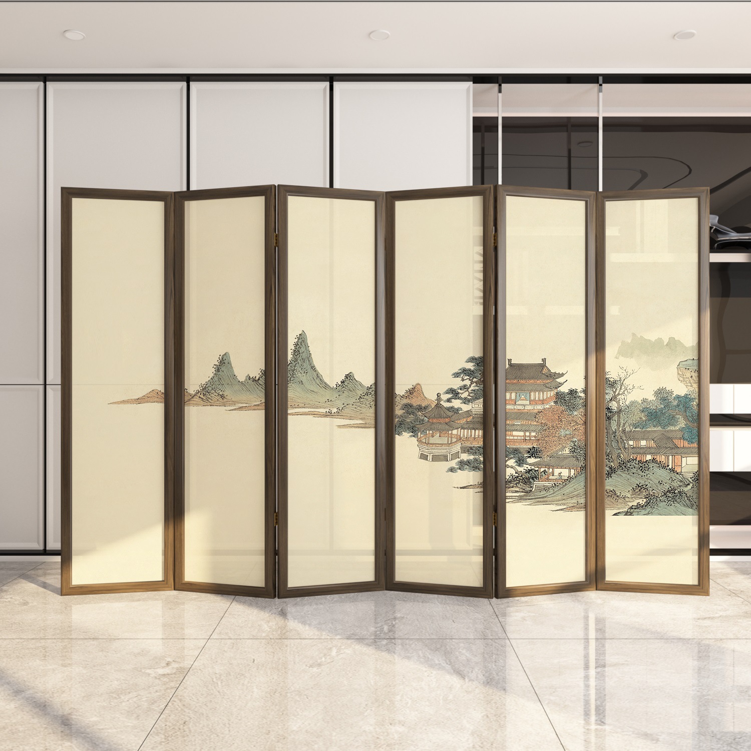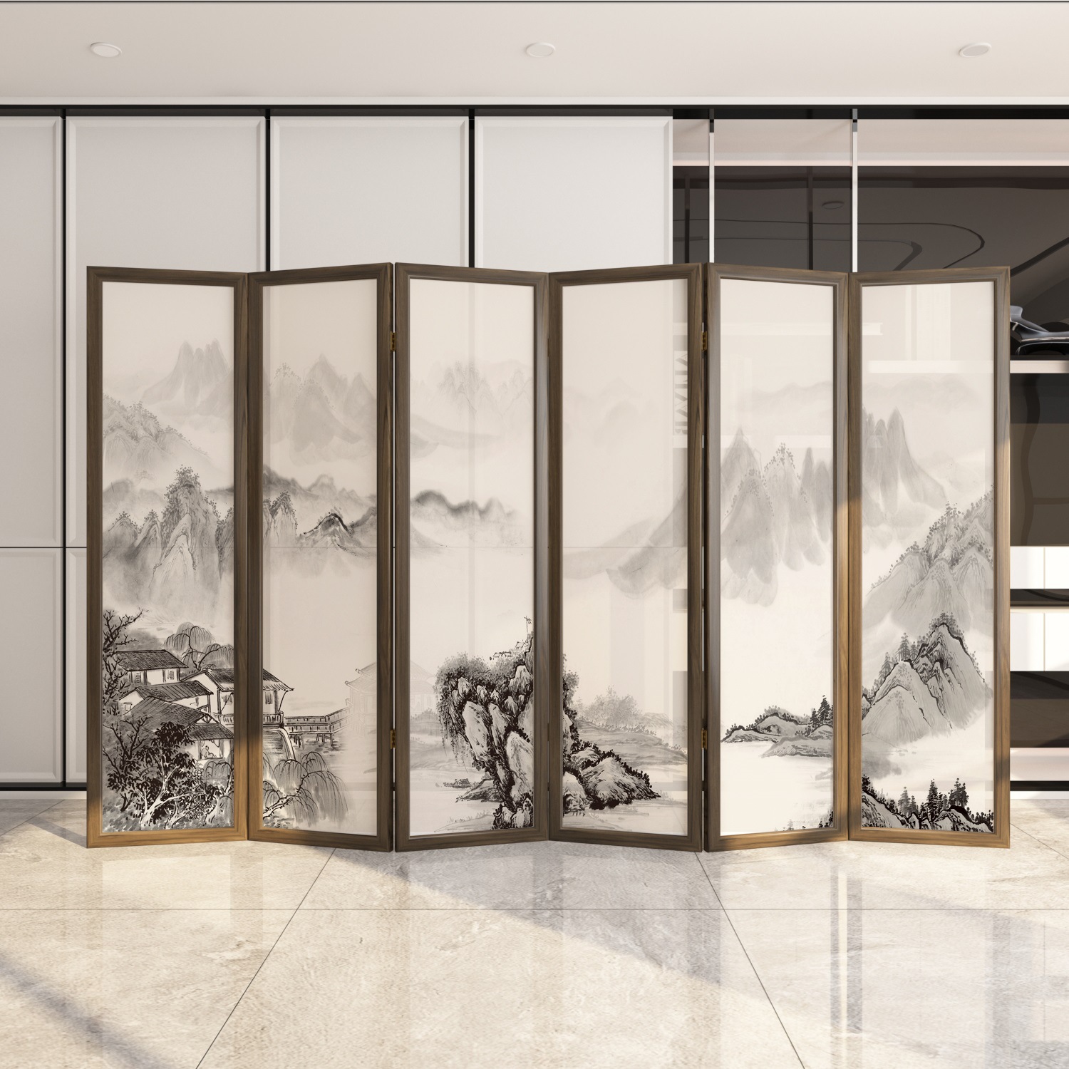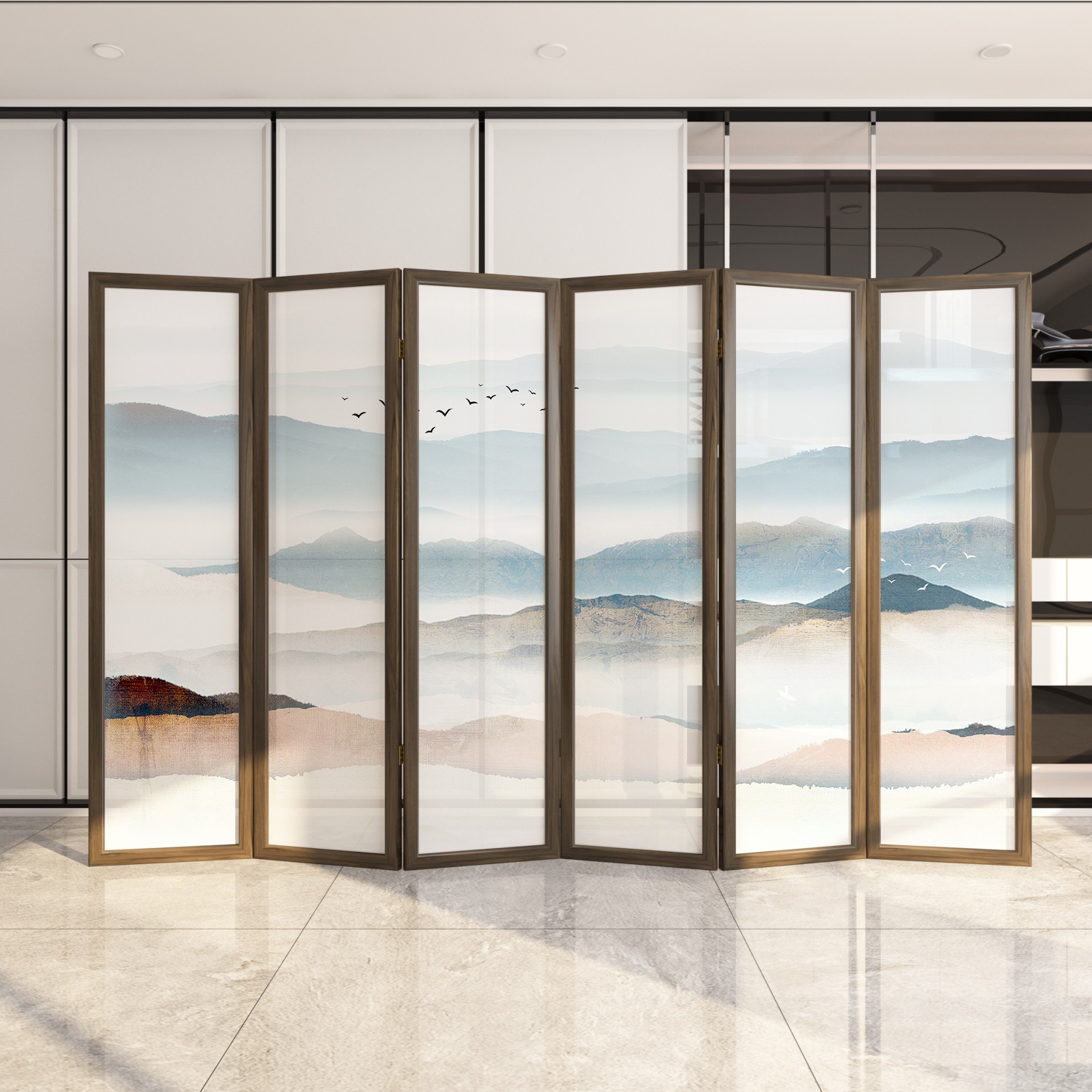 새로운 중국 스타일 솔리드 우드 폴딩 스크린 파티션 복도 호텔 사무실 입구 차실 현대 간단한 접이식 화면스토어 가기