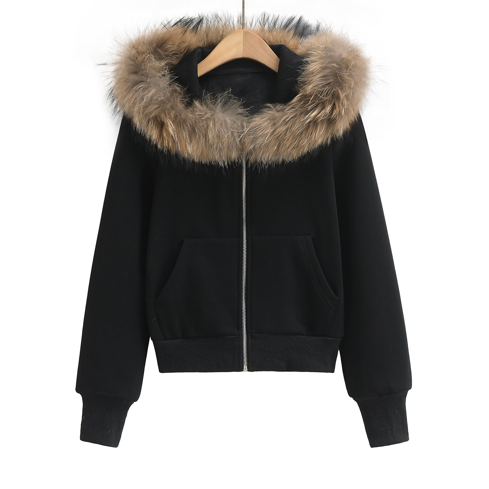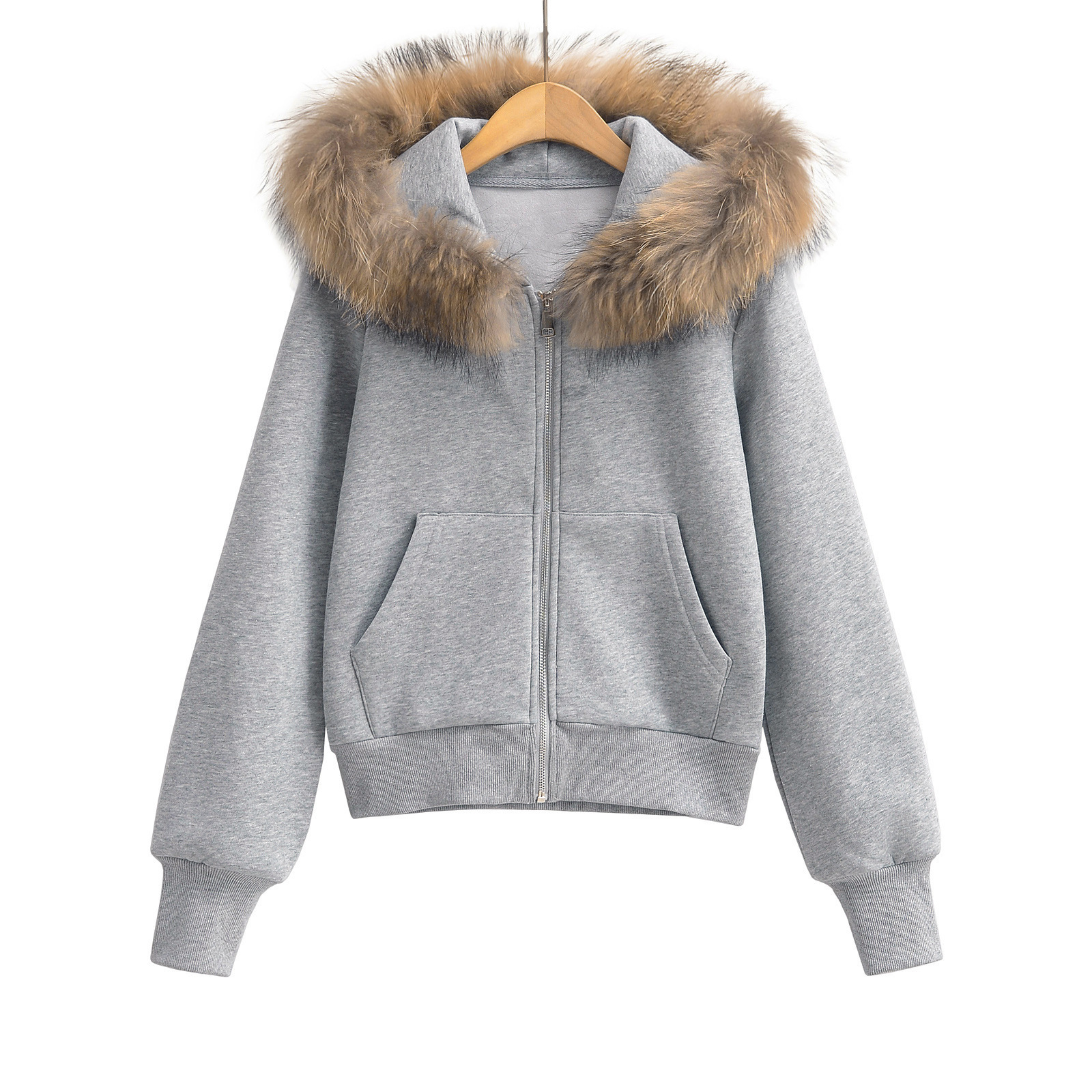 분리형 모피 칼라 후드 카디건 스웨터 여성의 2024 년 겨울 새로운 아메리칸 스타일 핫 걸스 기모 마오 마오 쇼트 코트스토어 가기