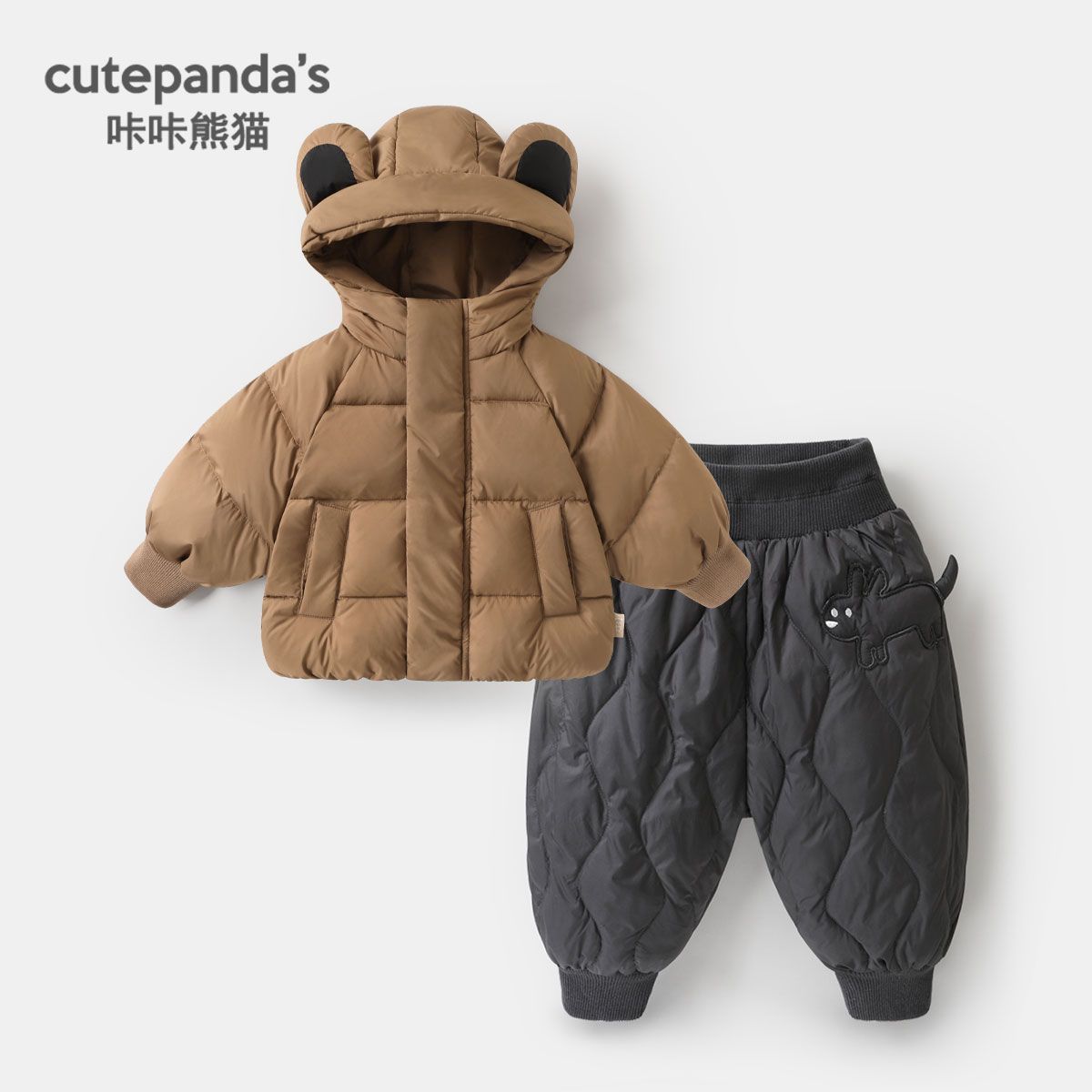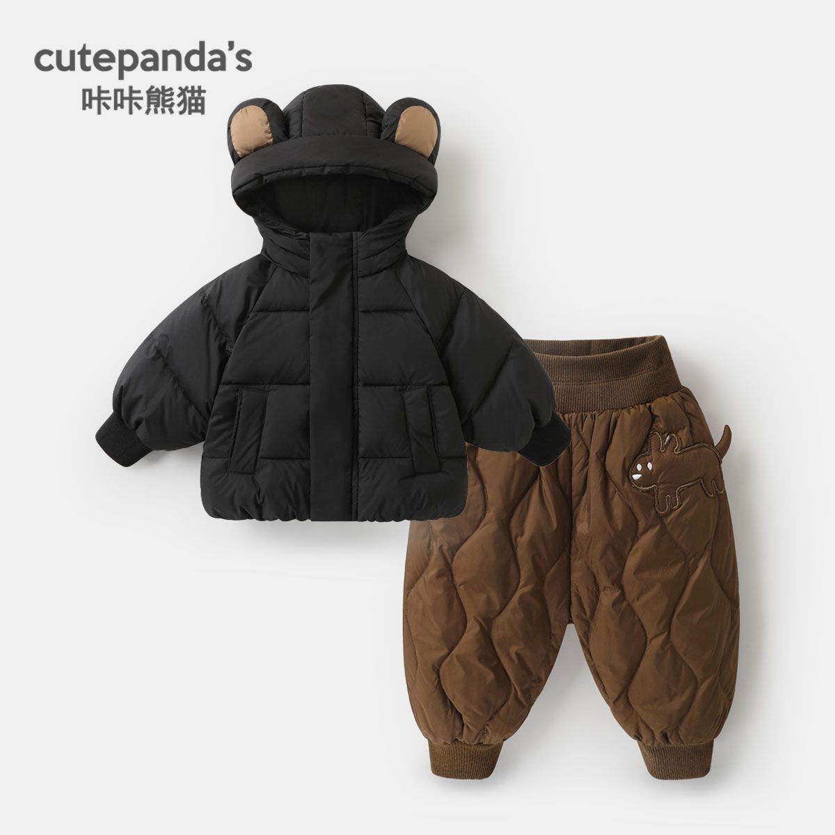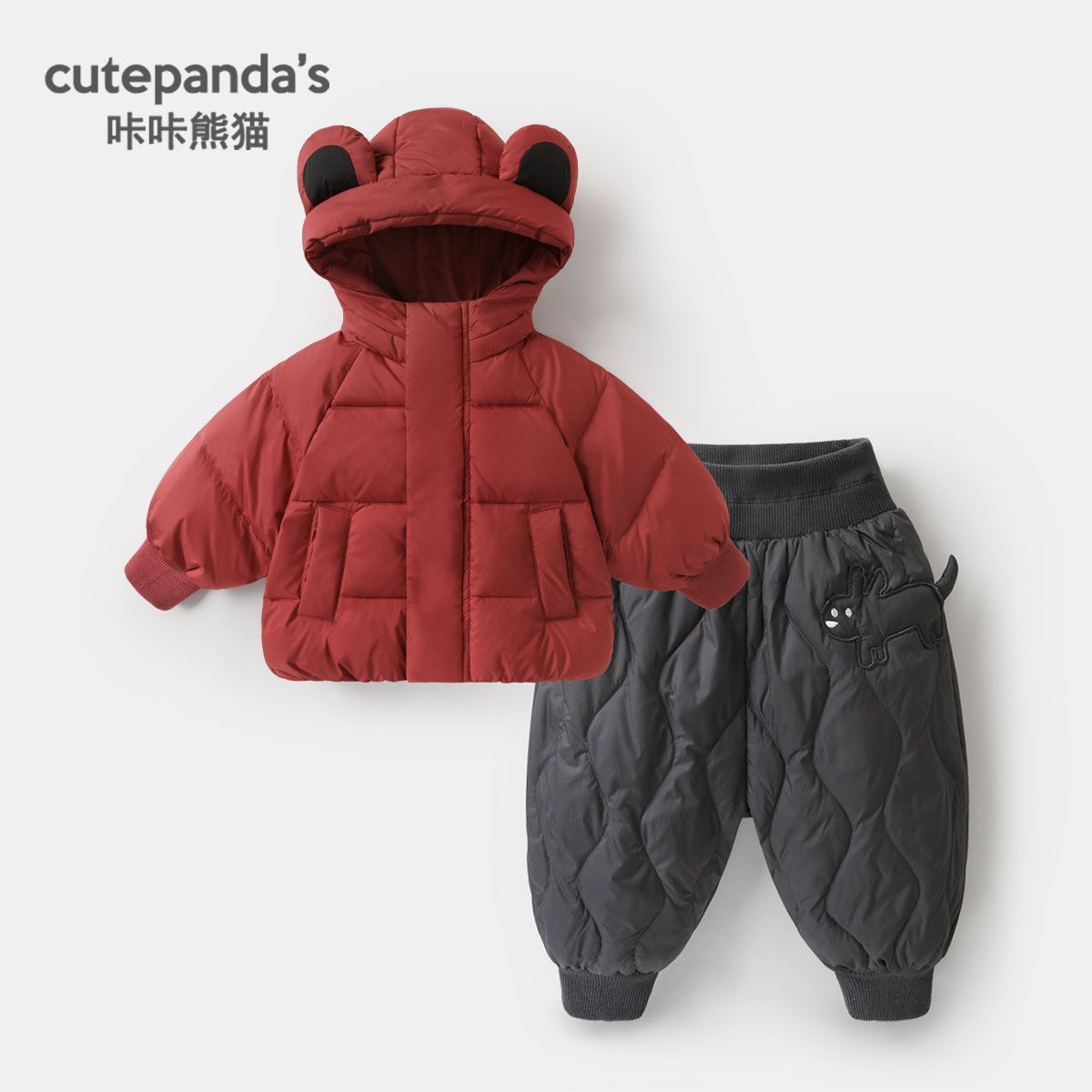 카카 팬더 베이비 후드 다운 재킷 세트 겨울 옷 소년 코튼 패딩 재킷 코튼 팬츠 소녀 아기 투피스 세트스토어 가기