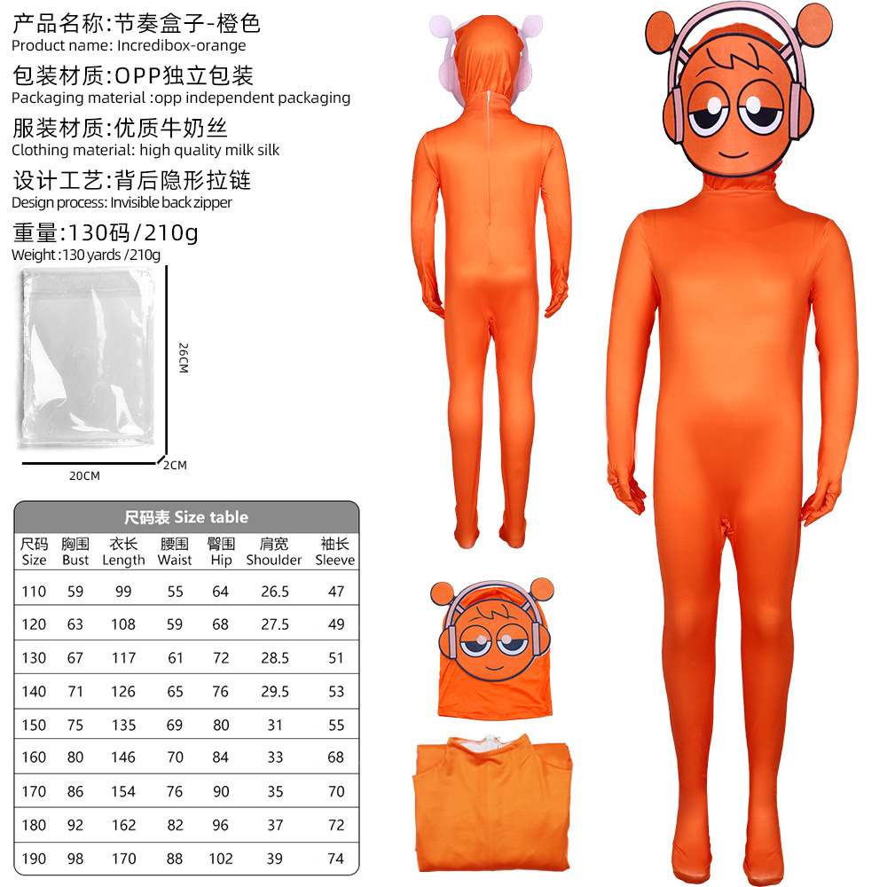 크로스 국경 리듬 박스 게임 오렌지 점프 수트 Sprunki Incredibox 할로윈 쇼 의상