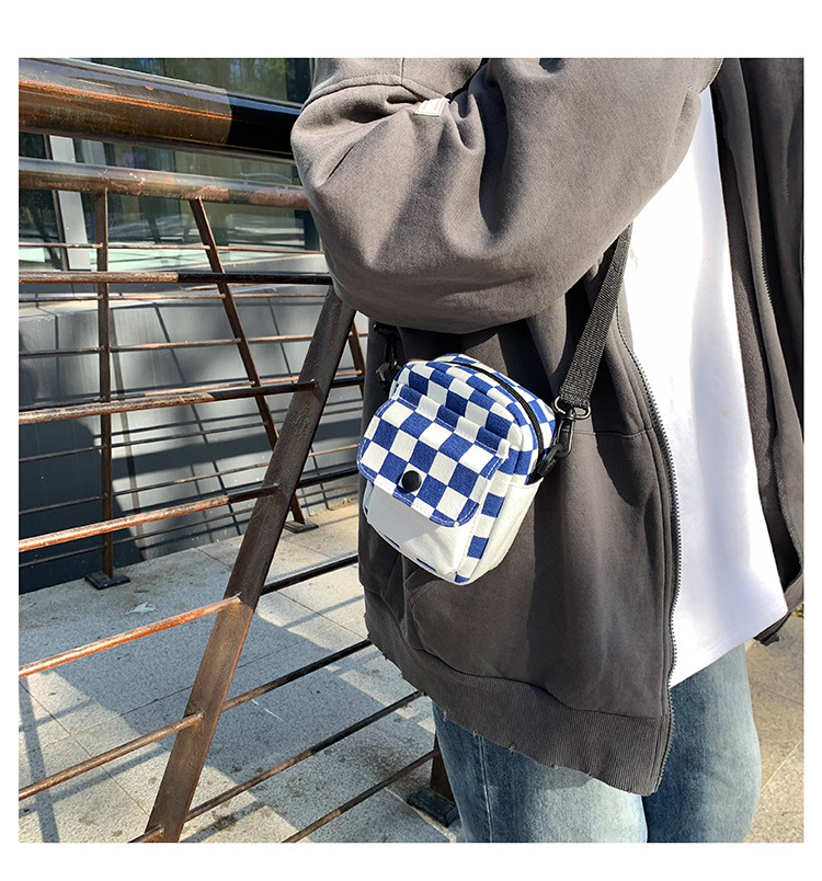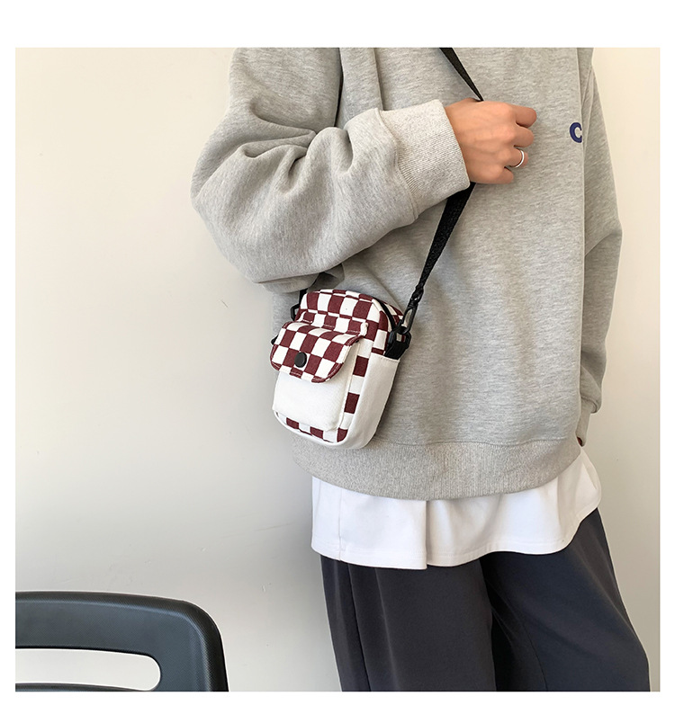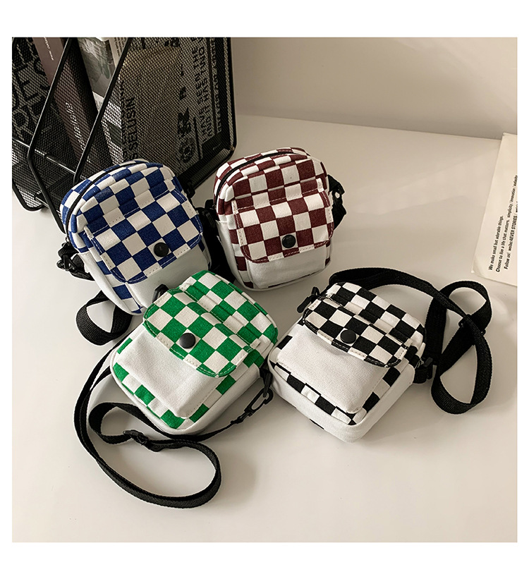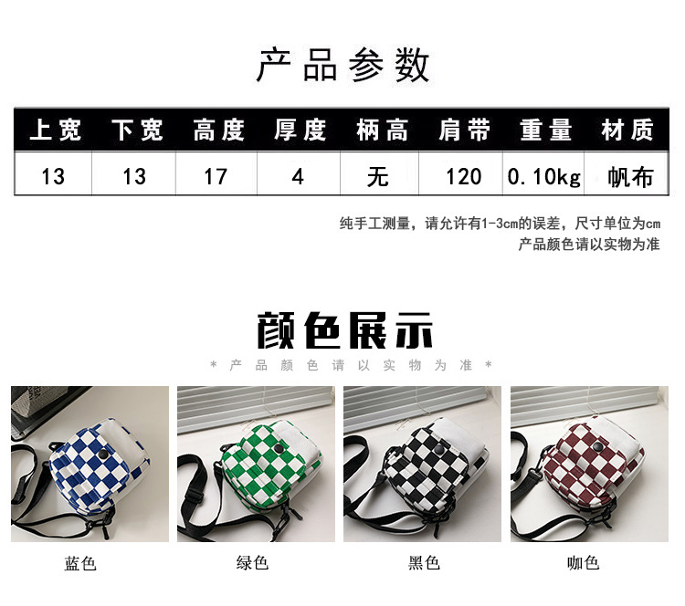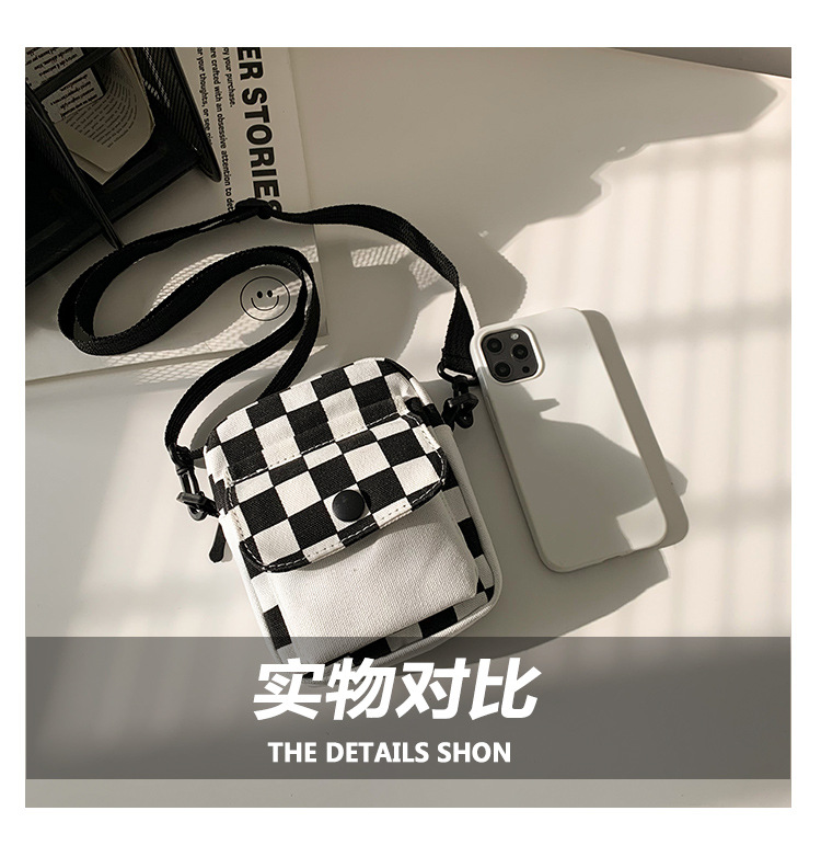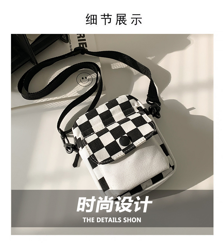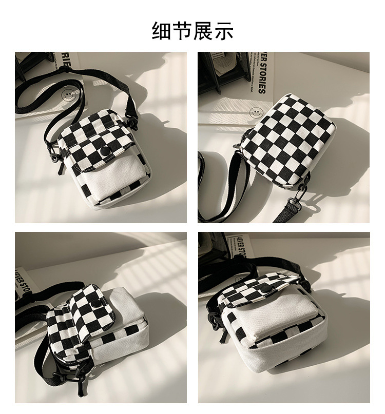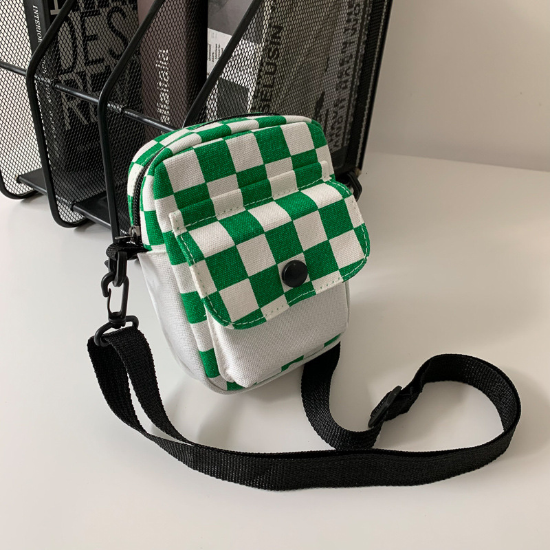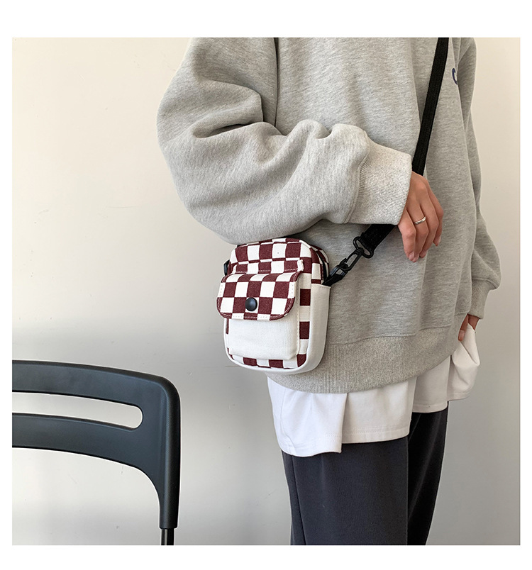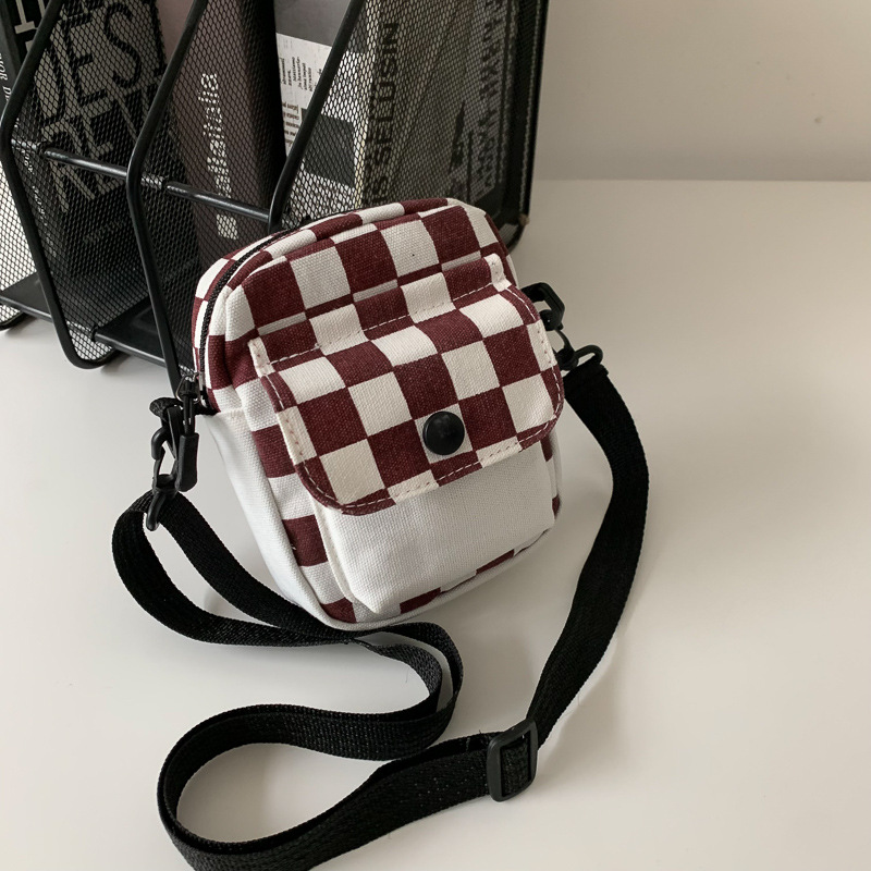 격자 무늬 작은 가방 여성용 크로스 바디 백 2024 새로운 Ins 틈새 맞춤형 모든 경기 학생 캔버스 어깨 작은 광장 가방스토어 가기