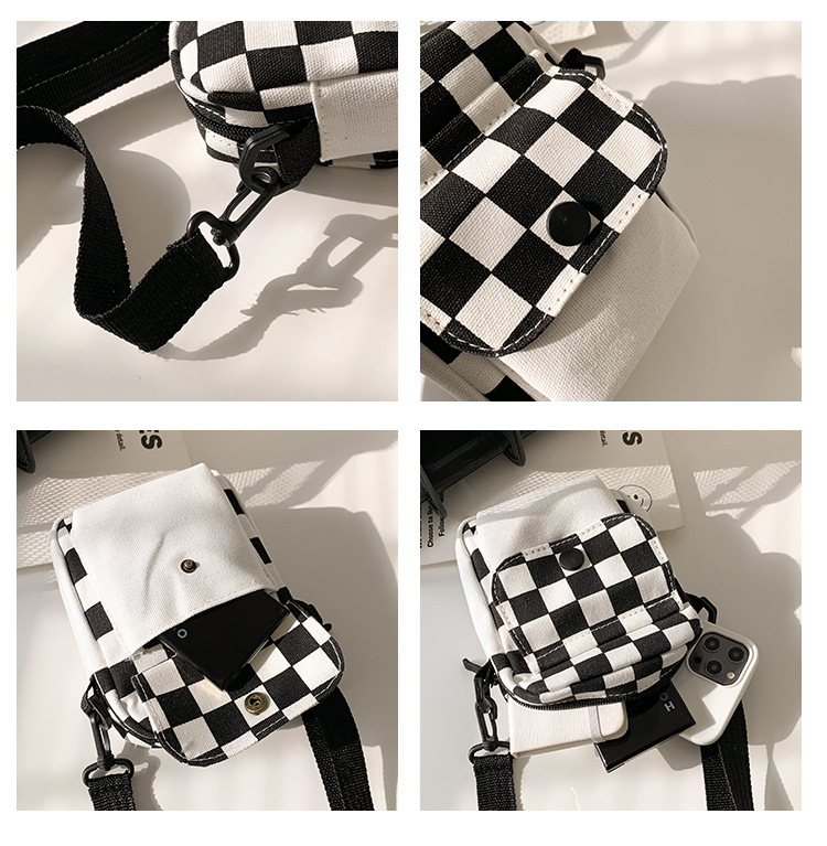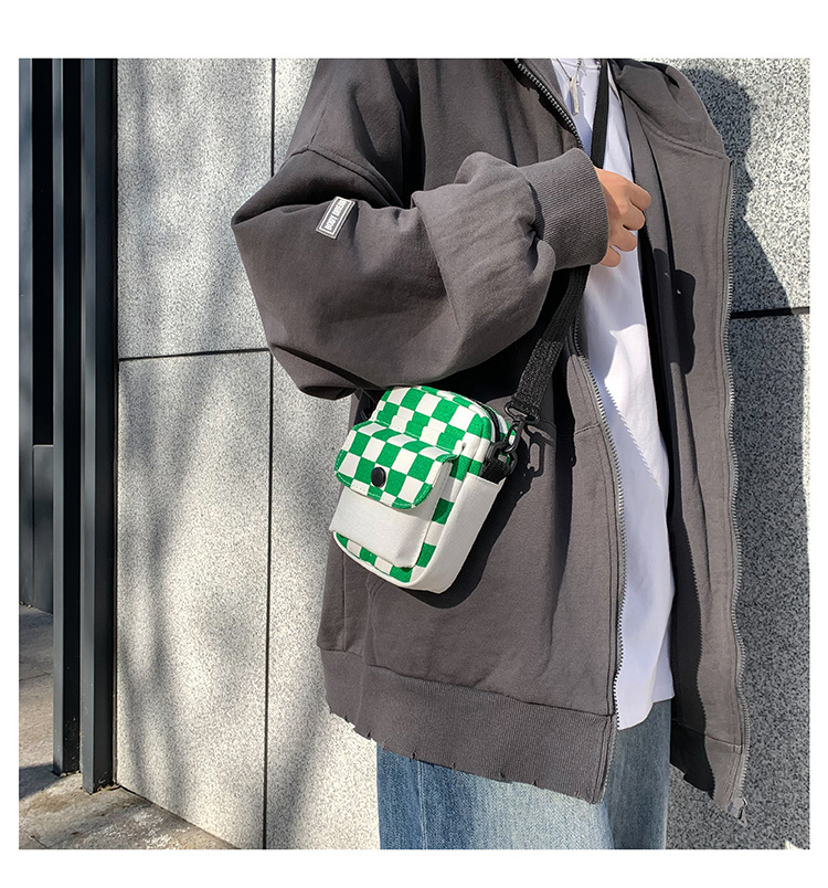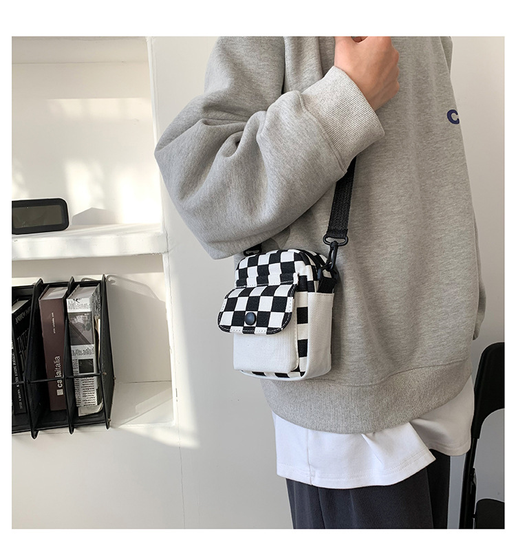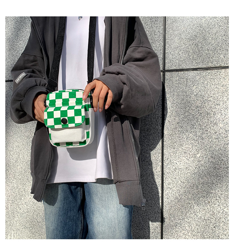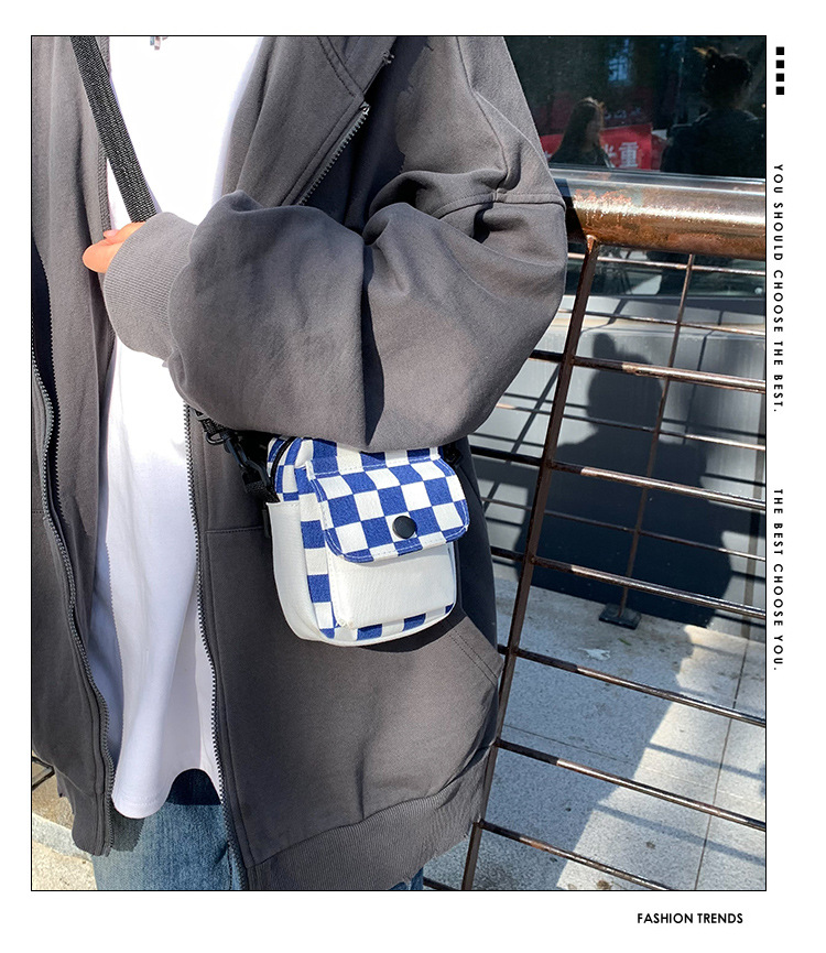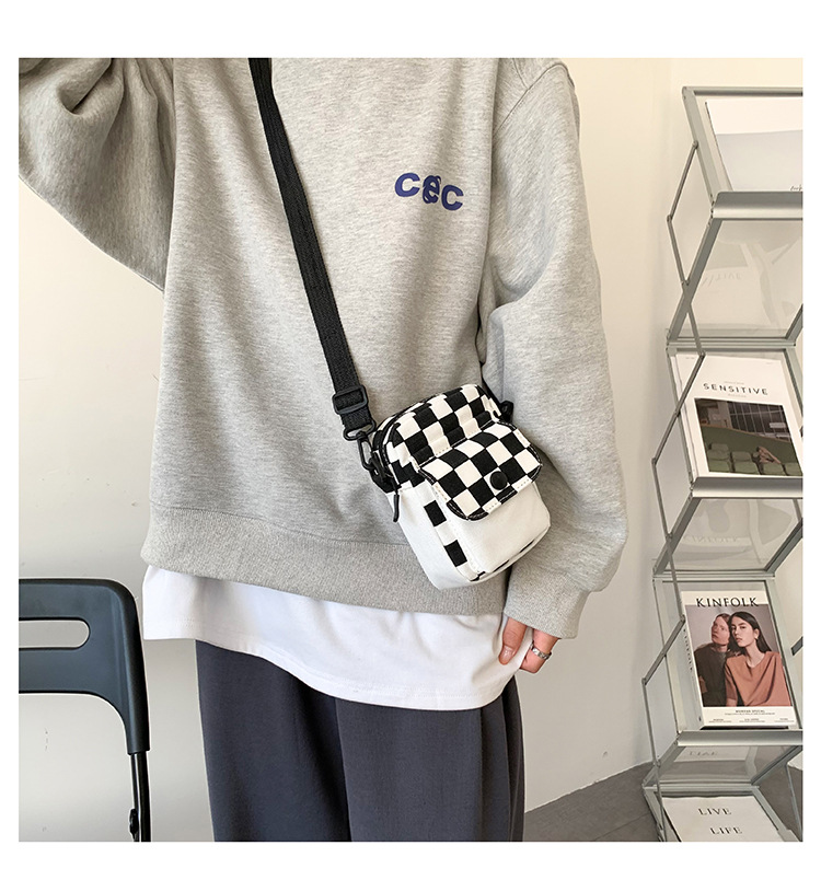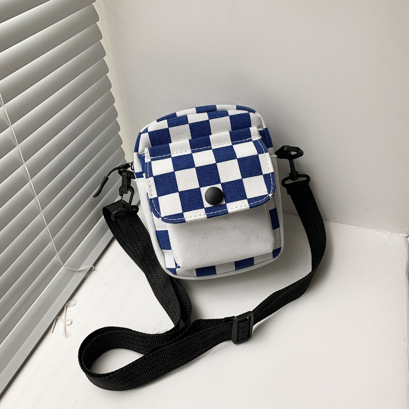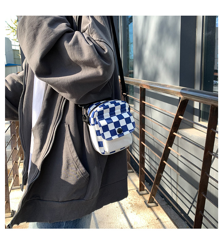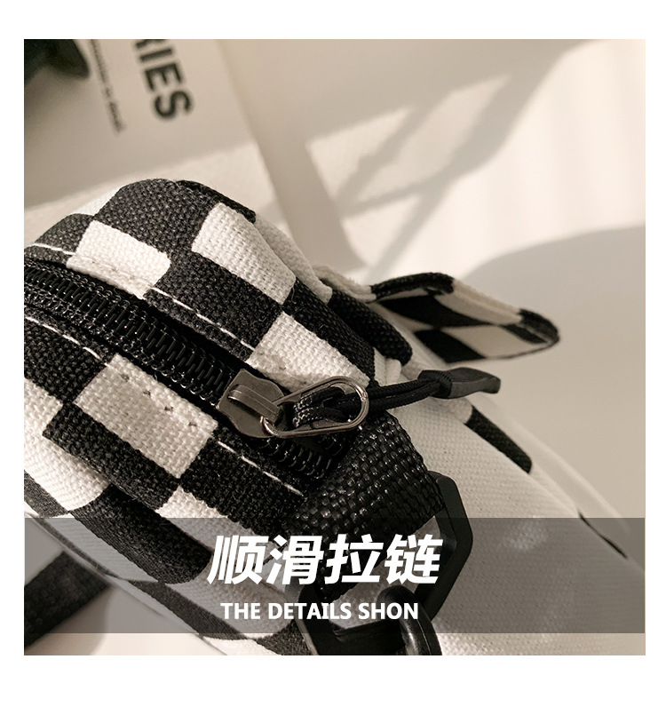 격자 무늬 작은 가방 여성용 크로스 바디 백 2024 새로운 Ins 틈새 맞춤형 모든 경기 학생 캔버스 어깨 작은 광장 가방스토어 가기