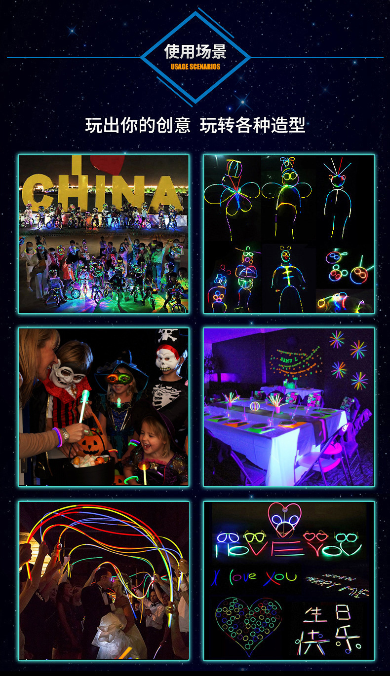 글로우 스틱 어린이 빛나는 팔찌 DIY 장난감 티크 토크 부모-아동 형광 댄스 휴일 파티 야외 캠핑스토어 가기