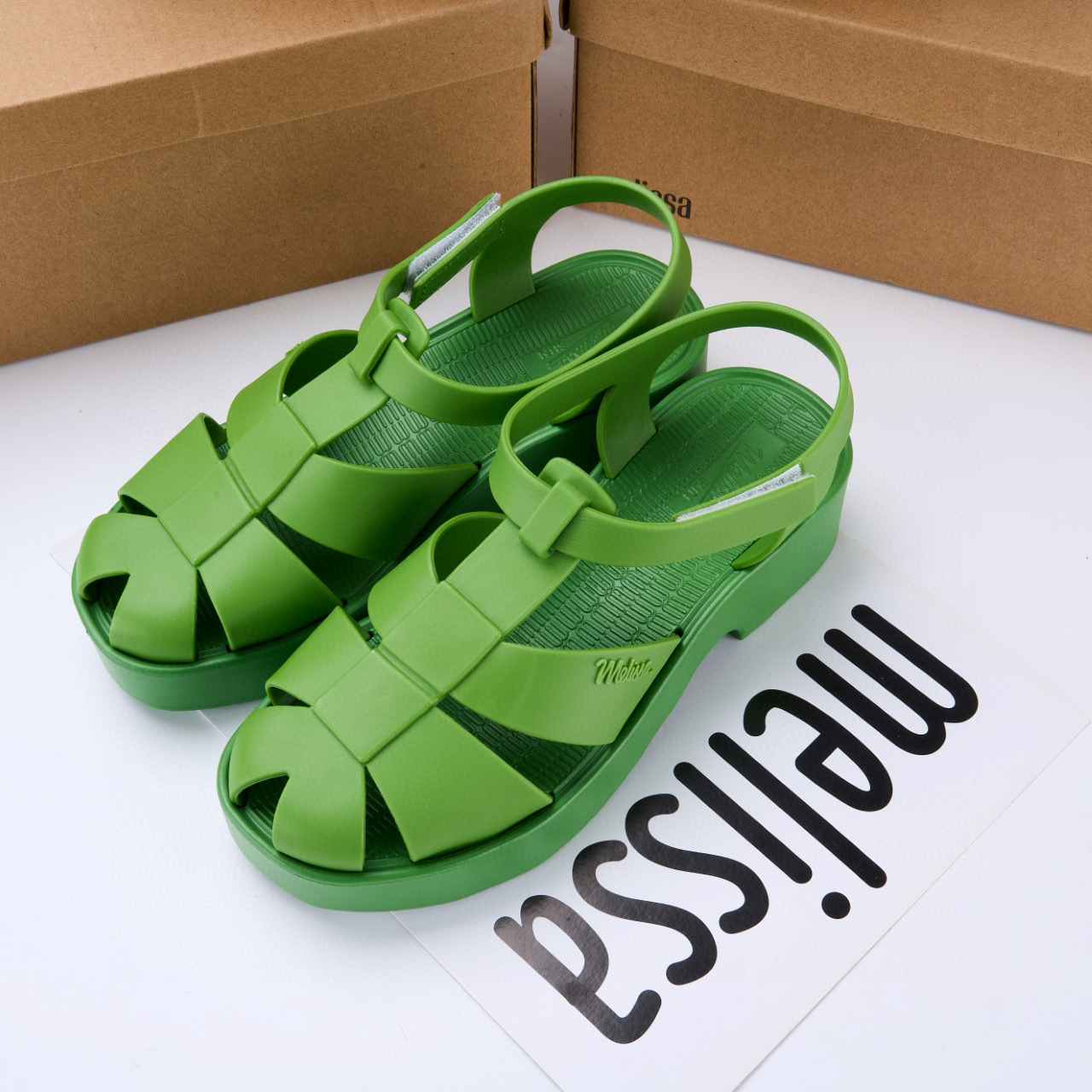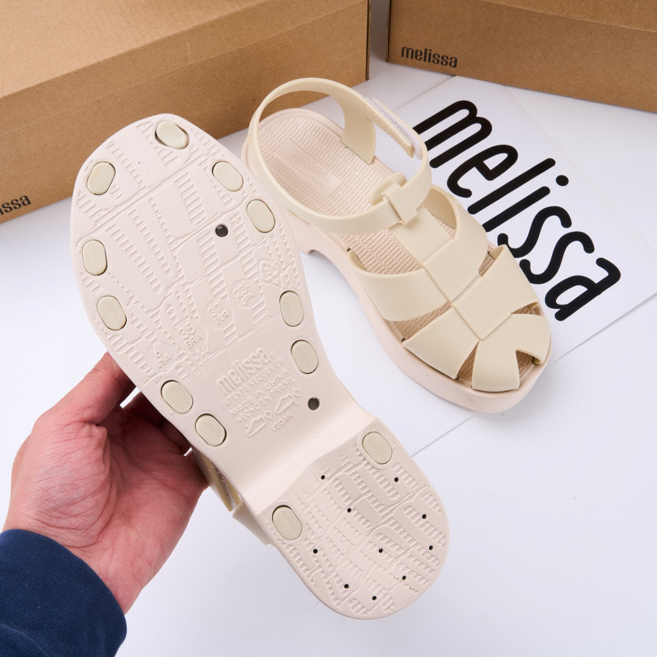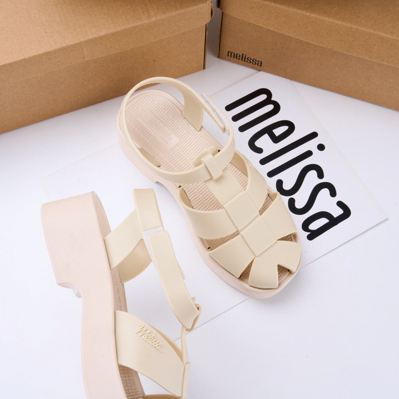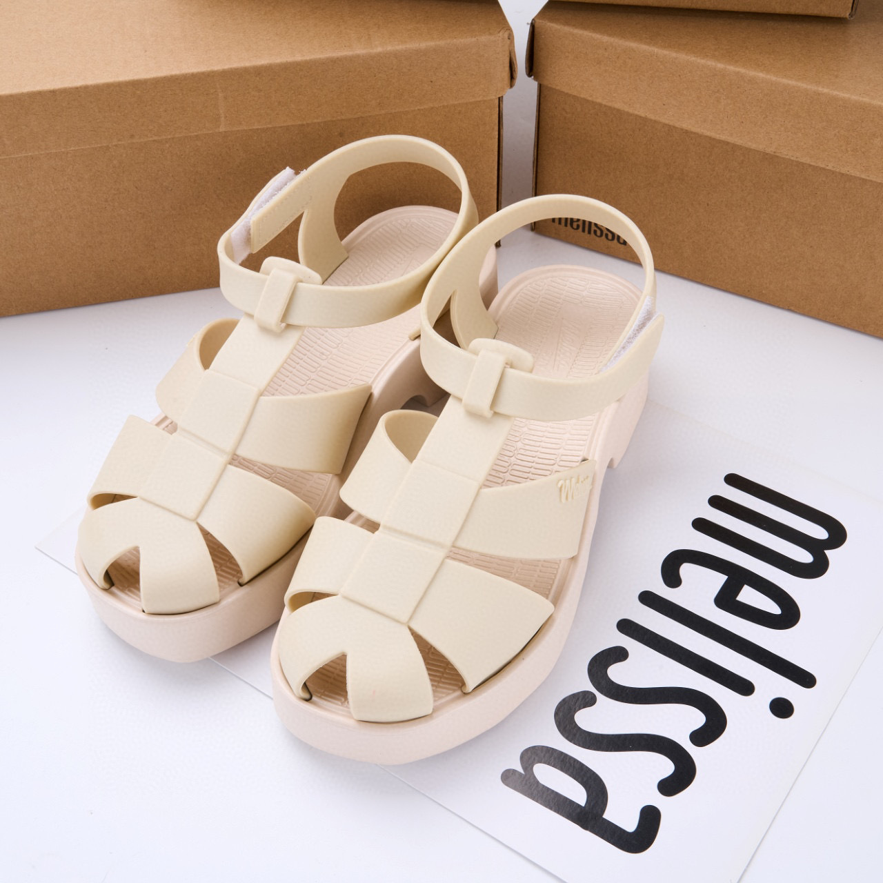 2025 멜리사 젤리 슈즈 여성 샌들 라운드 토 로마 스타일 미드힐 비치 슈즈 두꺼운 밑창 캐주얼 레이스업스토어 가기
