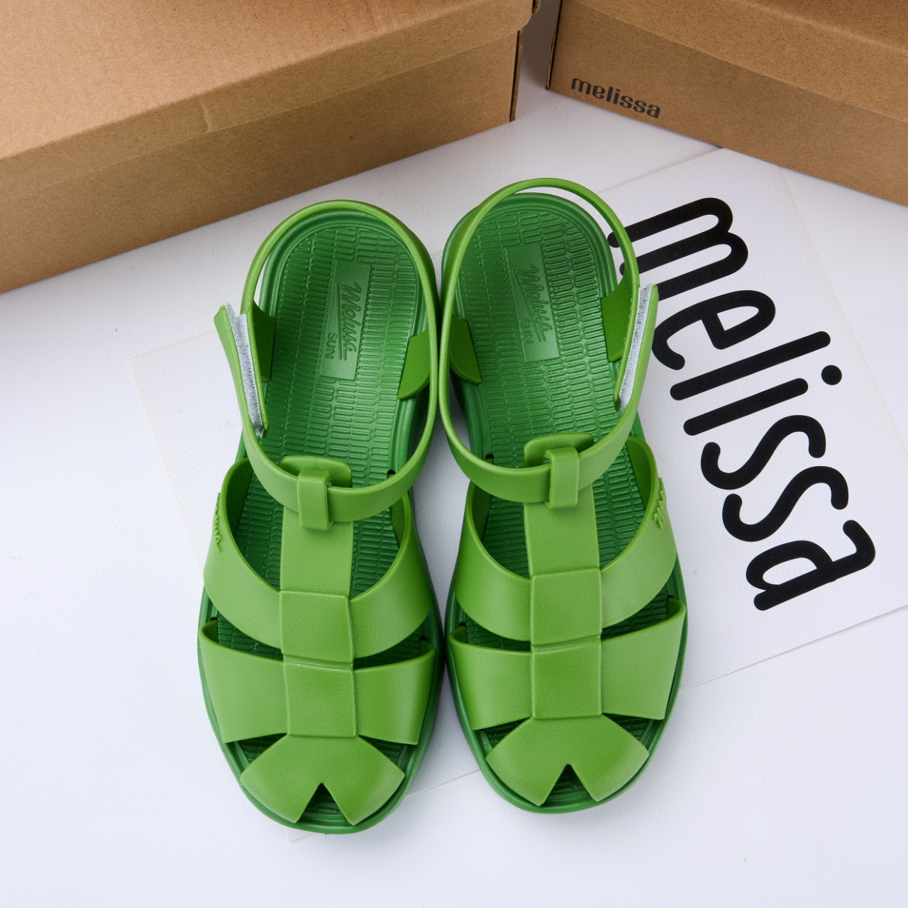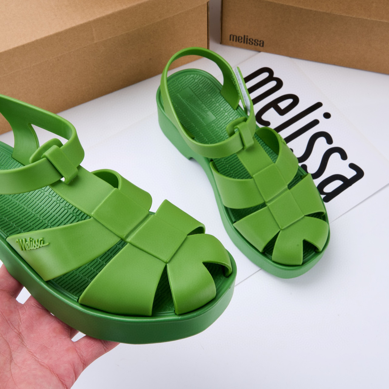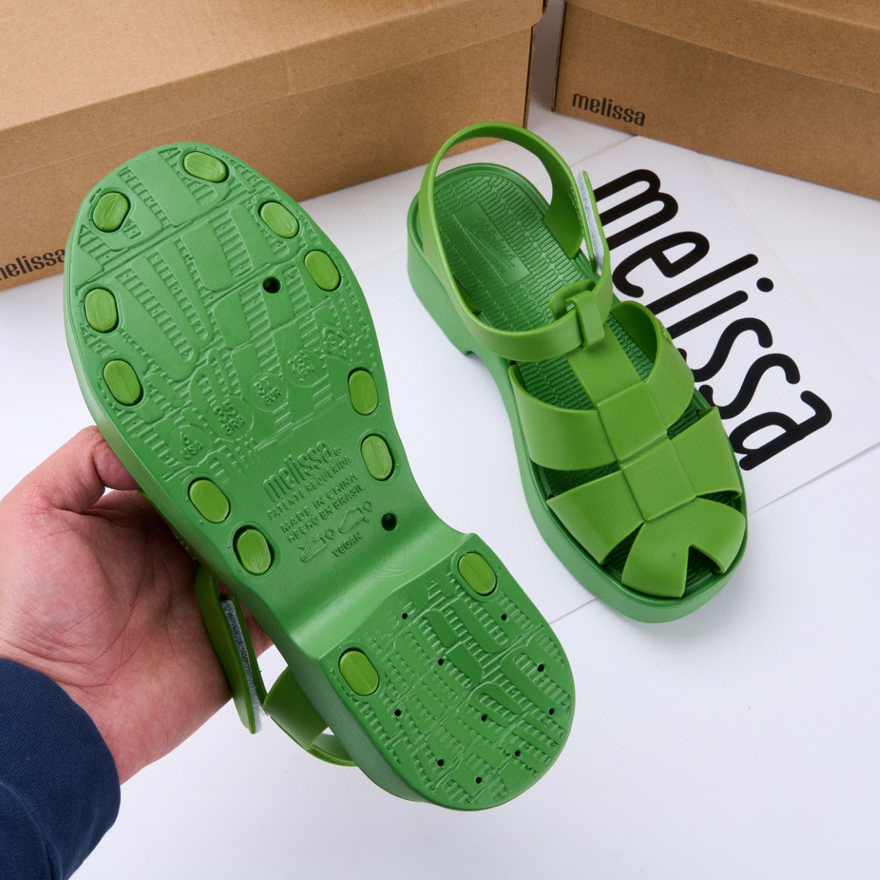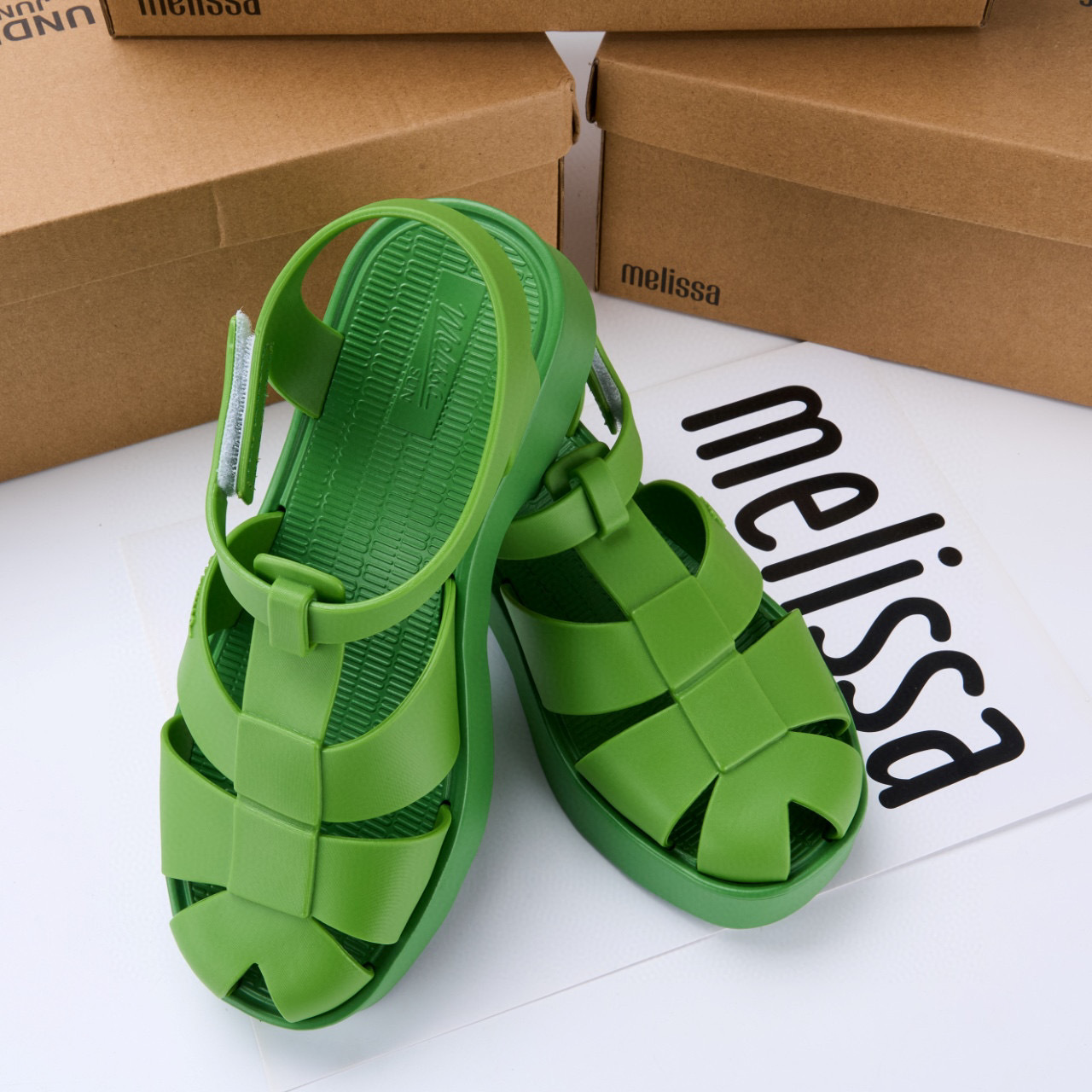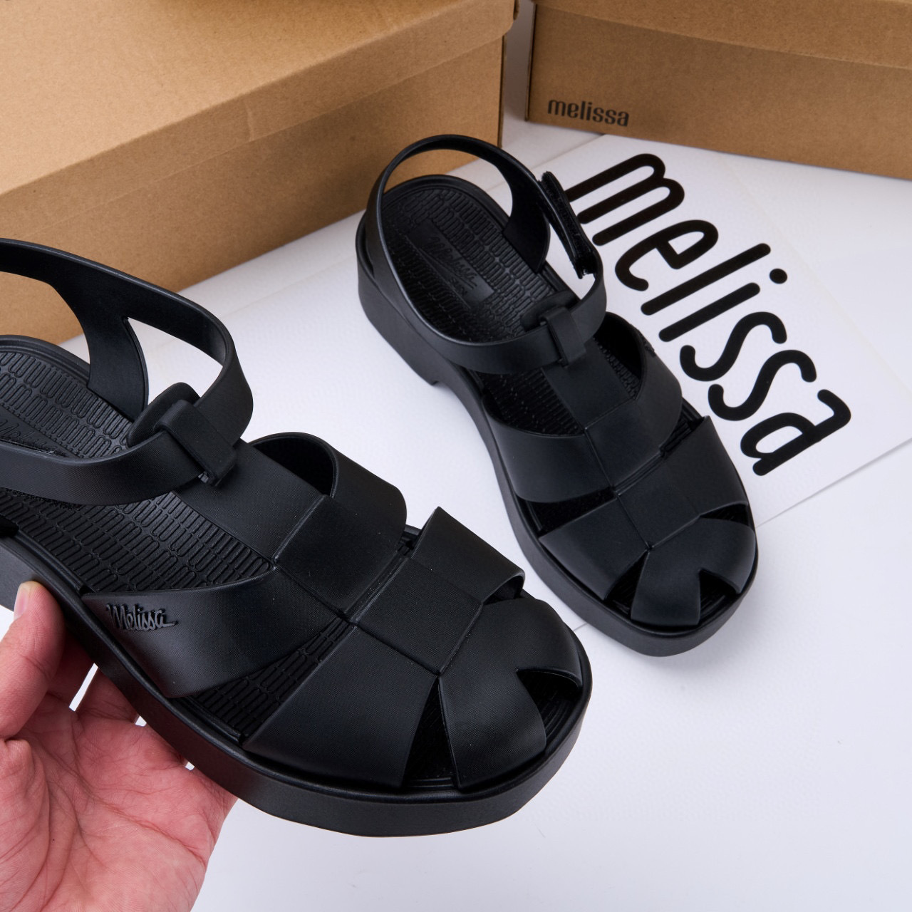 2025 멜리사 젤리 슈즈 여성 샌들 라운드 토 로마 스타일 미드힐 비치 슈즈 두꺼운 밑창 캐주얼 레이스업스토어 가기