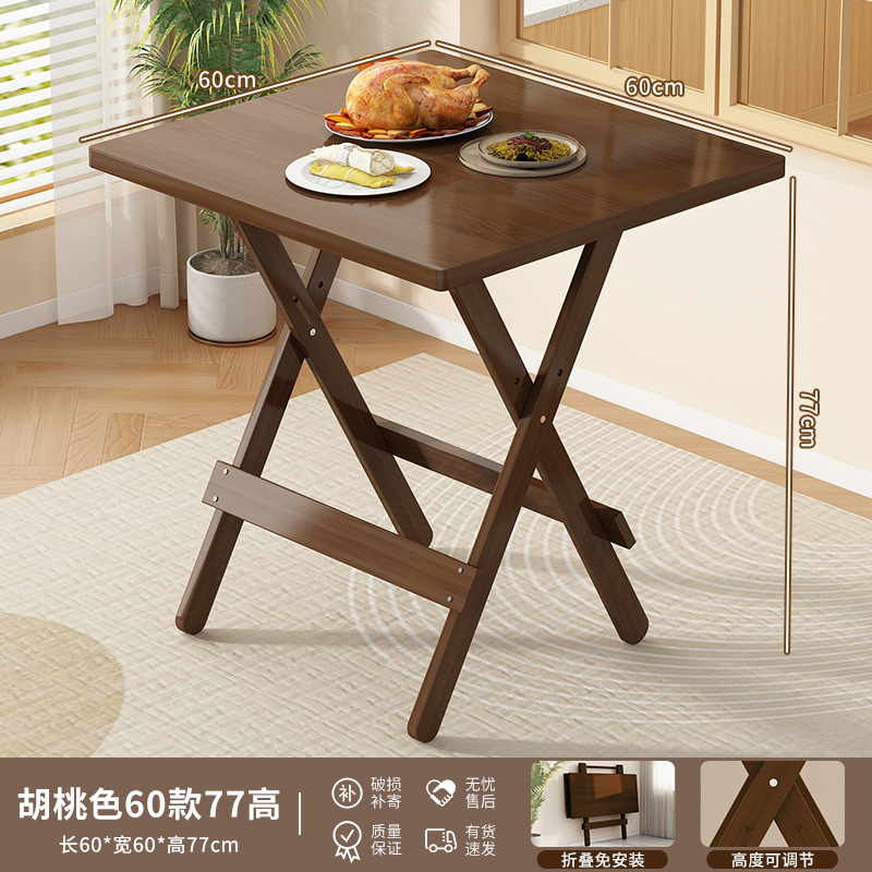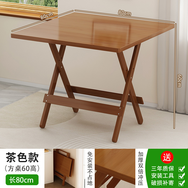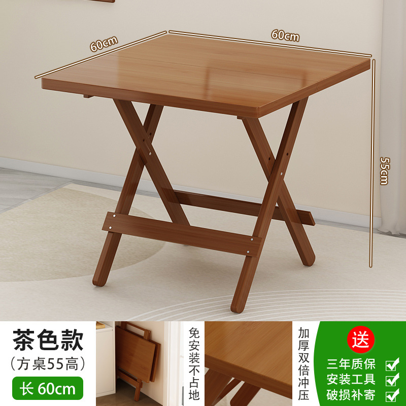 접이식 테이블 스퀘어 다이닝 테이블 작은 아파트 다이닝 테이블 스퀘어 마작 가정용 휴대용 야외 대나무 및 목재 보관