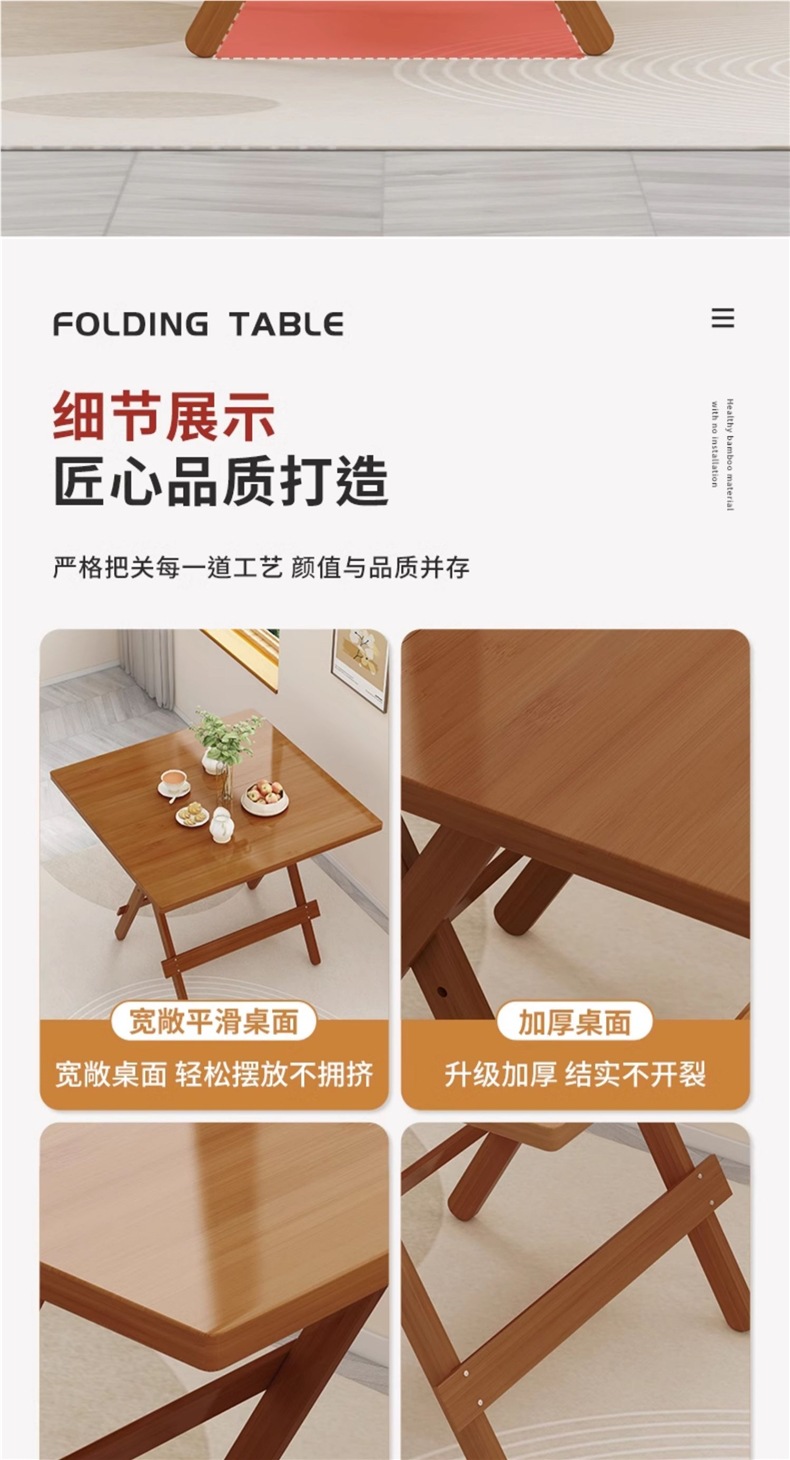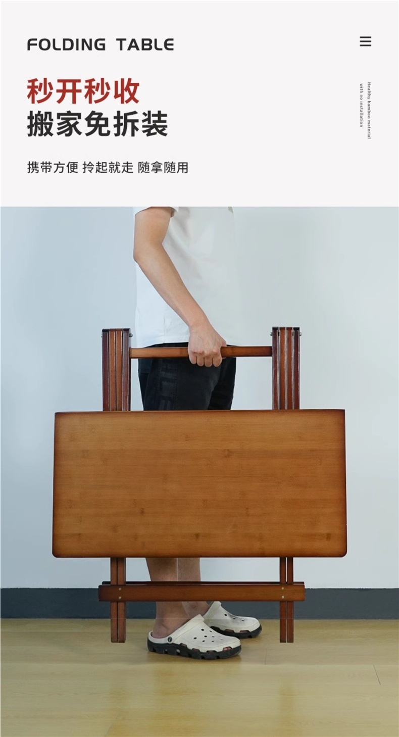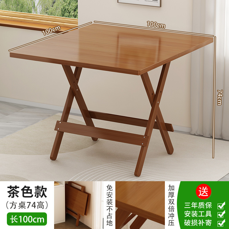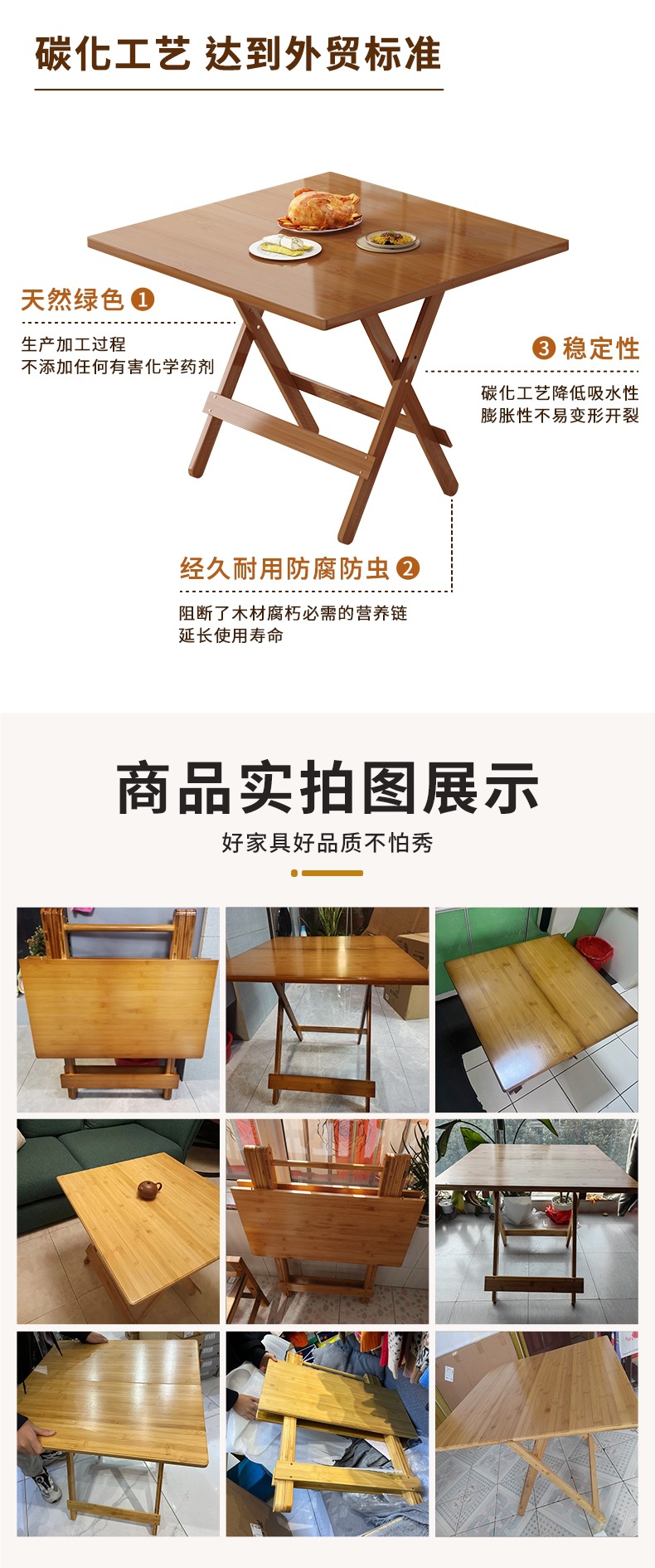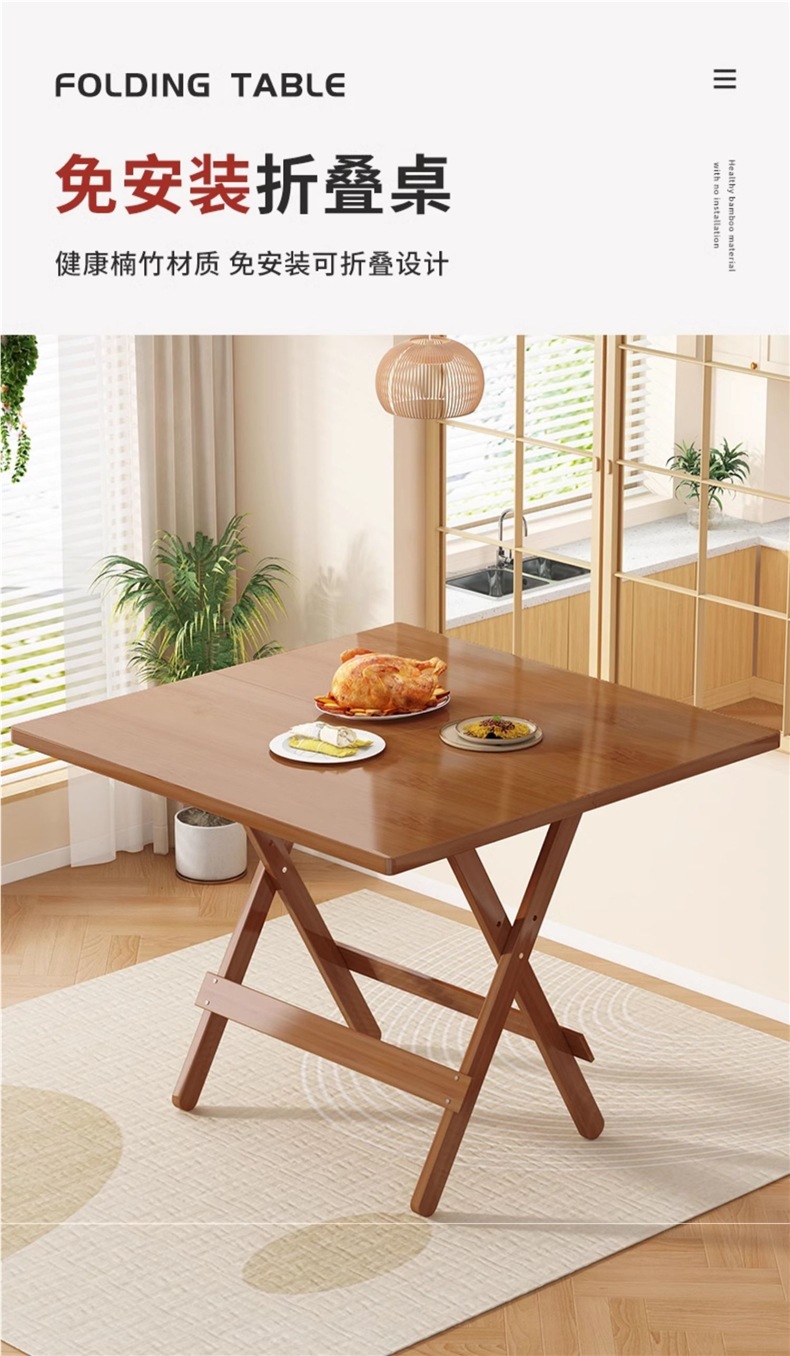 접이식 테이블 스퀘어 다이닝 테이블 작은 아파트 다이닝 테이블 스퀘어 마작 가정용 휴대용 야외 대나무 및 목재 보관스토어 가기