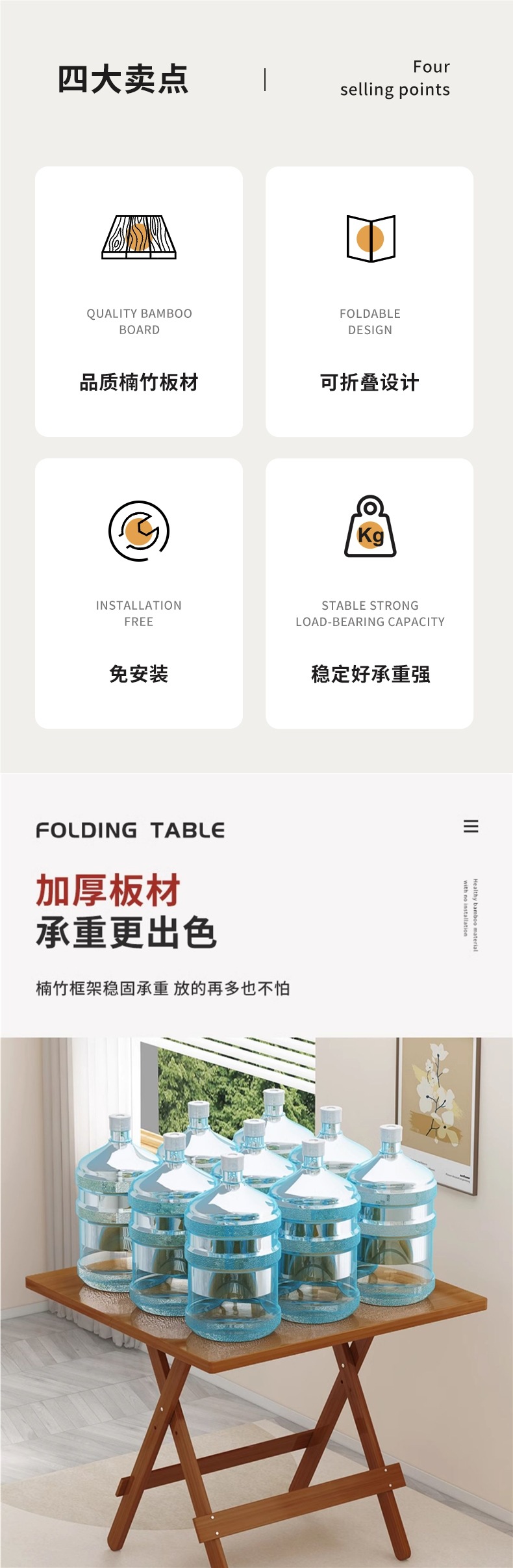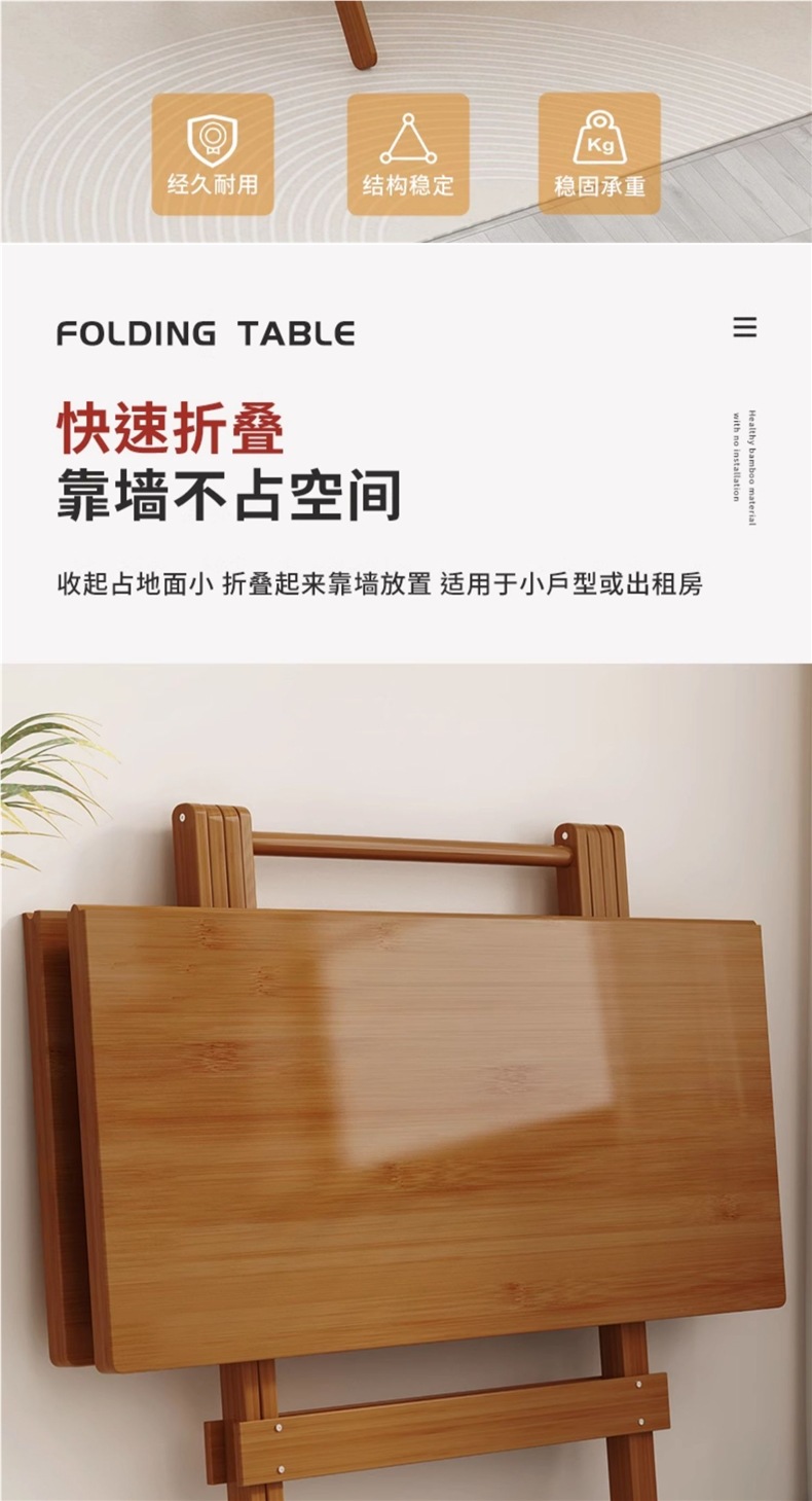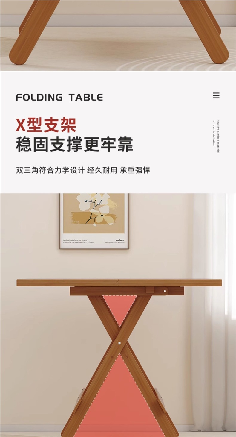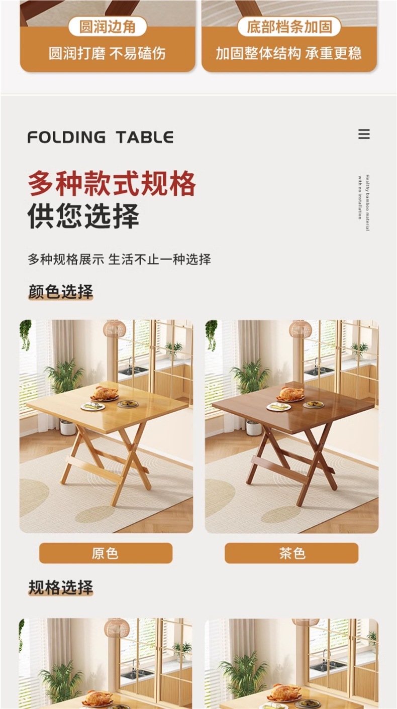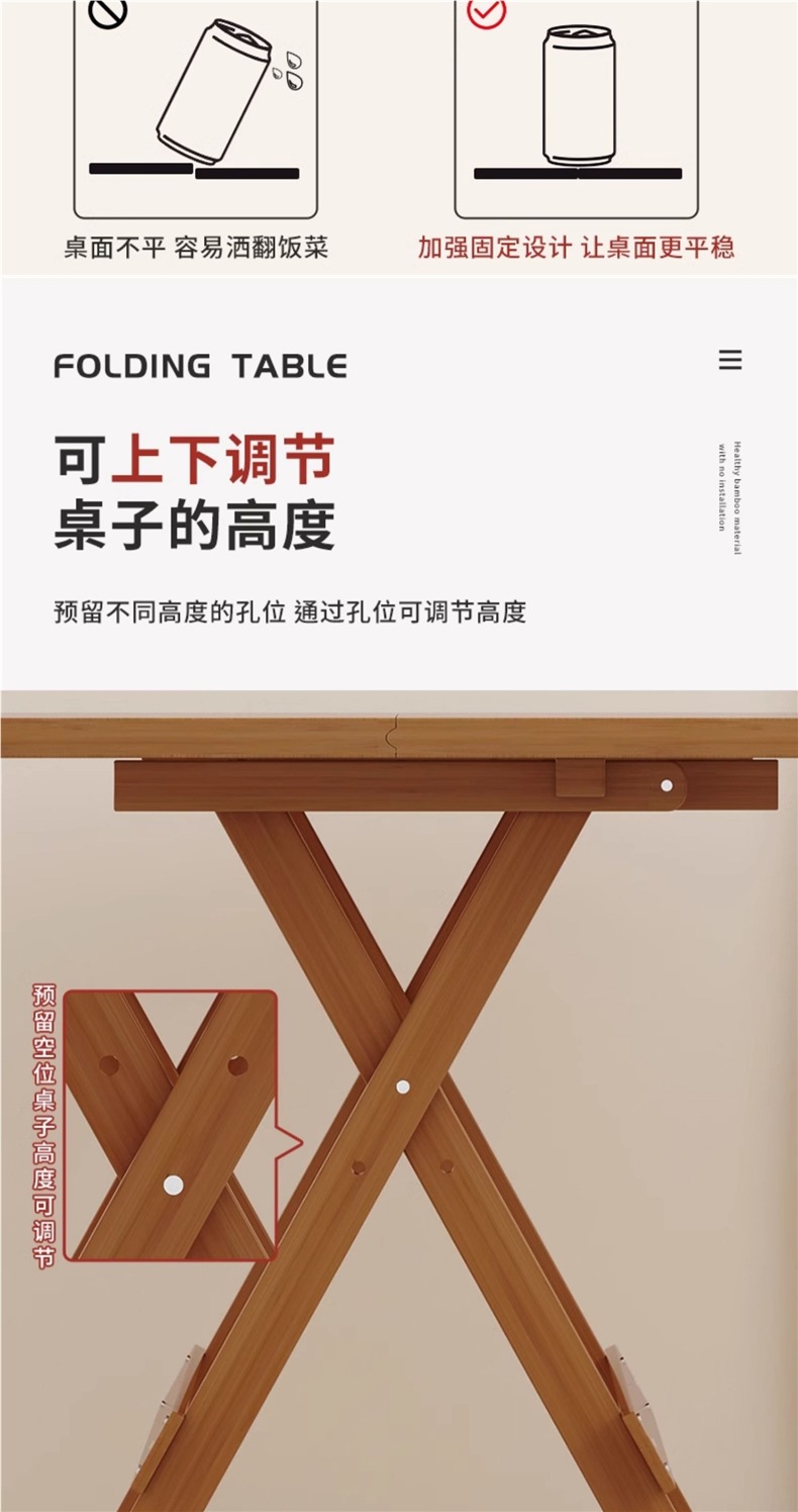 접이식 테이블 스퀘어 다이닝 테이블 작은 아파트 다이닝 테이블 스퀘어 마작 가정용 휴대용 야외 대나무 및 목재 보관스토어 가기