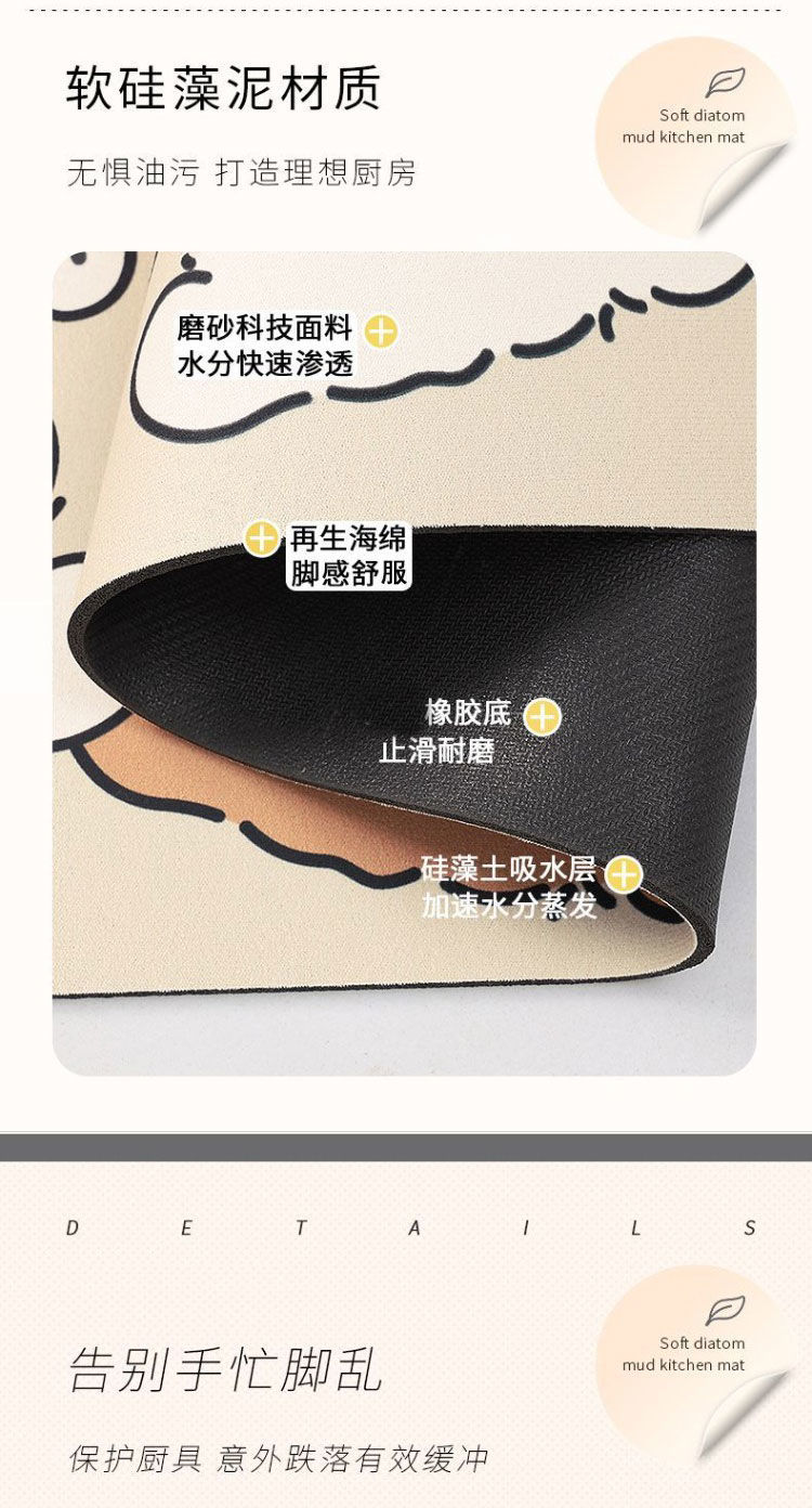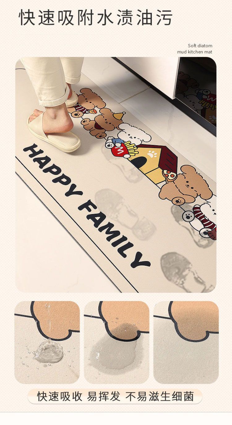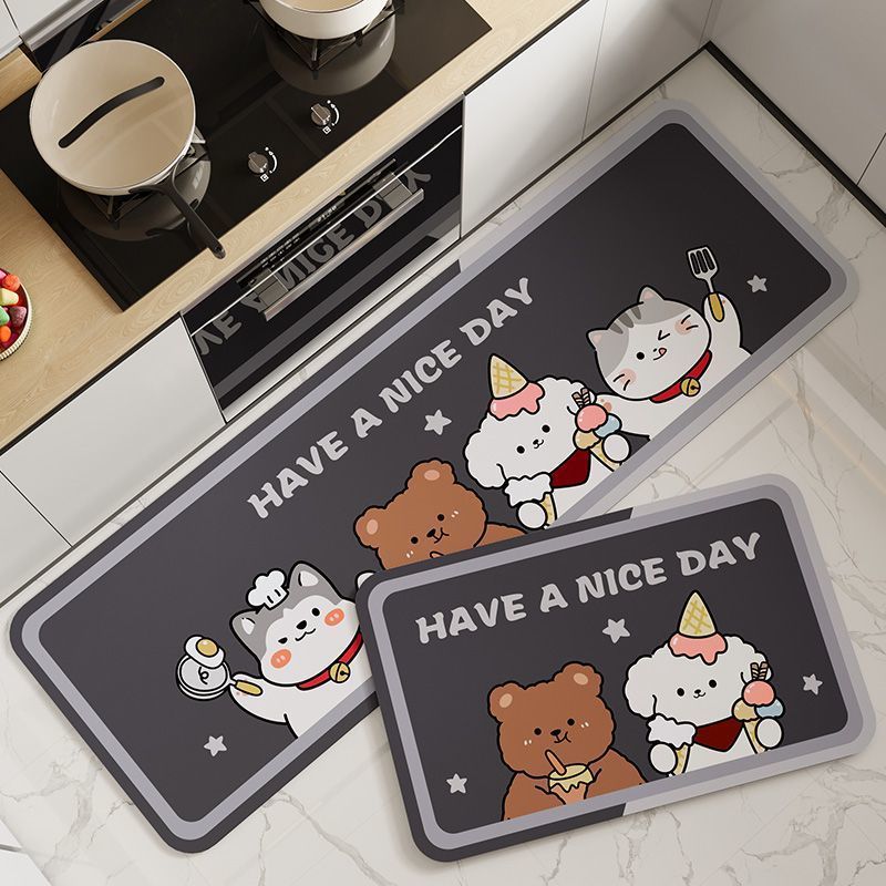 Diatom 진흙 주방 매트 만화 흡수성 스토브 매트 긴 카펫 문 먼지 방지 도어 매트 머리카락 세대스토어 가기