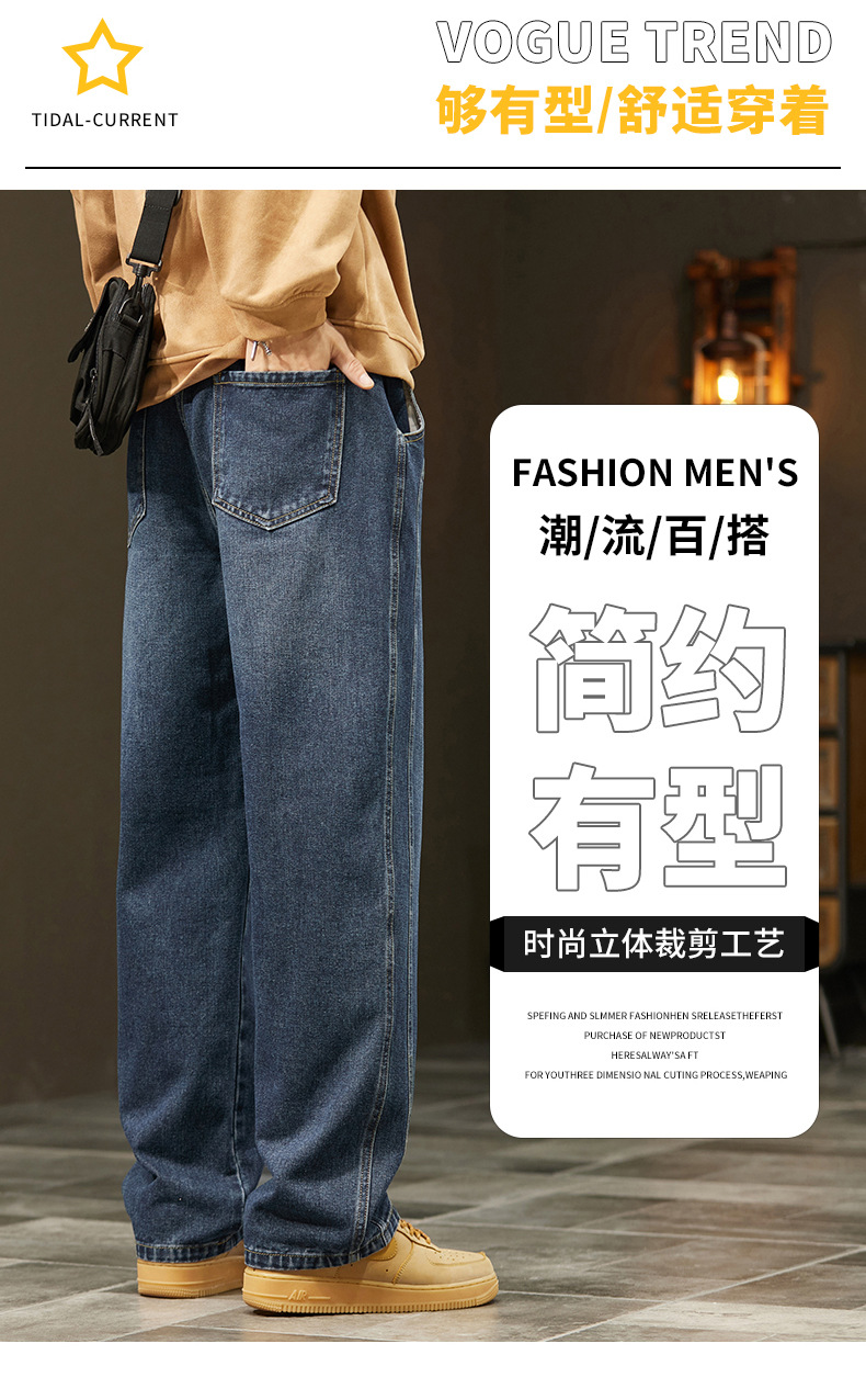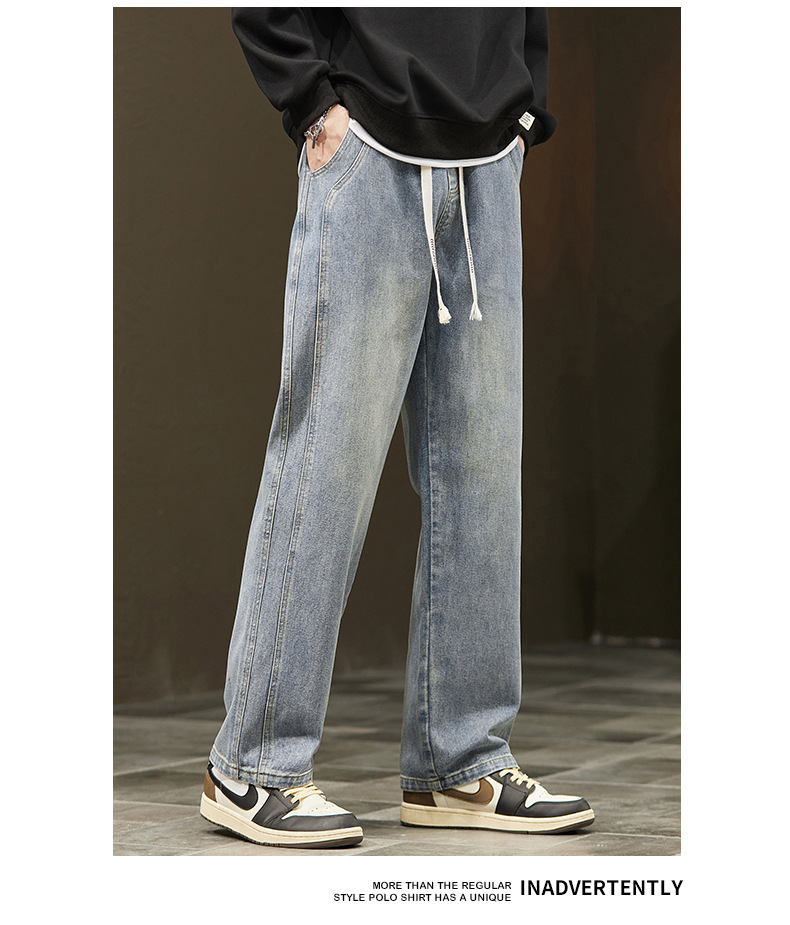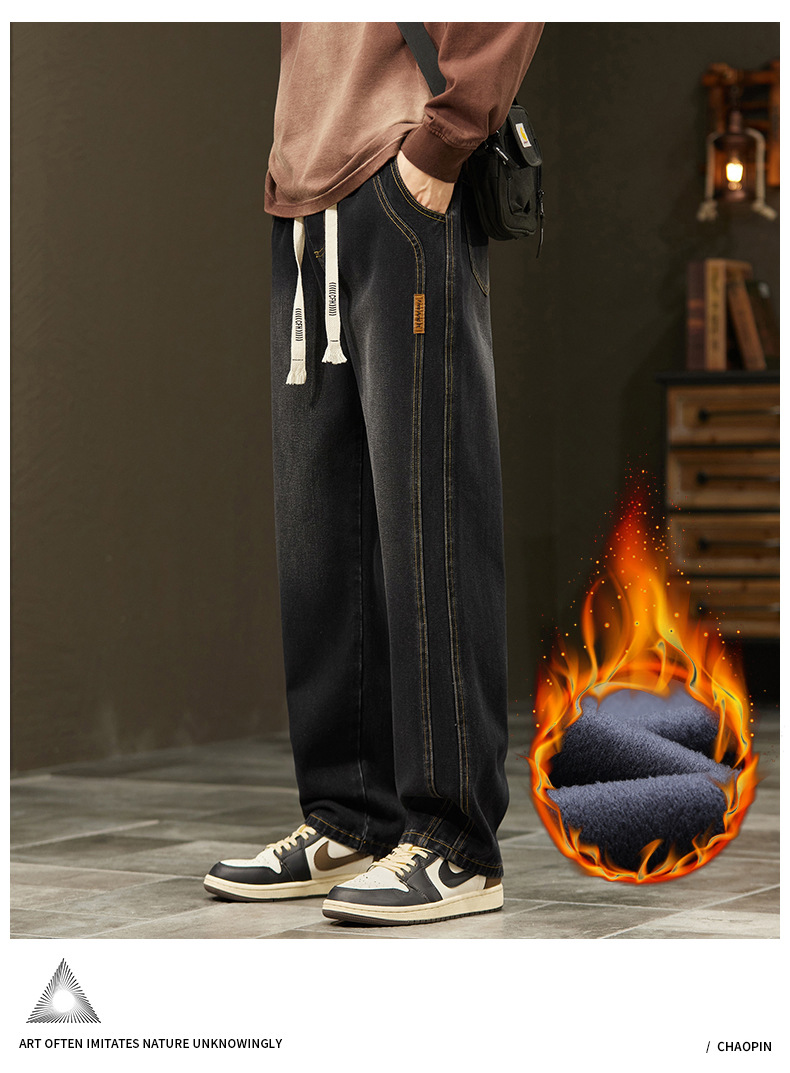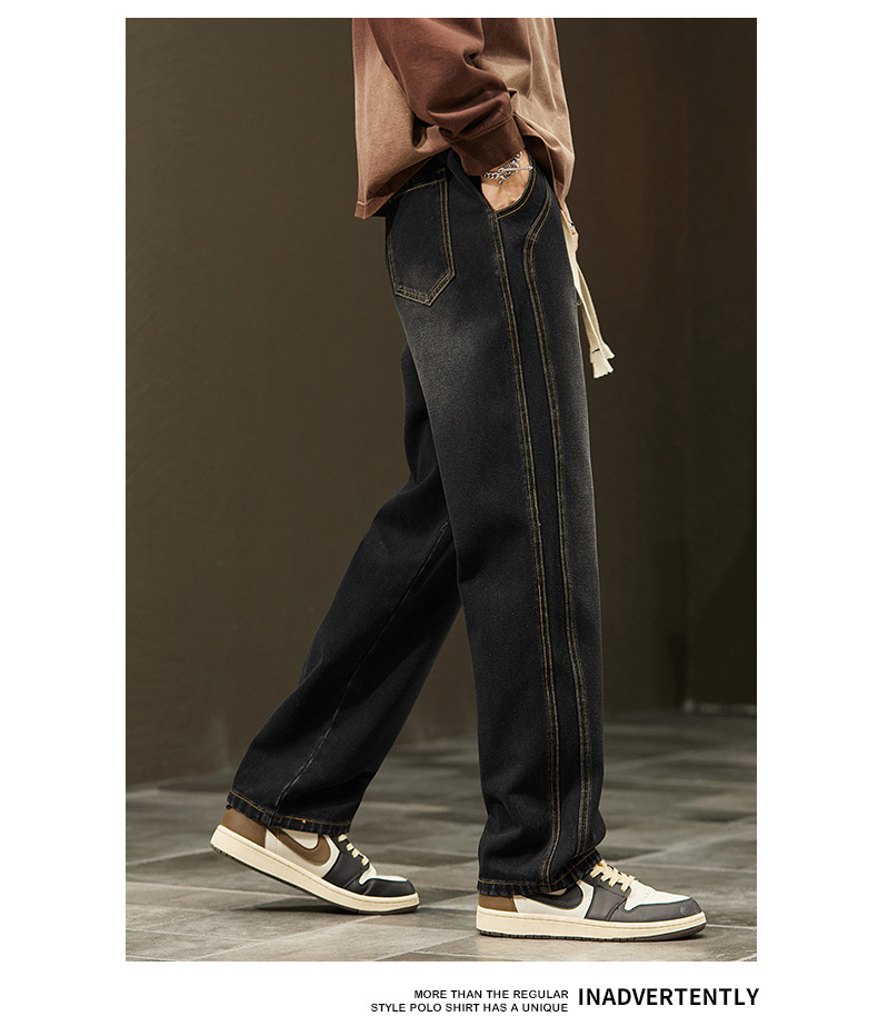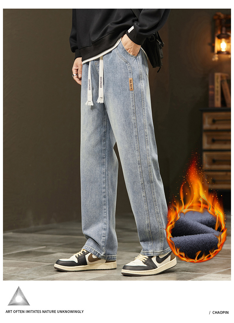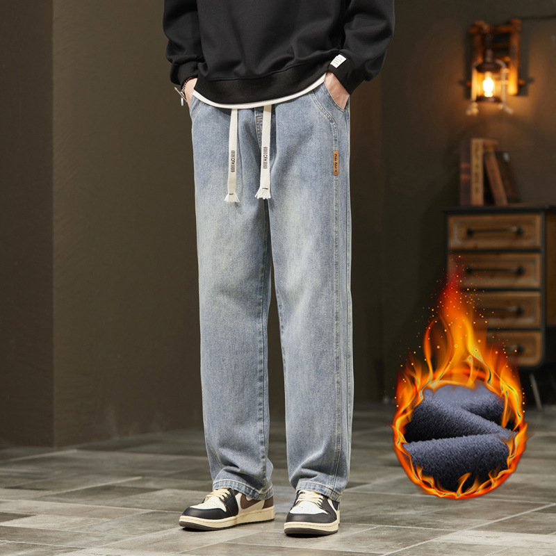 미국 청바지 남자 2024 가을 새로운 스트레이트 느슨한 넓은 다리 남자 바지 유행 소년 긴 바지 양털 랩 바지스토어 가기