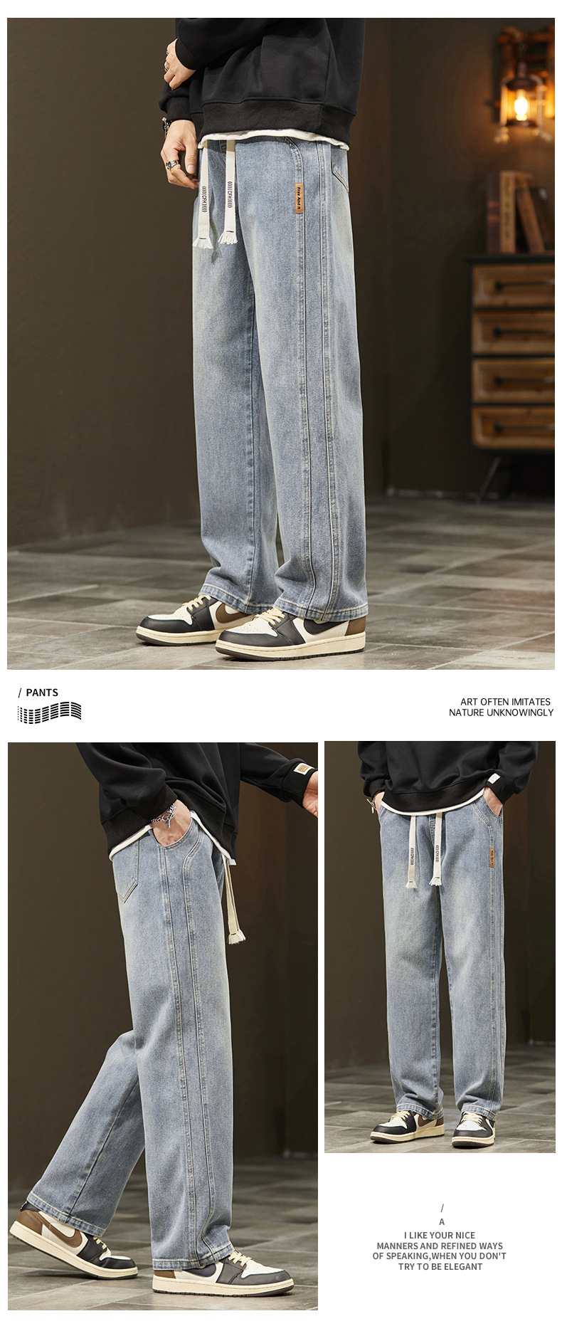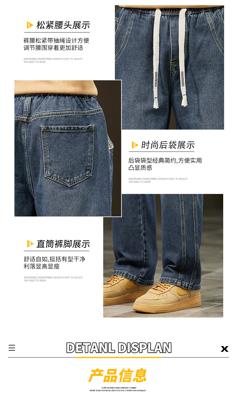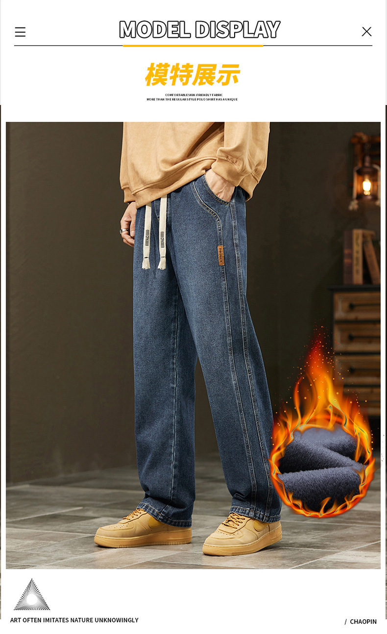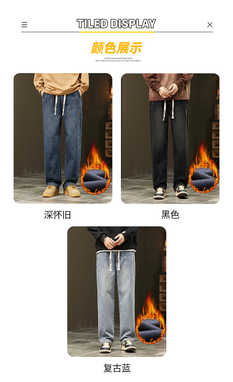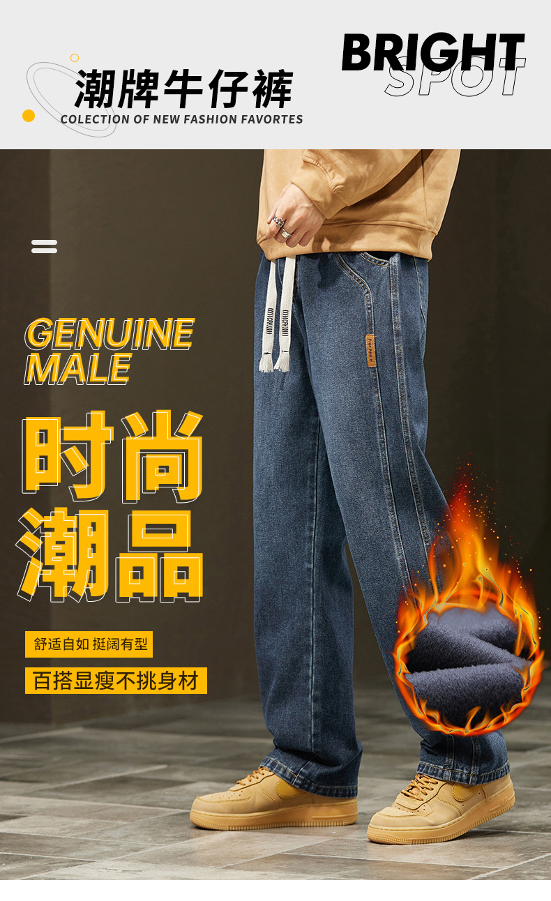 미국 청바지 남자 2024 가을 새로운 스트레이트 느슨한 넓은 다리 남자 바지 유행 소년 긴 바지 양털 랩 바지스토어 가기