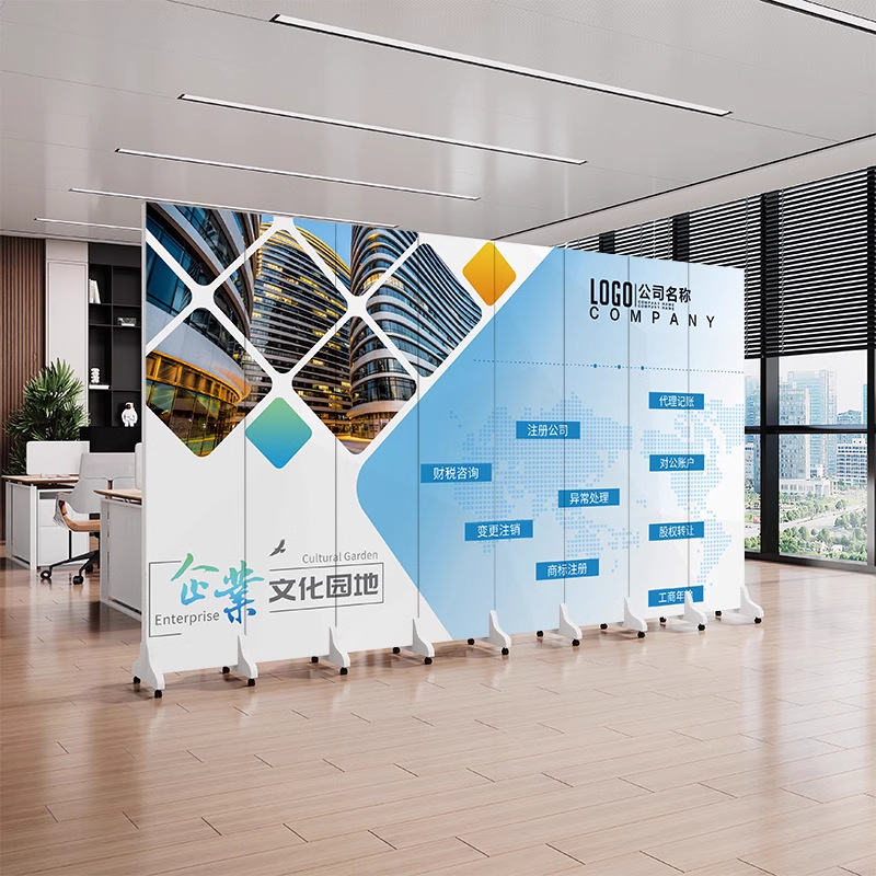 회사 화면 파티션 거실 로고 사용자 정의 배경 벽 현대 사무실 회의실 쉼터 이동식 도르래스토어 가기