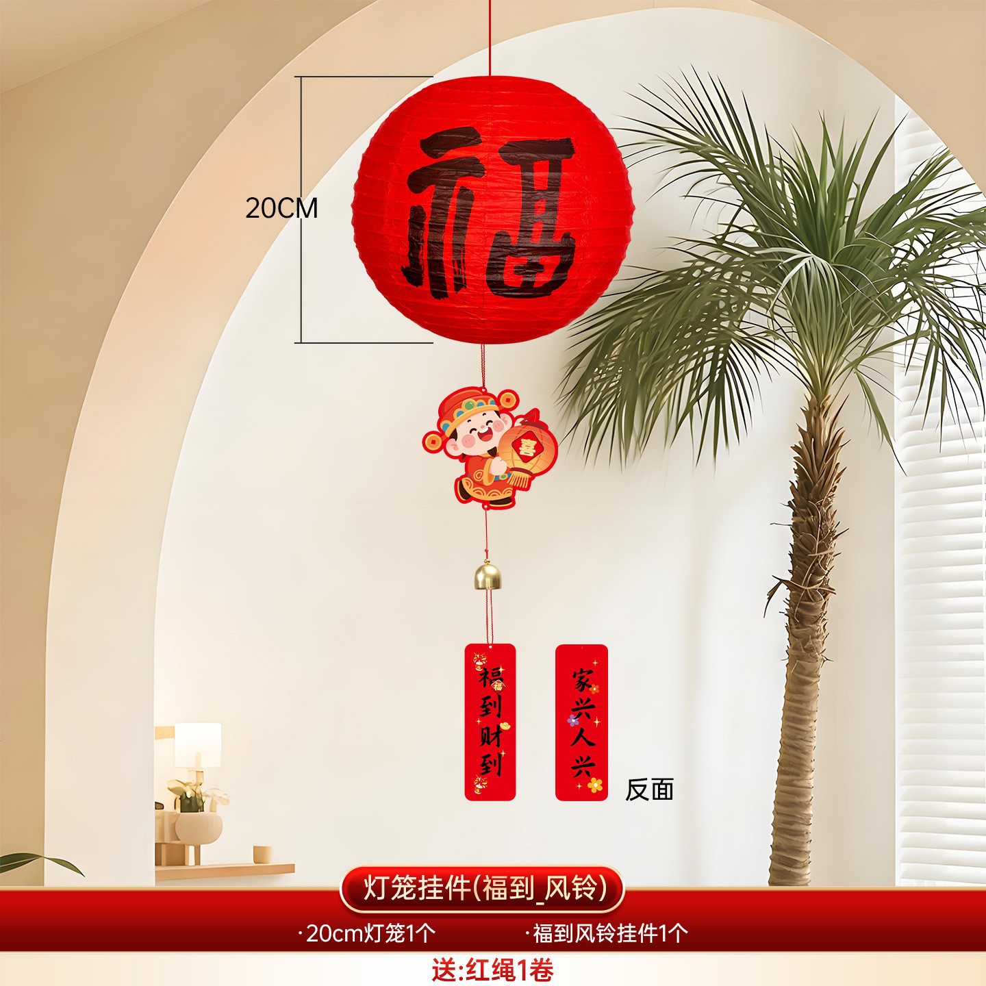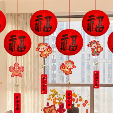 • 축복의 말이 담긴 새해 등불과 풍경 장식-[축복과 부가 온다]