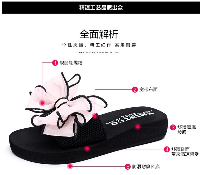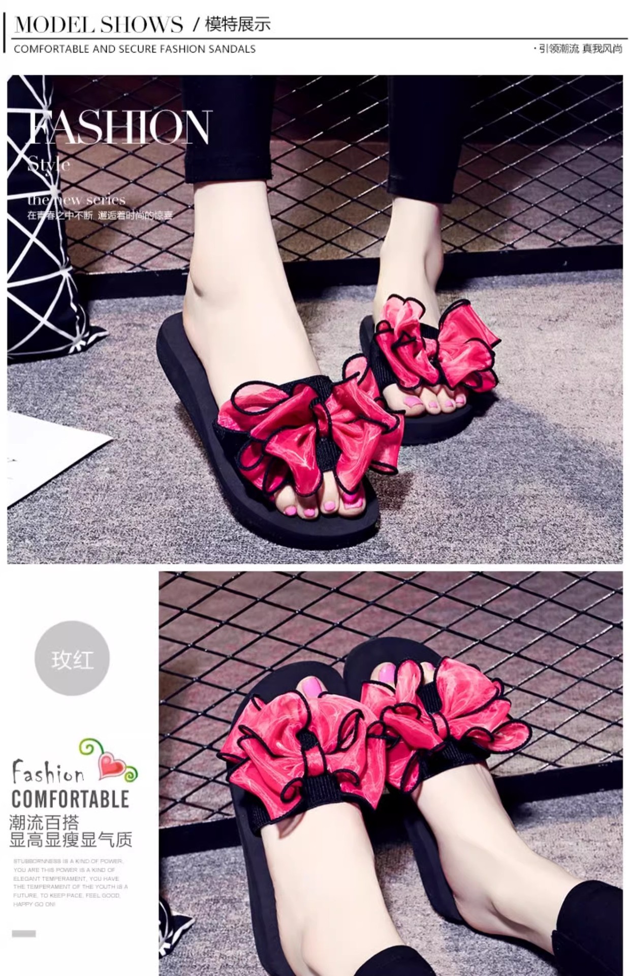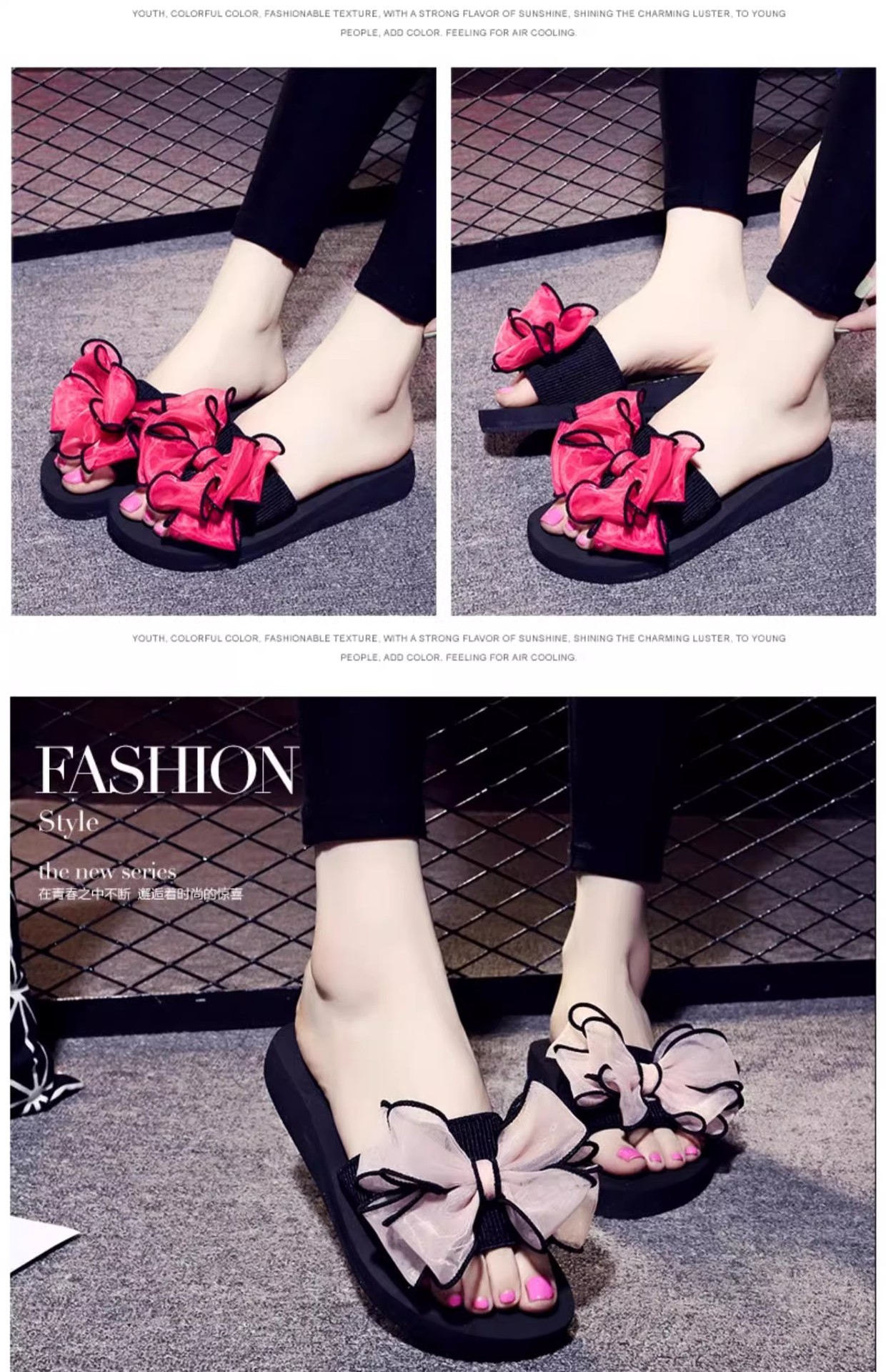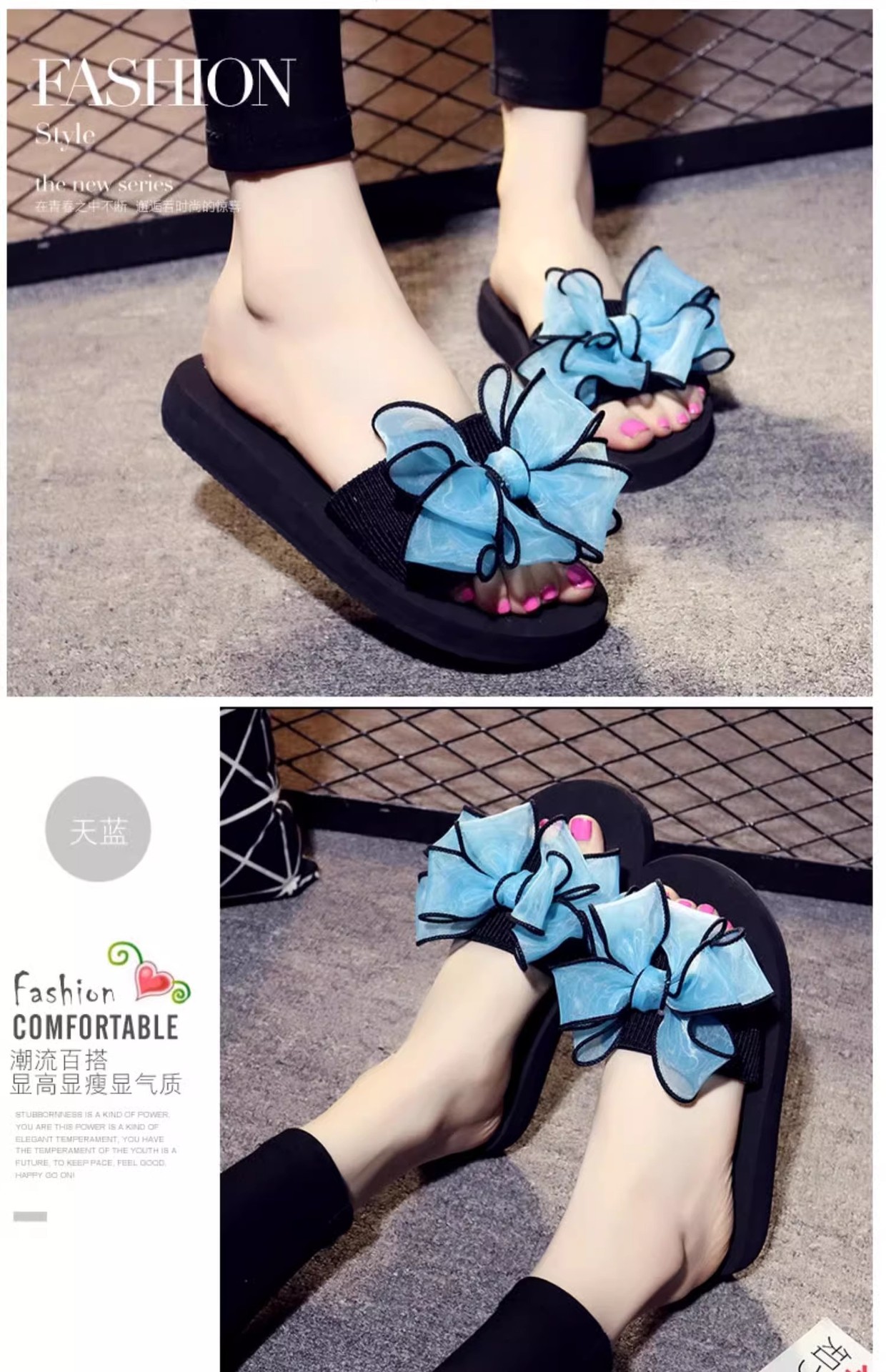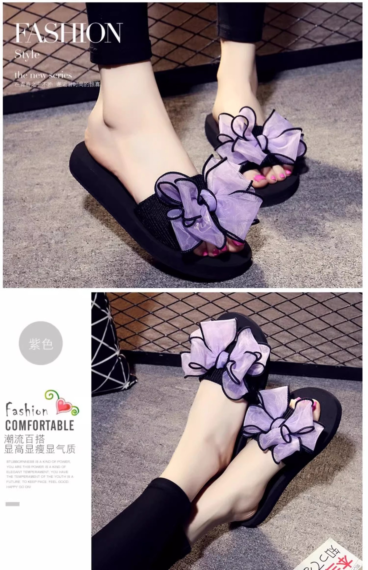 여름 여성 슬리퍼 나비 꽃 여성 비치 신발 여성 플랫폼 샌들 여성용 쐐기 미끄럼 방지 슬리퍼