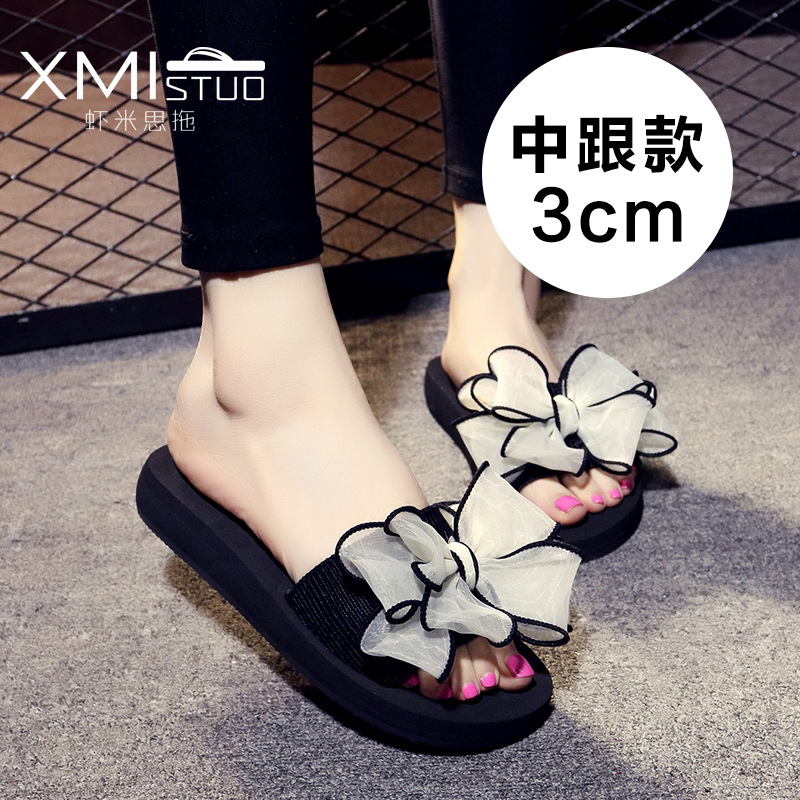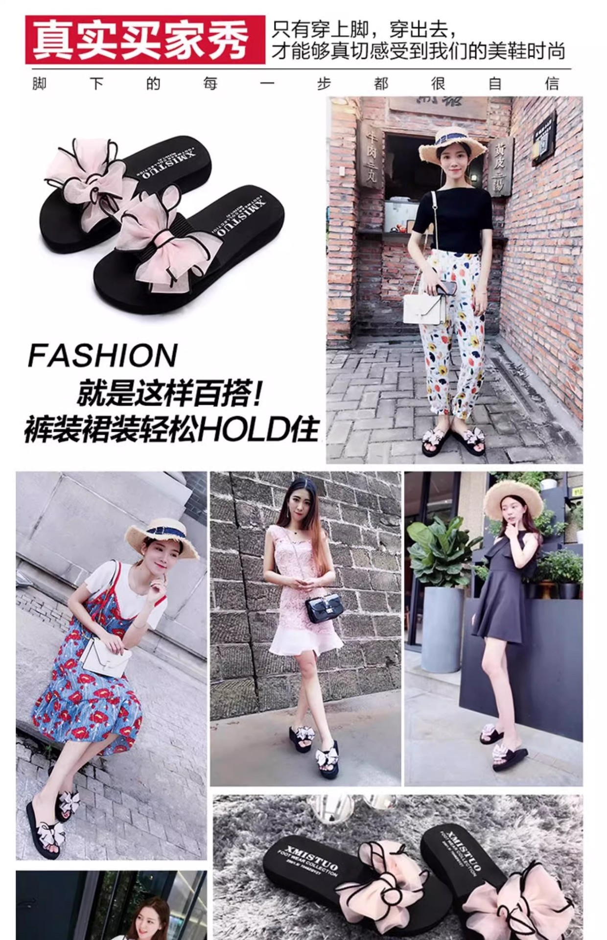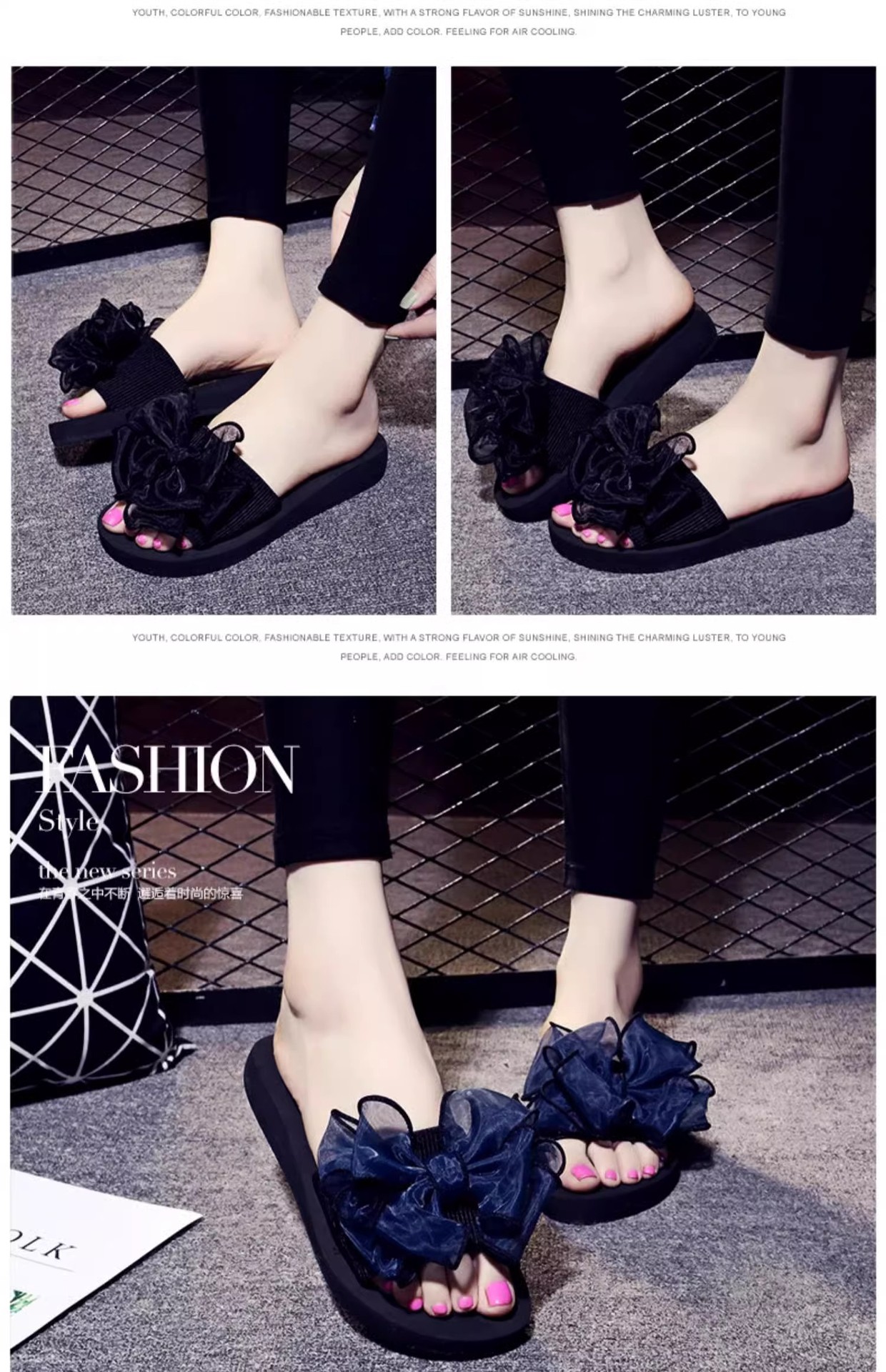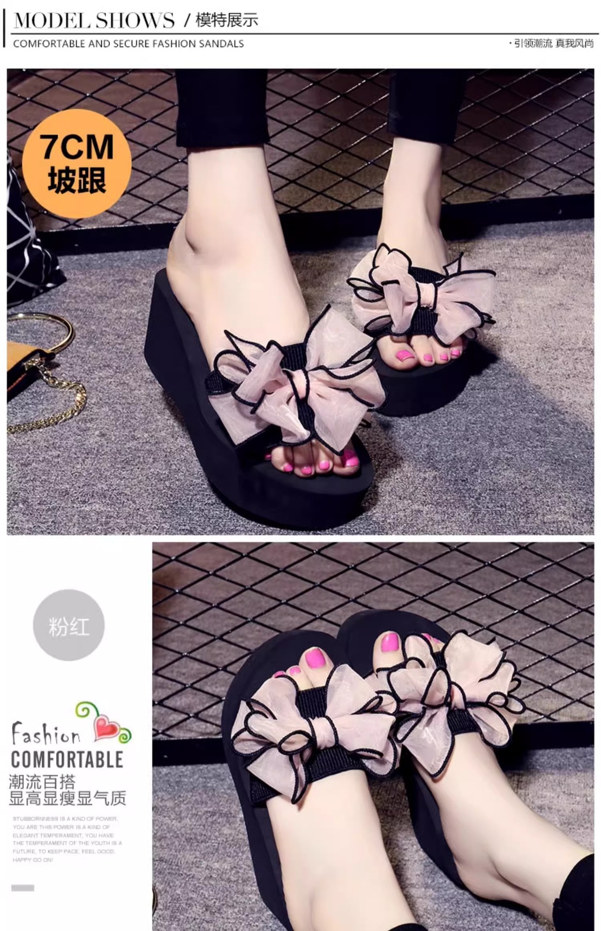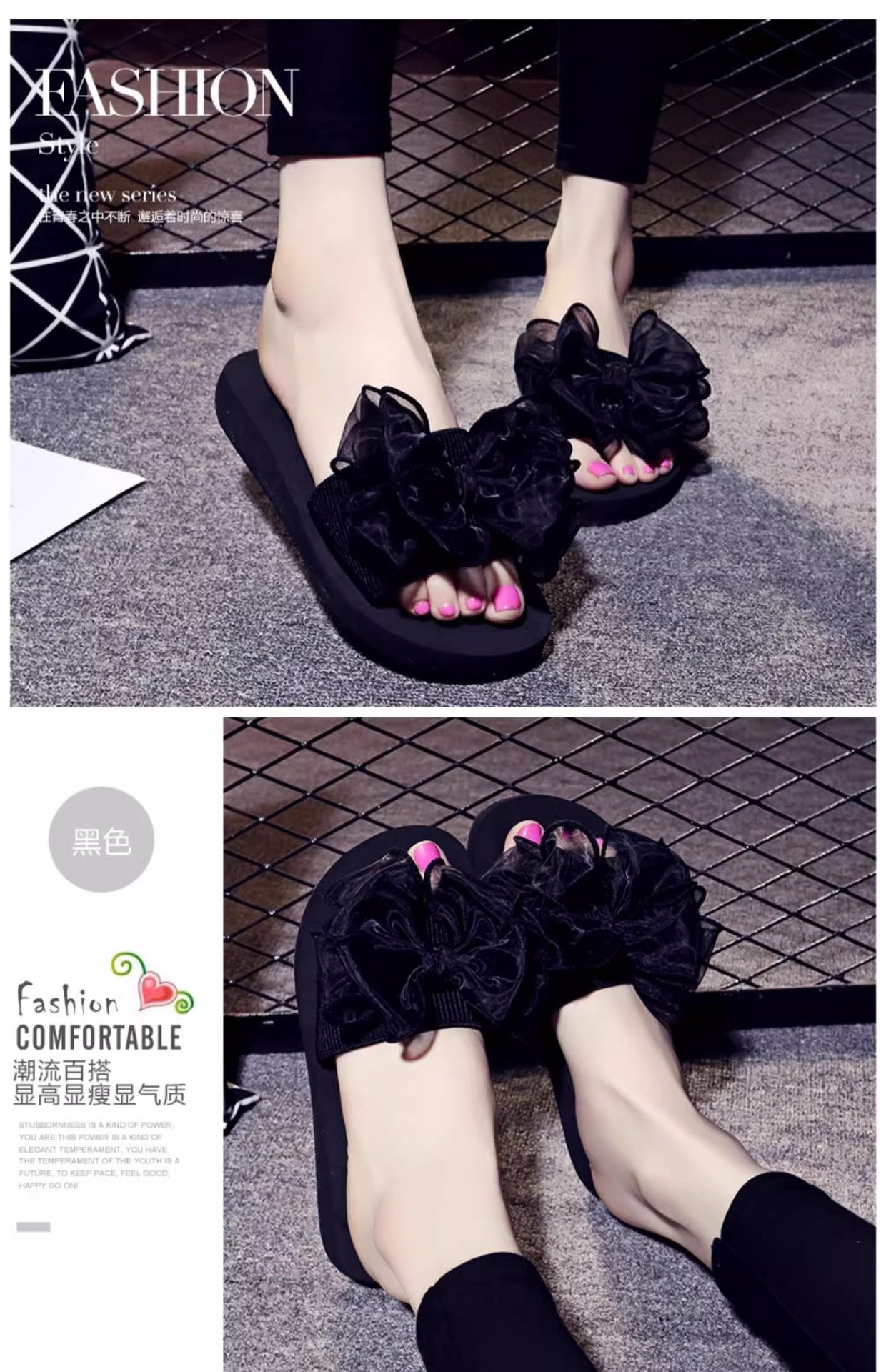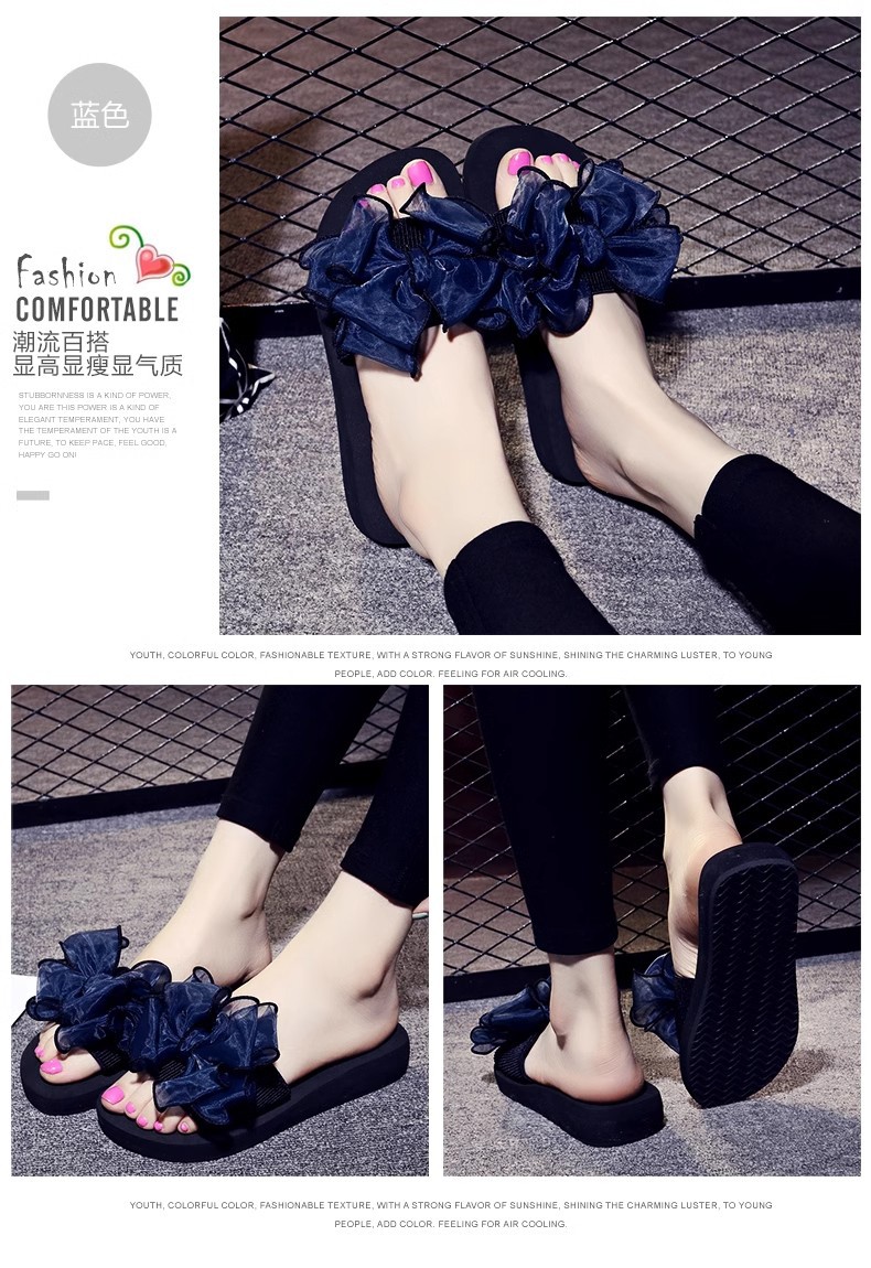 여름 여성 슬리퍼 나비 꽃 여성 비치 신발 여성 플랫폼 샌들 여성용 쐐기 미끄럼 방지 슬리퍼