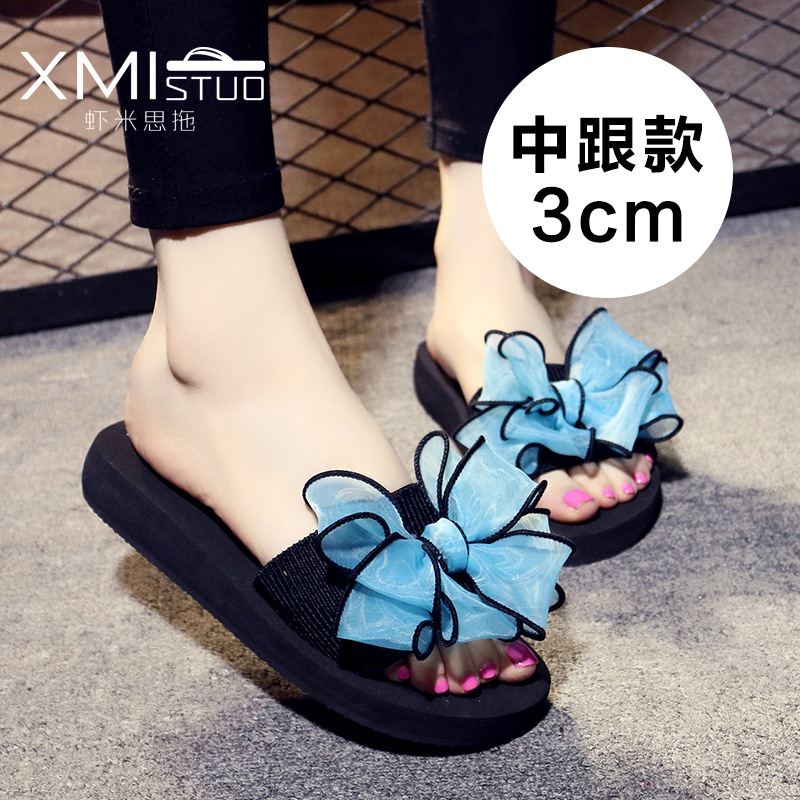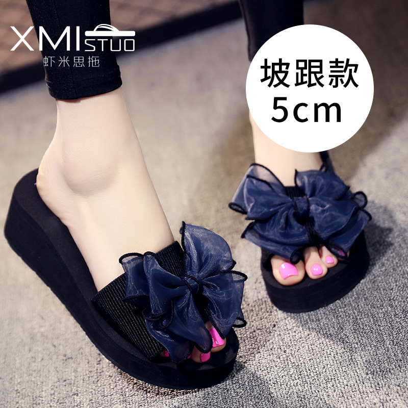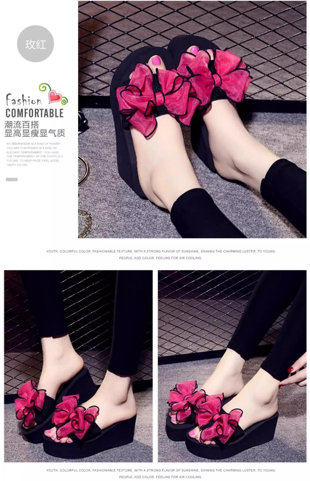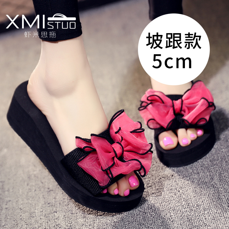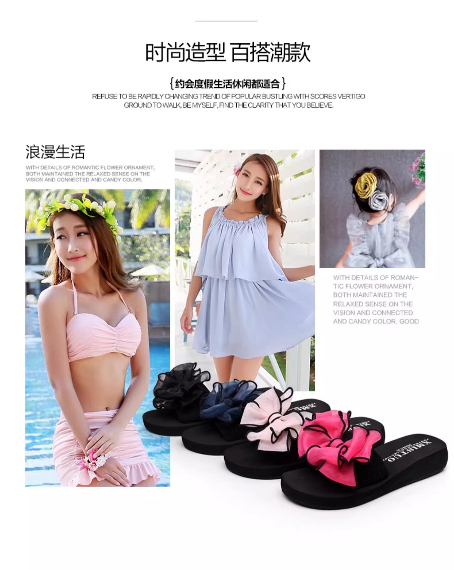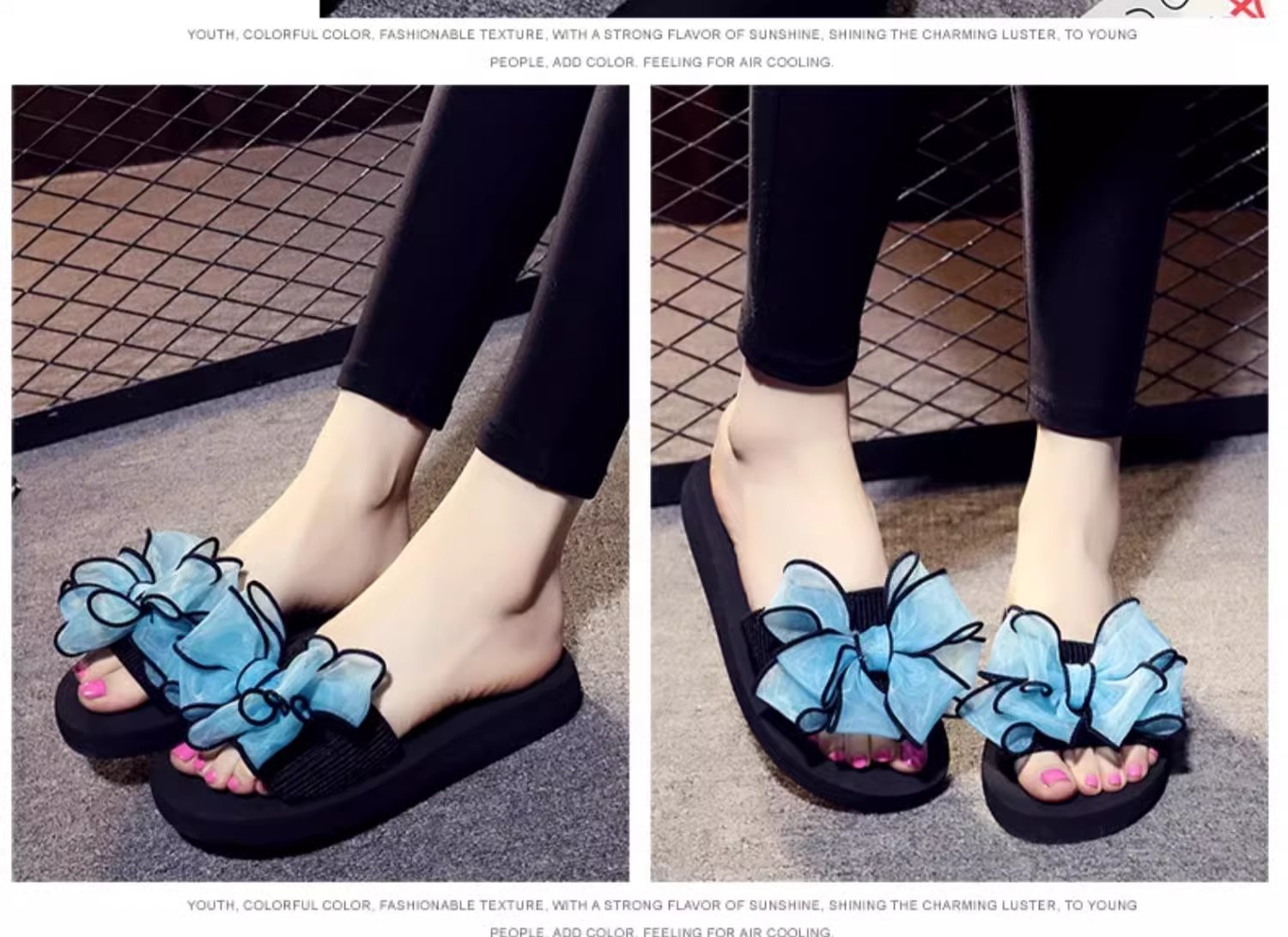 여름 여성 슬리퍼 나비 꽃 여성 비치 신발 여성 플랫폼 샌들 여성용 쐐기 미끄럼 방지 슬리퍼