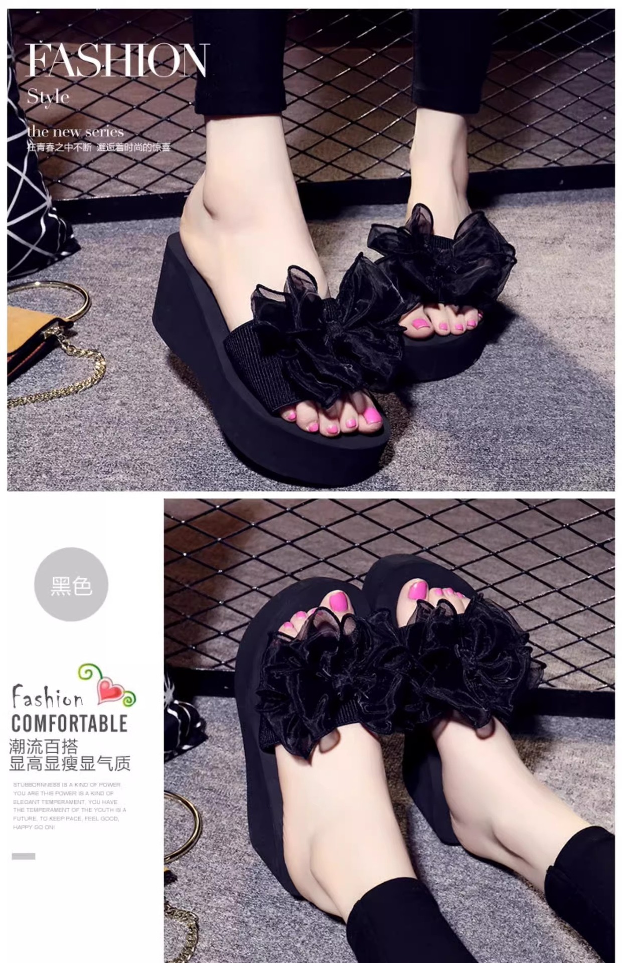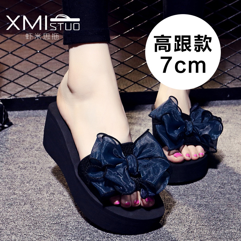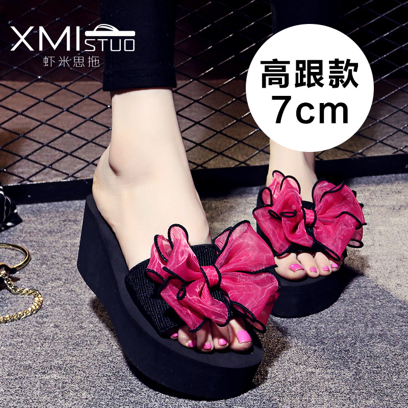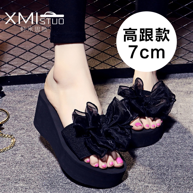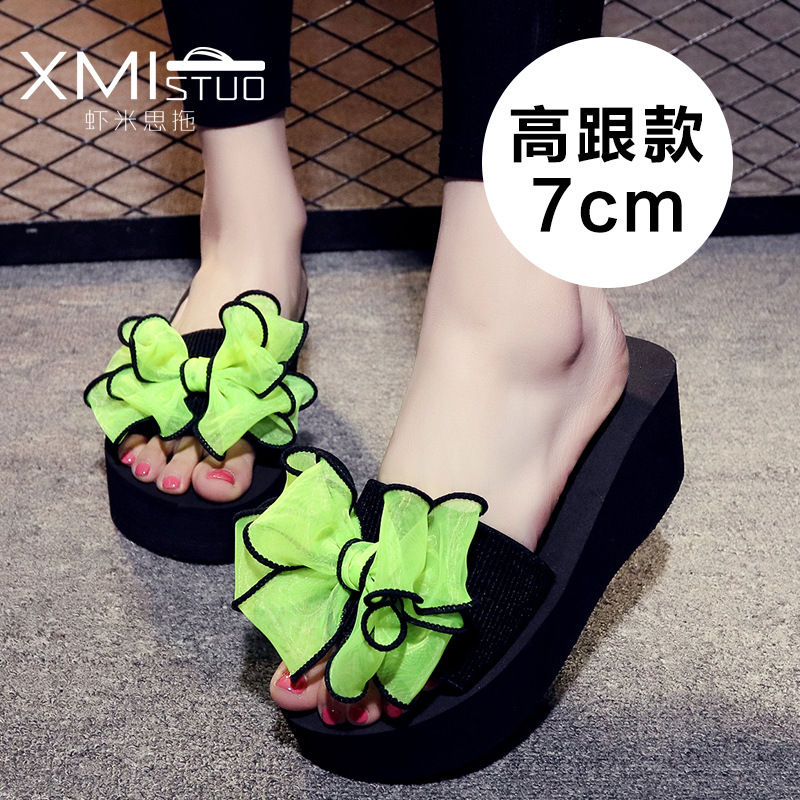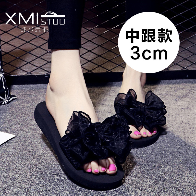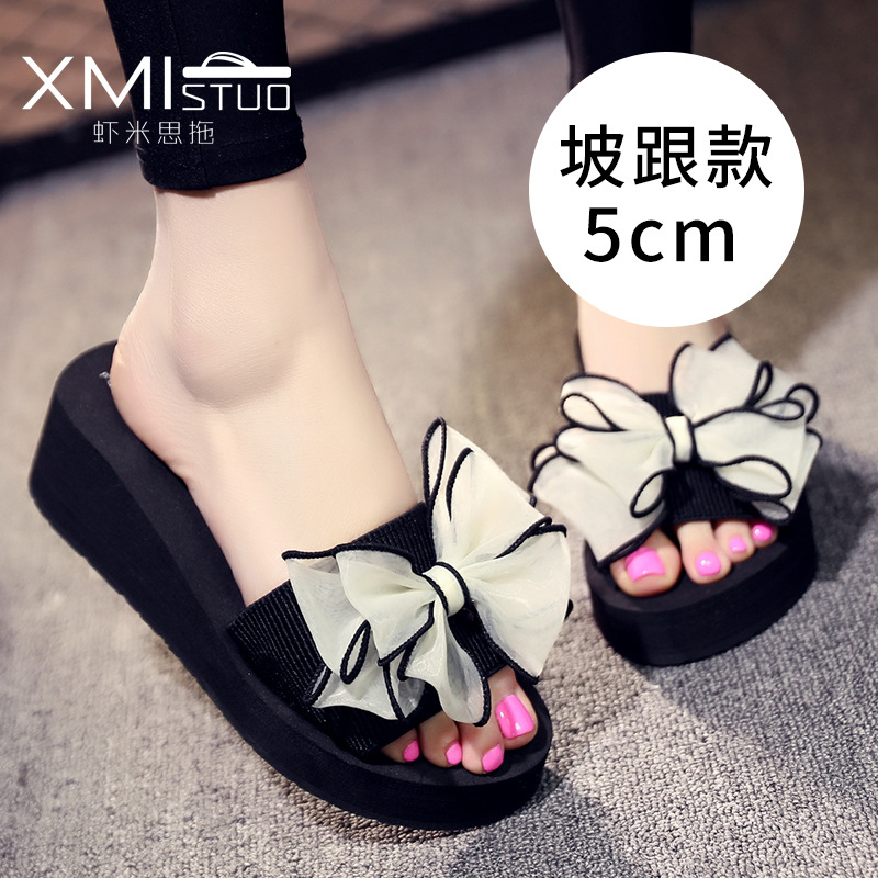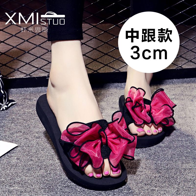 여름 여성 슬리퍼 나비 꽃 여성 비치 신발 여성 플랫폼 샌들 여성용 쐐기 미끄럼 방지 슬리퍼