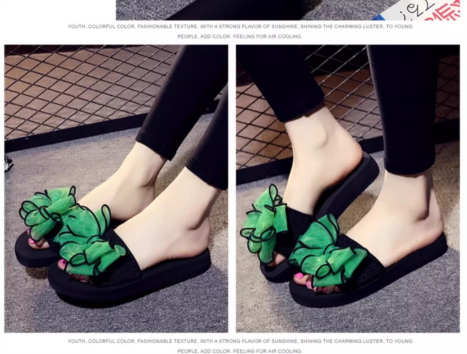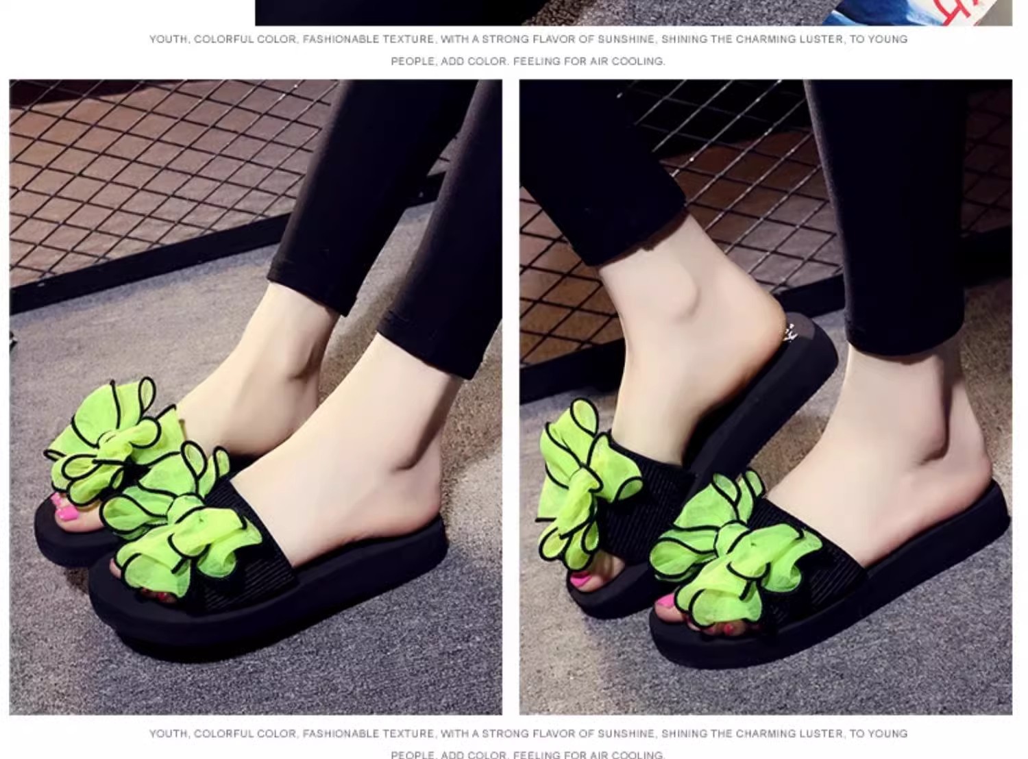 • 7109-5 웨지 블랙 바닥 형광 녹색 나비